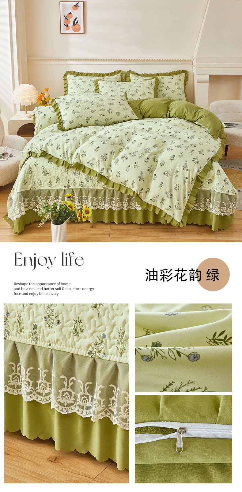 商品名称:美之润家纺 2025新款床盖被套四件套 油彩花韵 绿