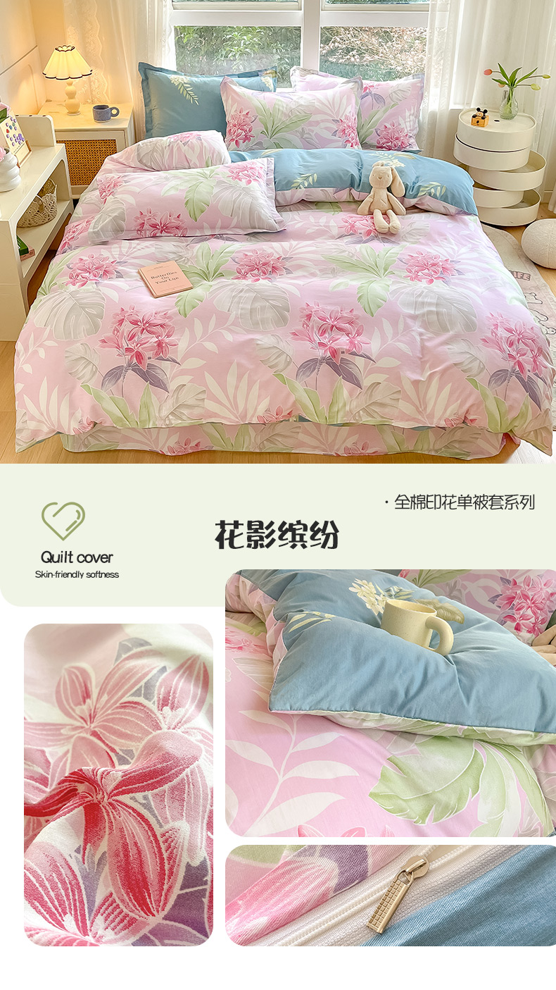 商品名称:绵庭家纺 2024新款AB版12868全棉印花单被套 花影缤纷