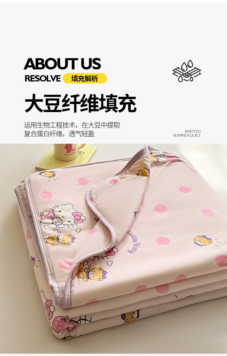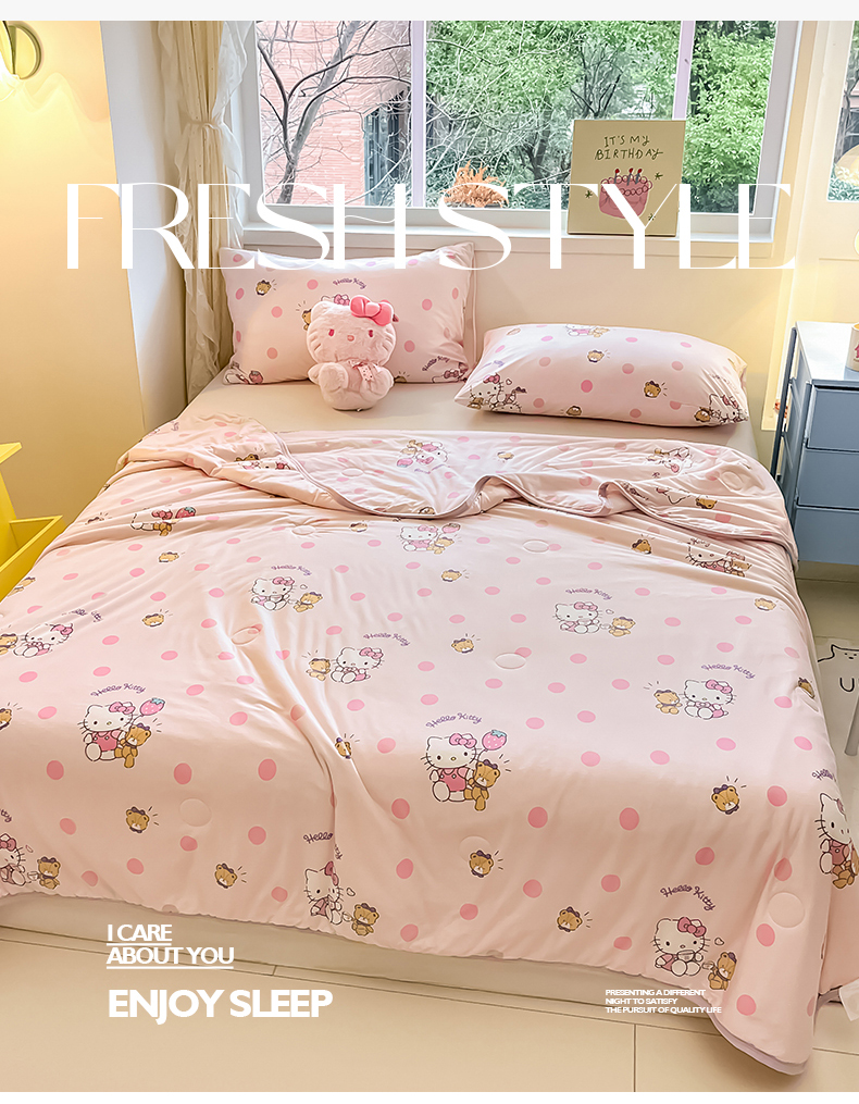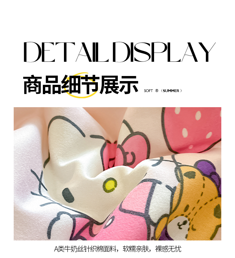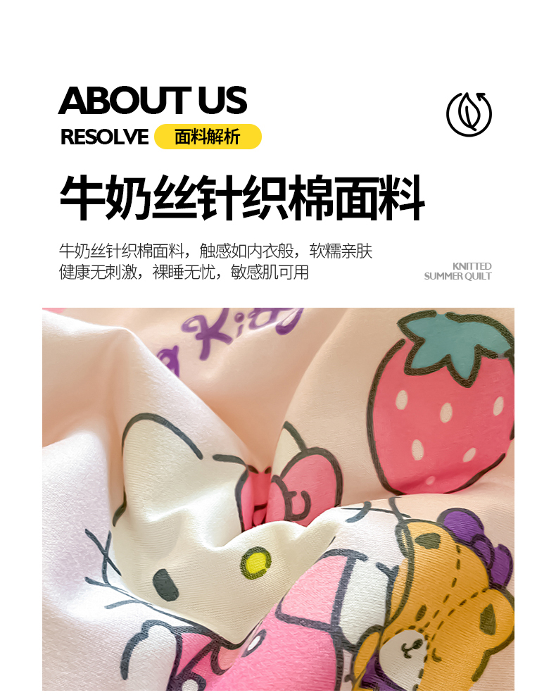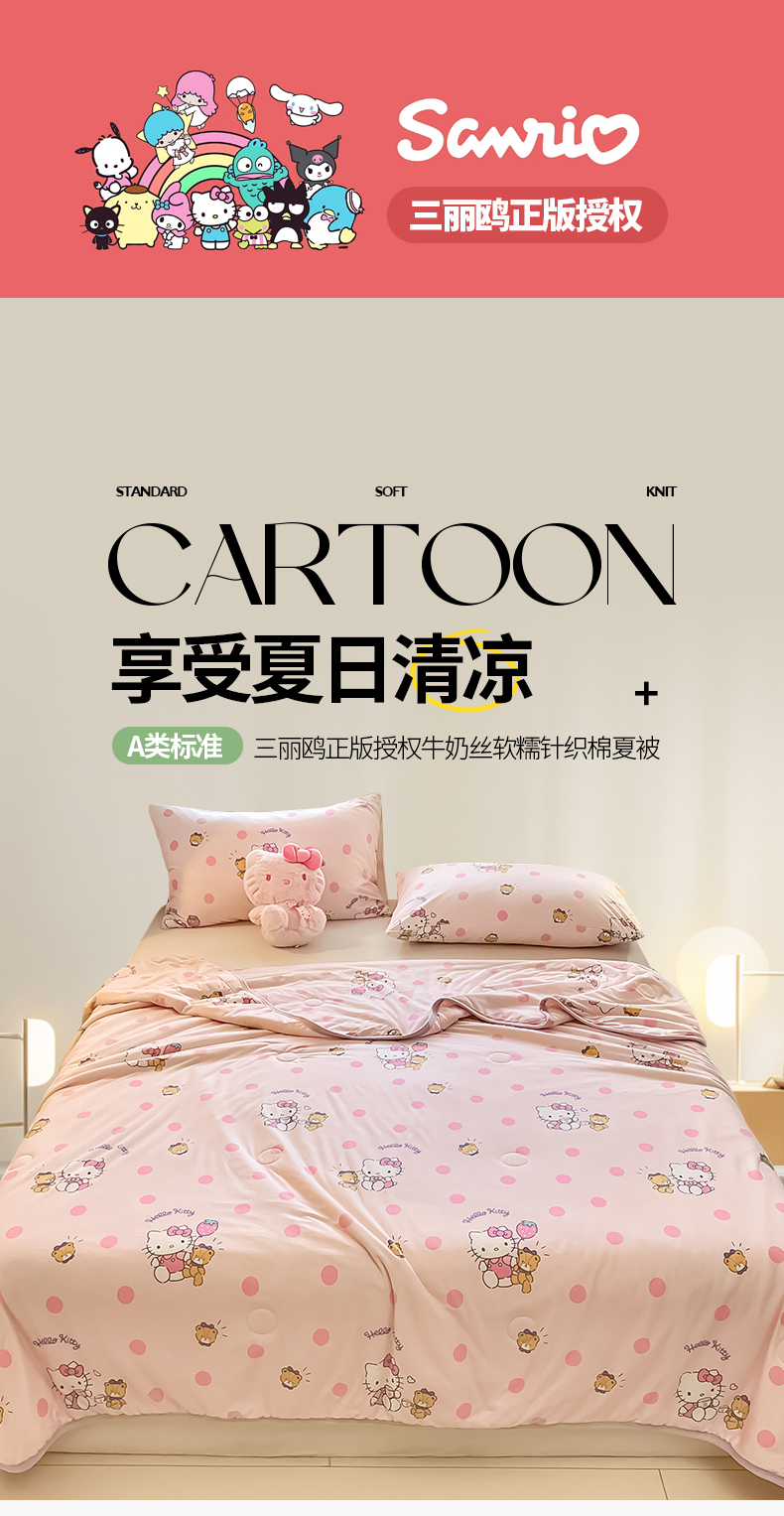 • 91家纺网 家纺一手货源 找家纺 金爱家 2024新款A类三丽鸥正版授权高品质牛奶丝软糯针织棉夏被系列 针织棉三丽鸥-草莓Kitty