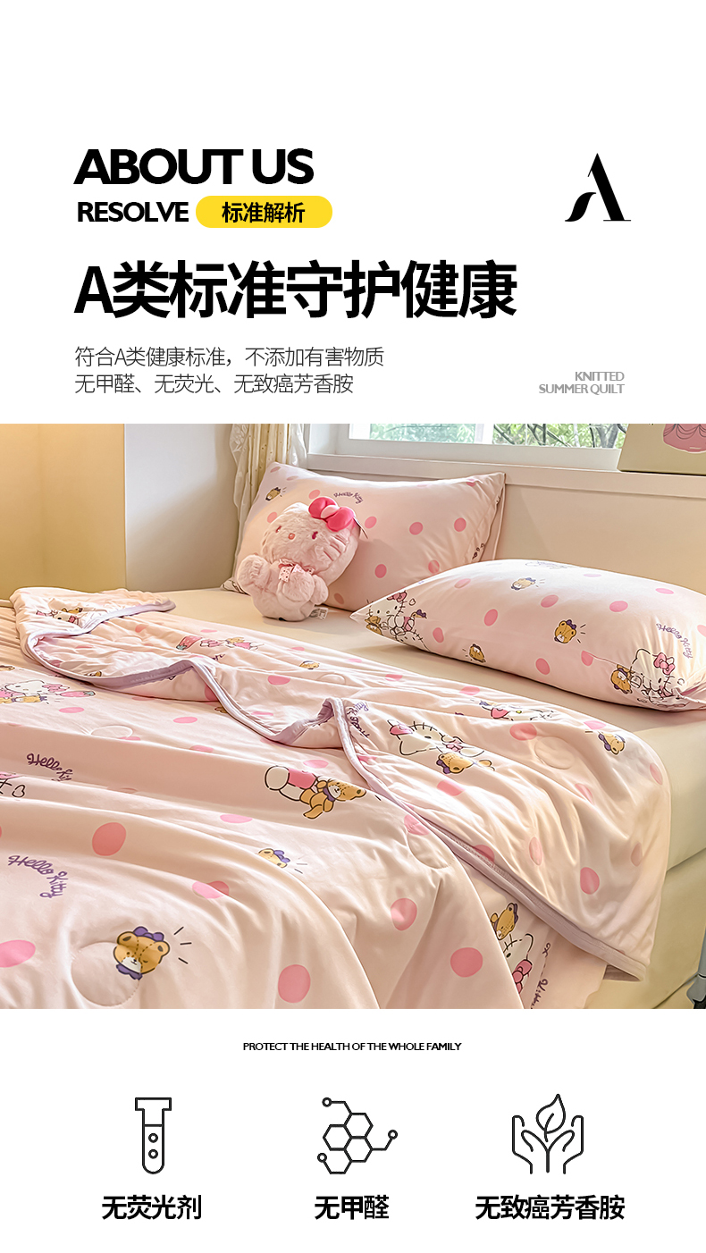 金爱家 2024新款A类三丽鸥正版授权高品质牛奶丝软糯针织棉夏被系列 针织棉三丽鸥-草莓Kitty