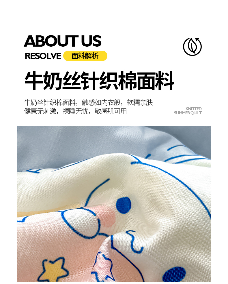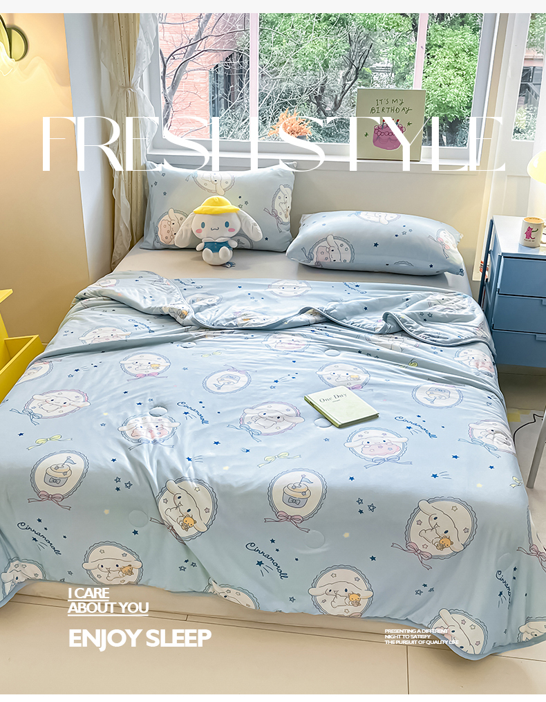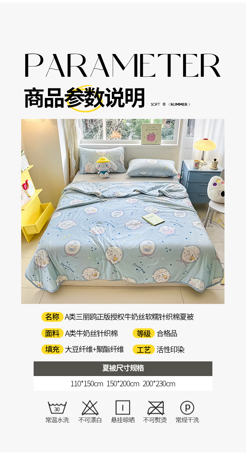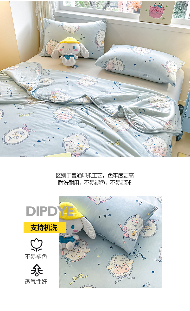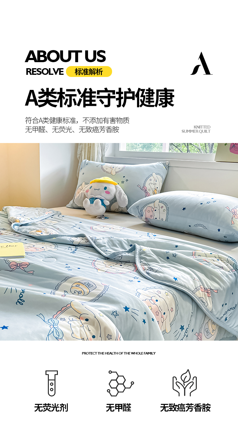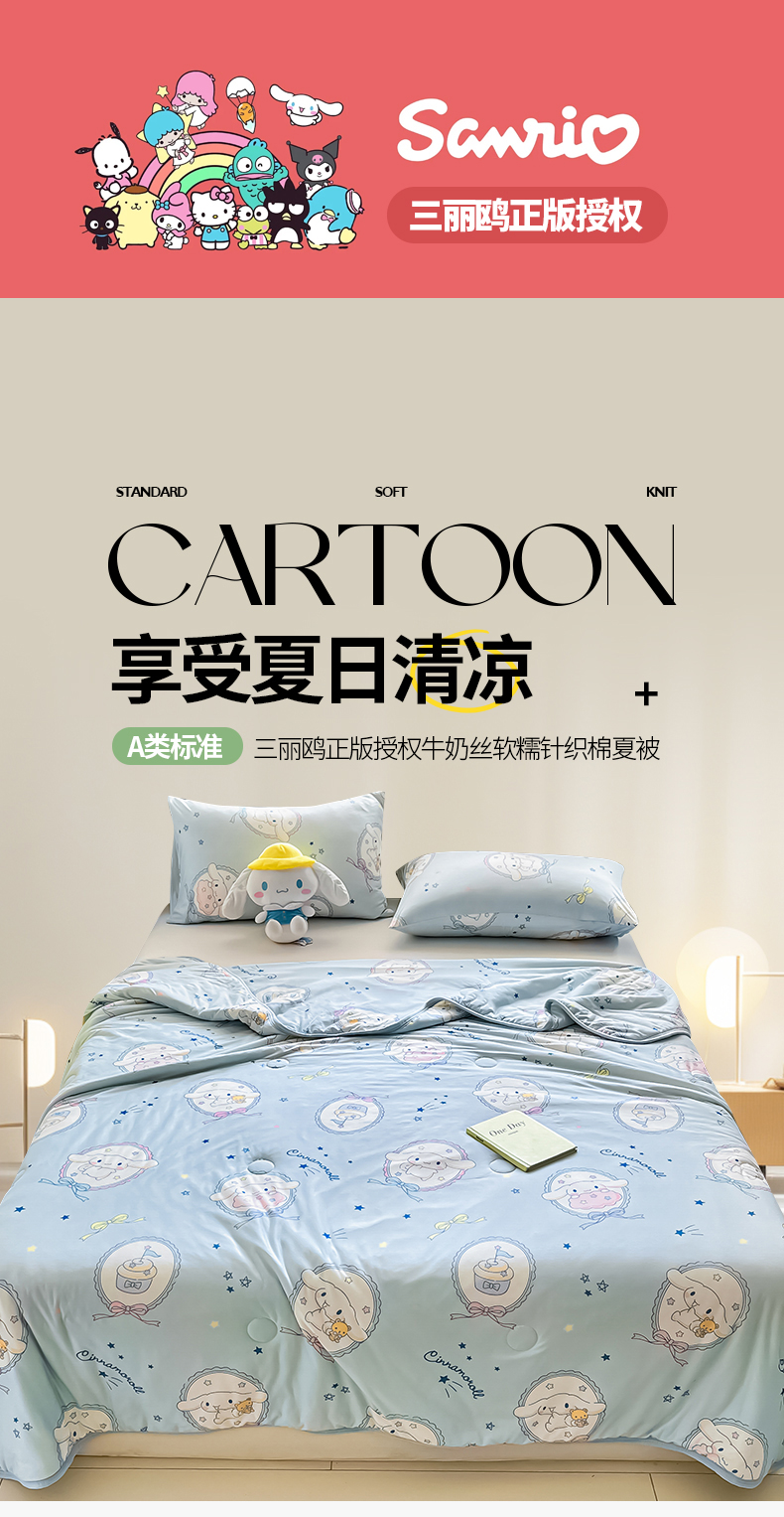 • 91家纺网 家纺一手货源 找家纺 金爱家 2024新款A类三丽鸥正版授权高品质牛奶丝软糯针织棉夏被系列 针织棉三丽鸥-蓝甜玉桂狗
