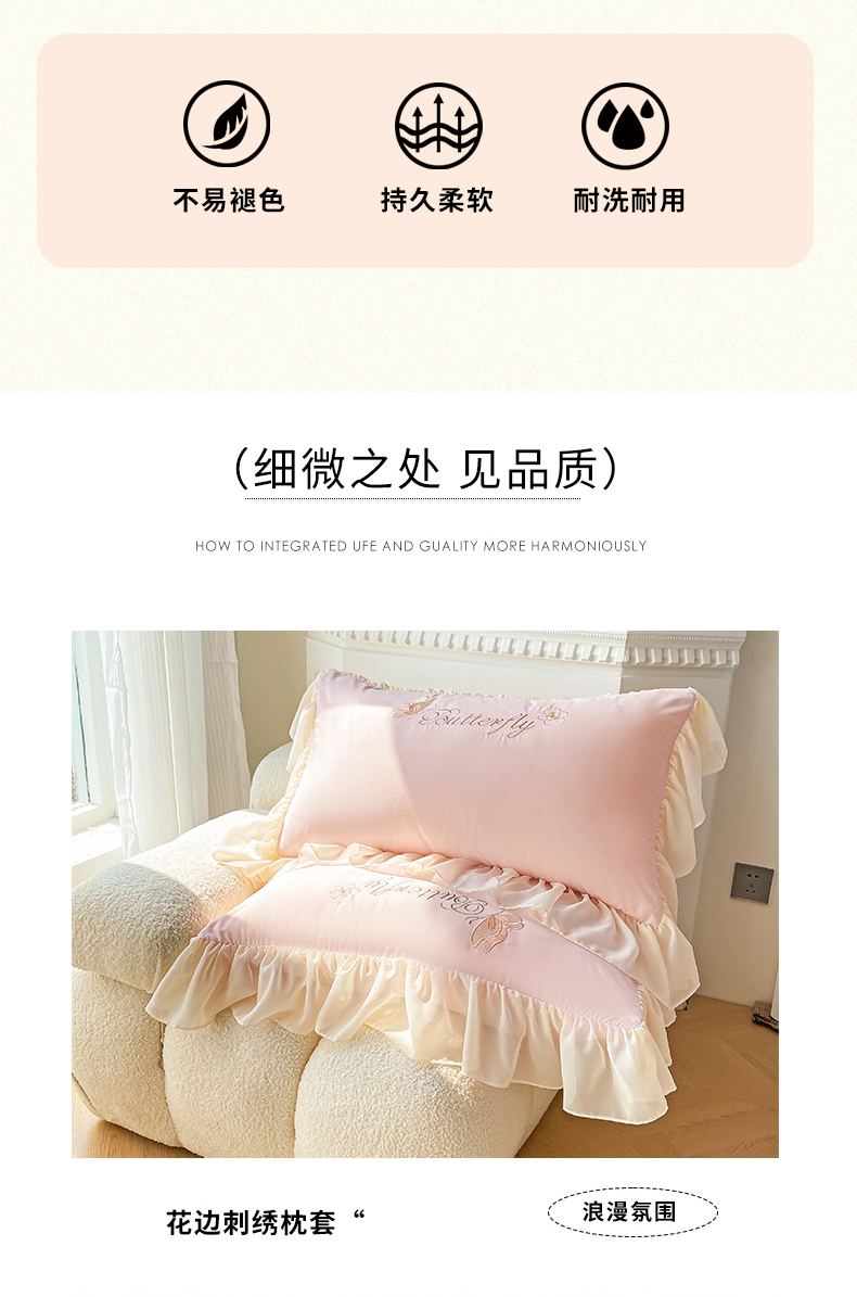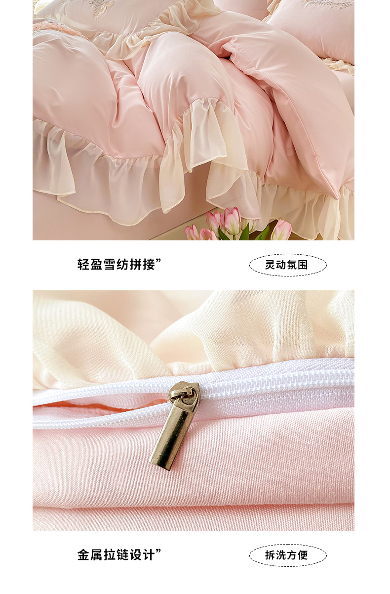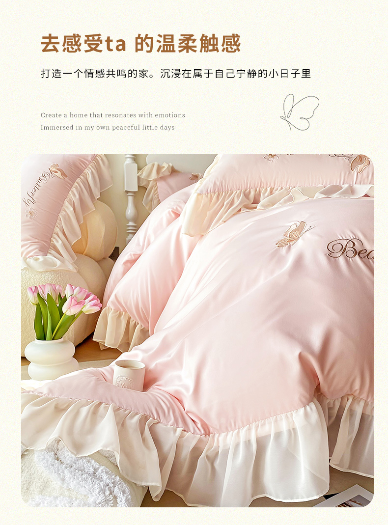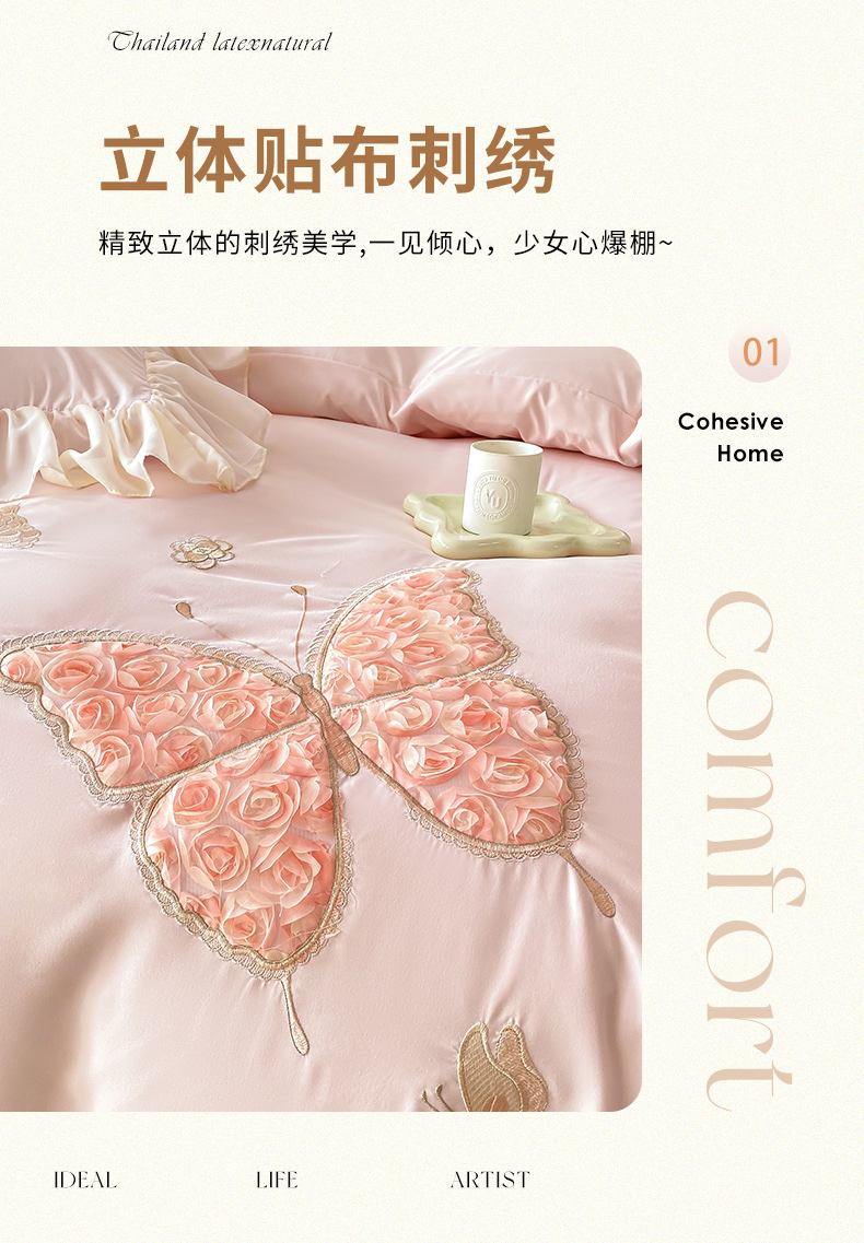 富盛 2024新款水洗亲肤棉立体刺绣四件套公主风四件套-蝴蝶系列 蝴蝶-粉