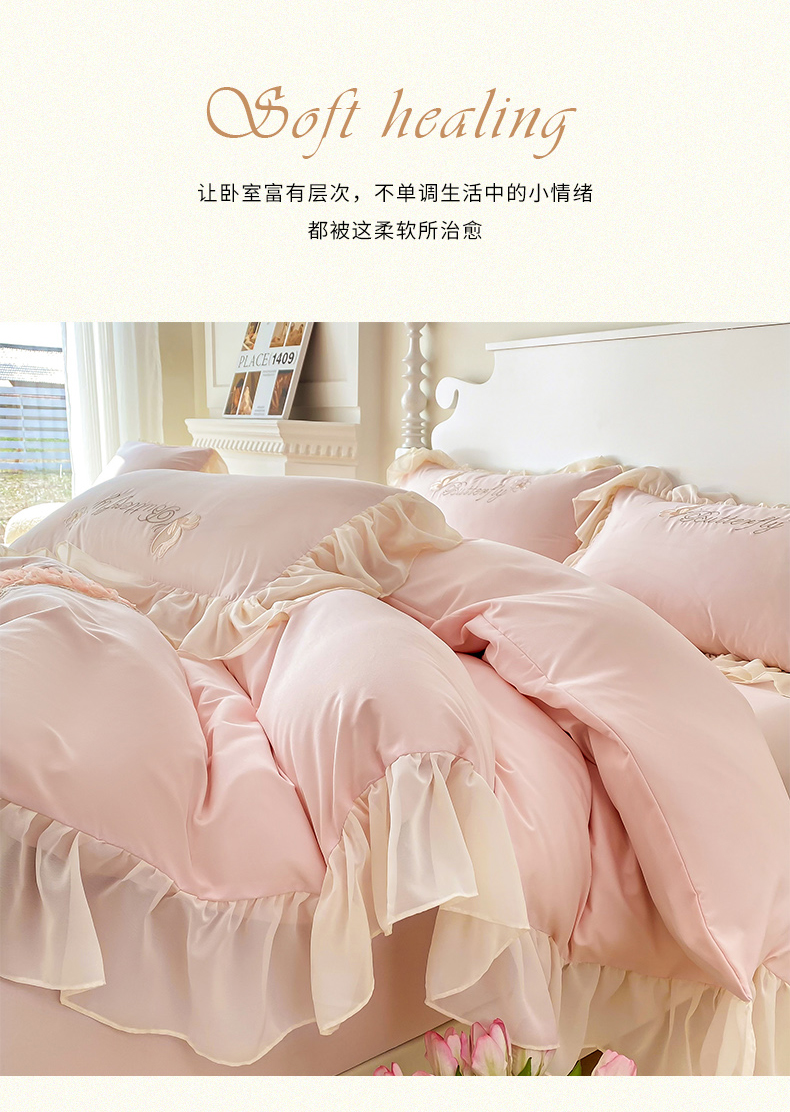 (总)富盛家纺 2024新款水洗亲肤棉立体盘花刺绣公主风四件套,伊莉莎—粉,伊莉莎—白,伊莉莎—紫,伊莉莎—黄,伊莉莎—浅绿,伊莉莎—蓝,伊莉莎—豆沙,伊莉莎—嫩绿