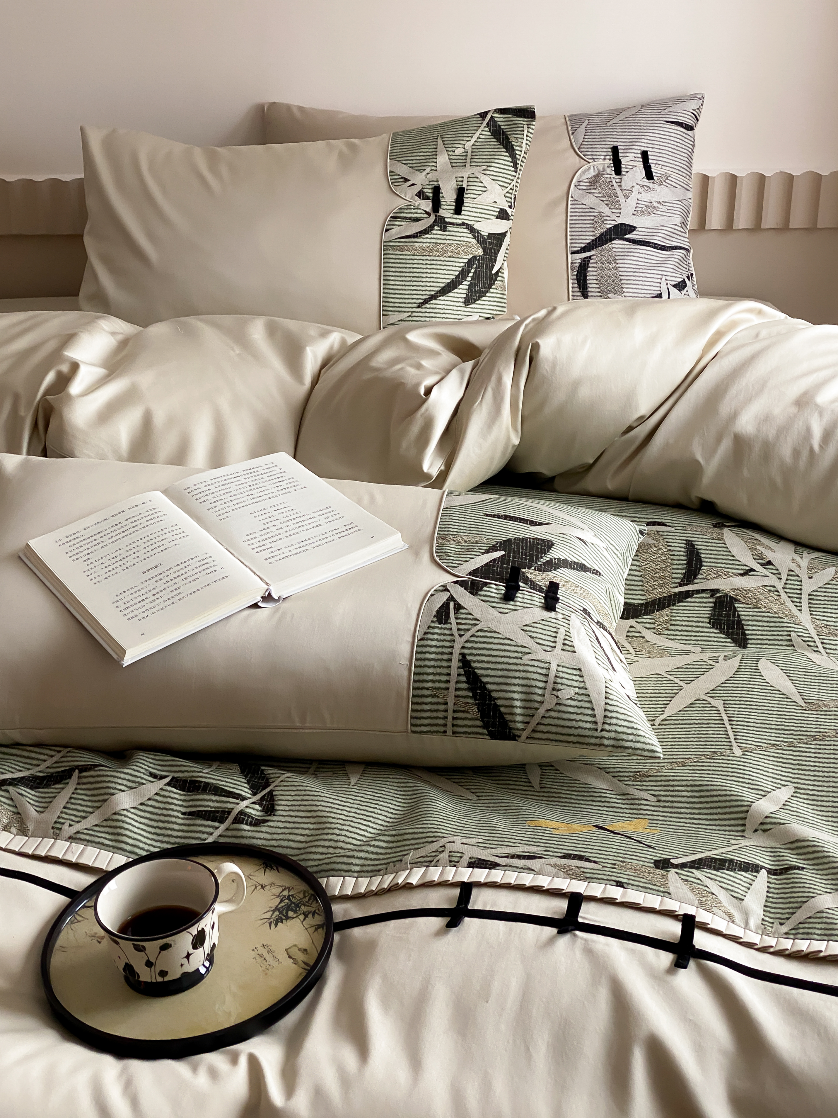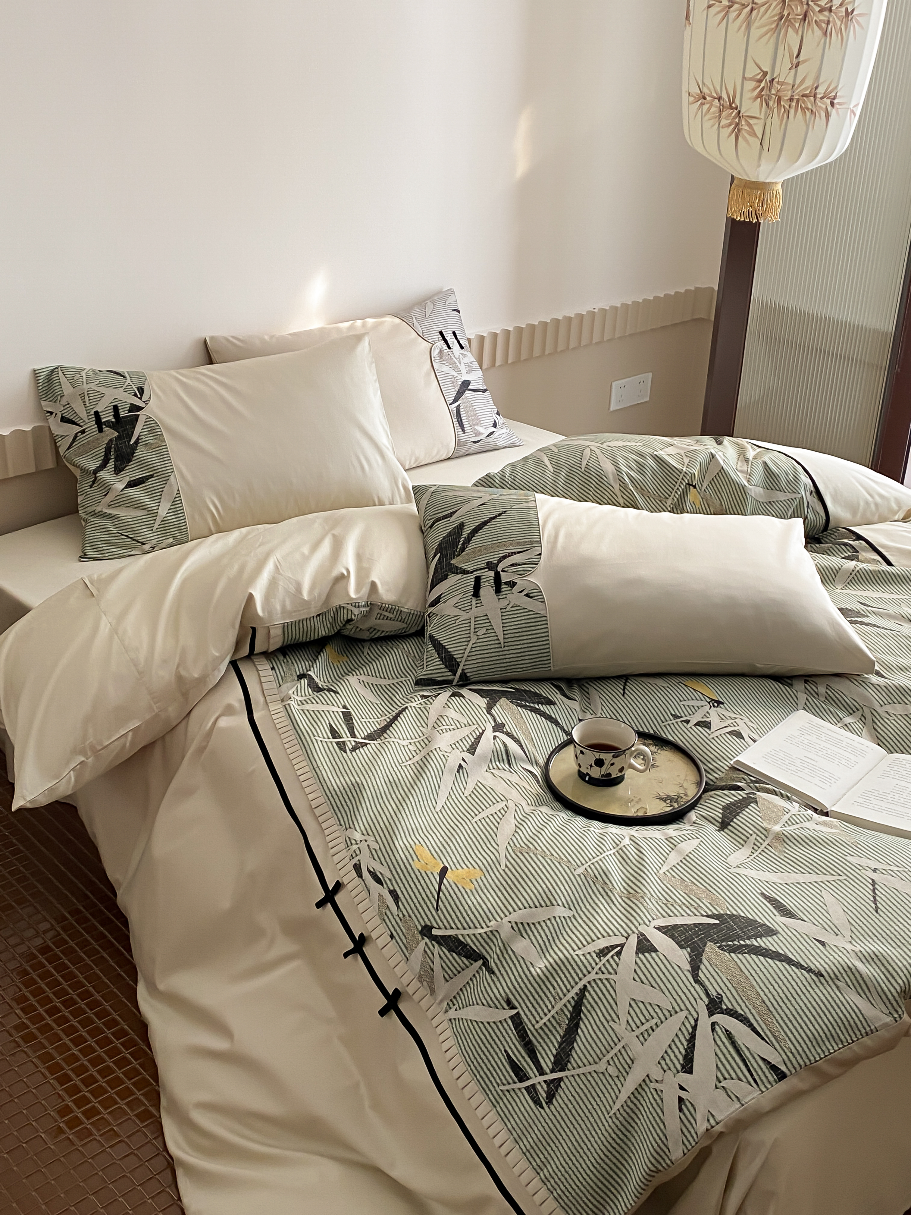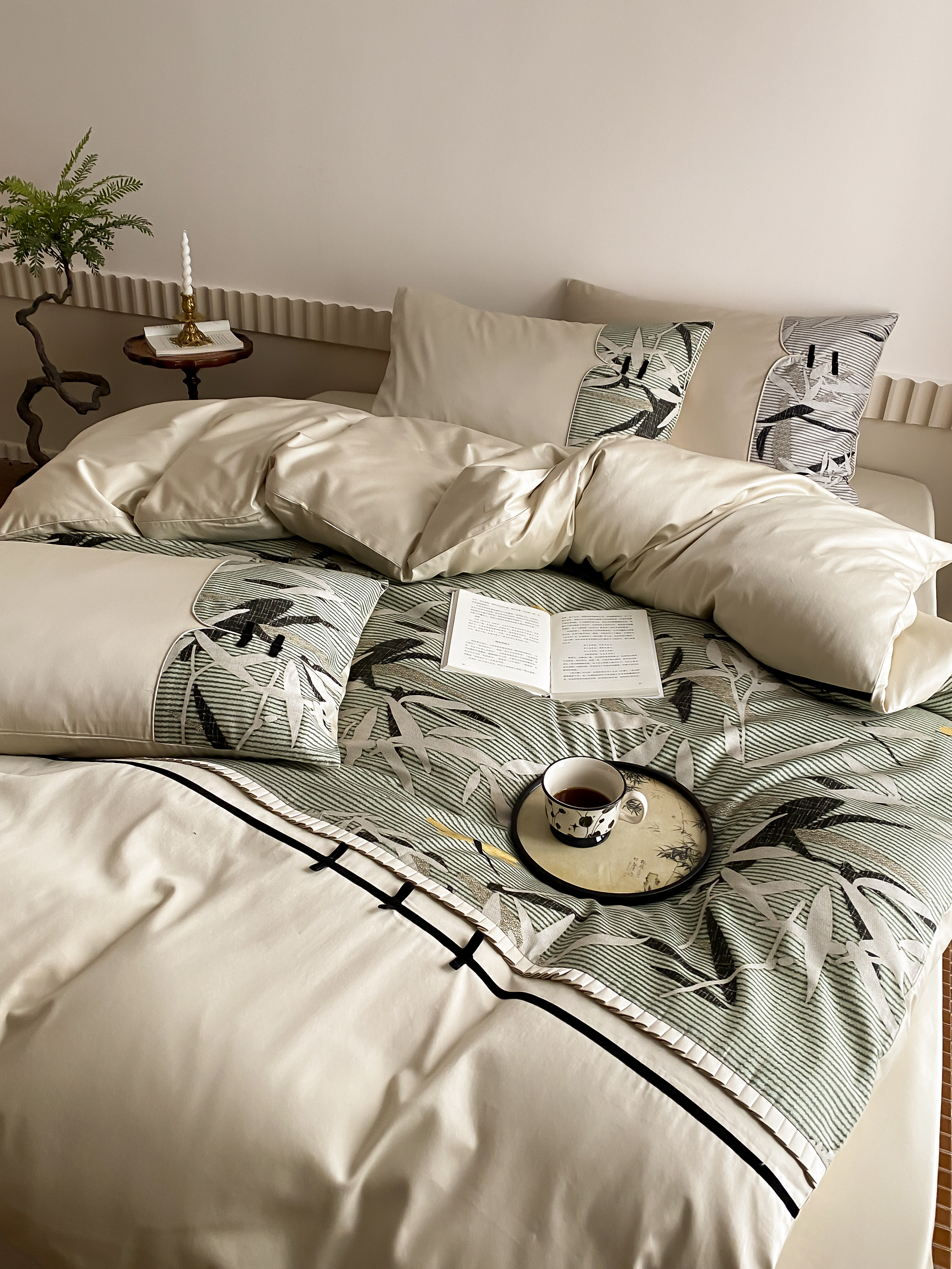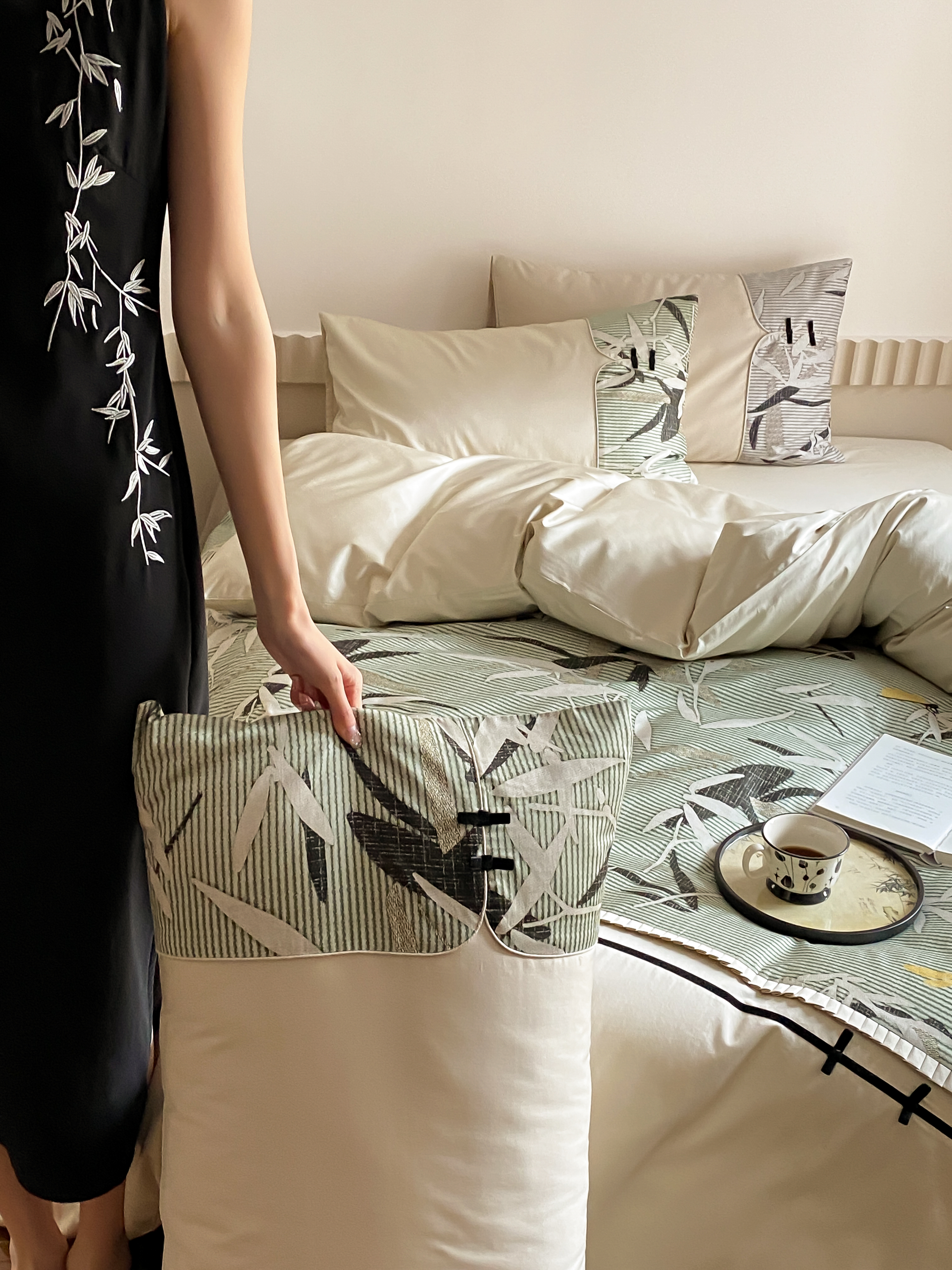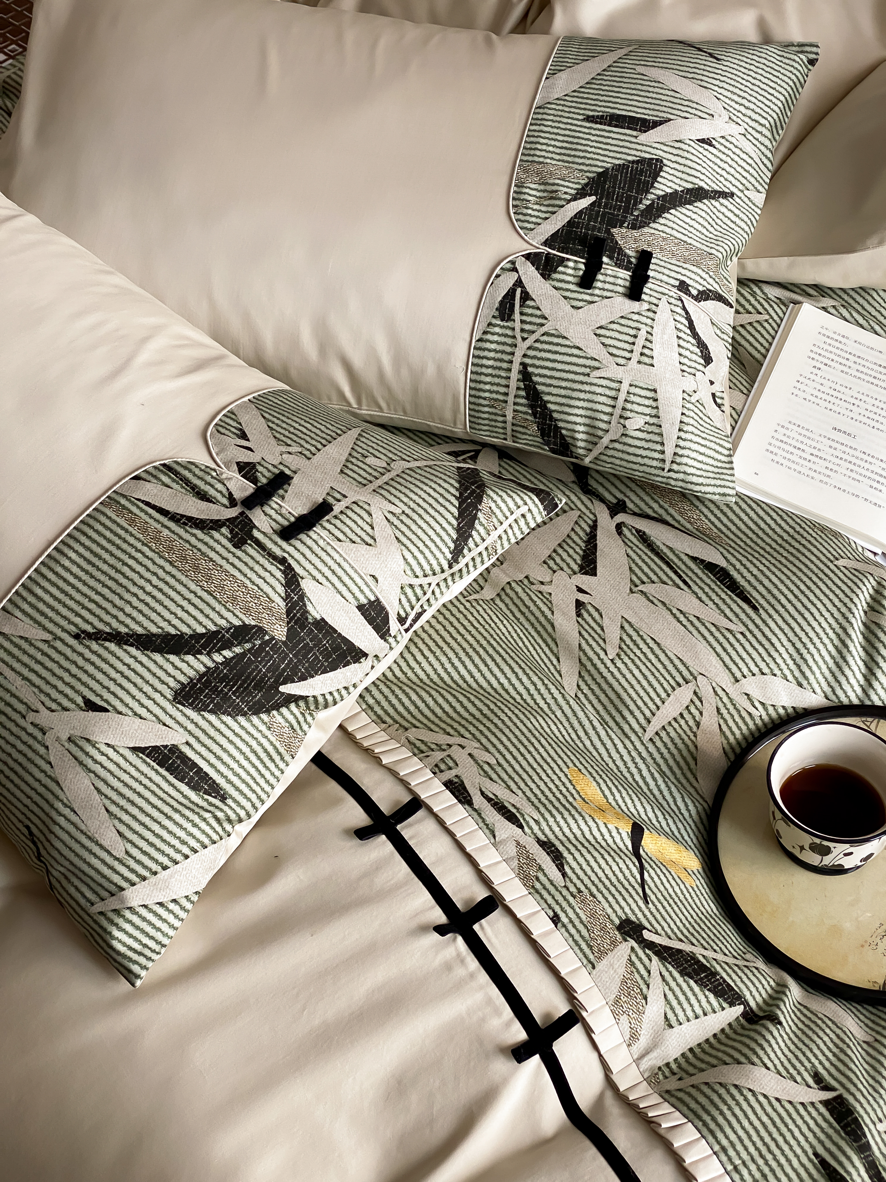 商品名称:赫帛 2024新款50s缎纹数码印花长绒棉四件套--竹韵系列 竹韵-绿色