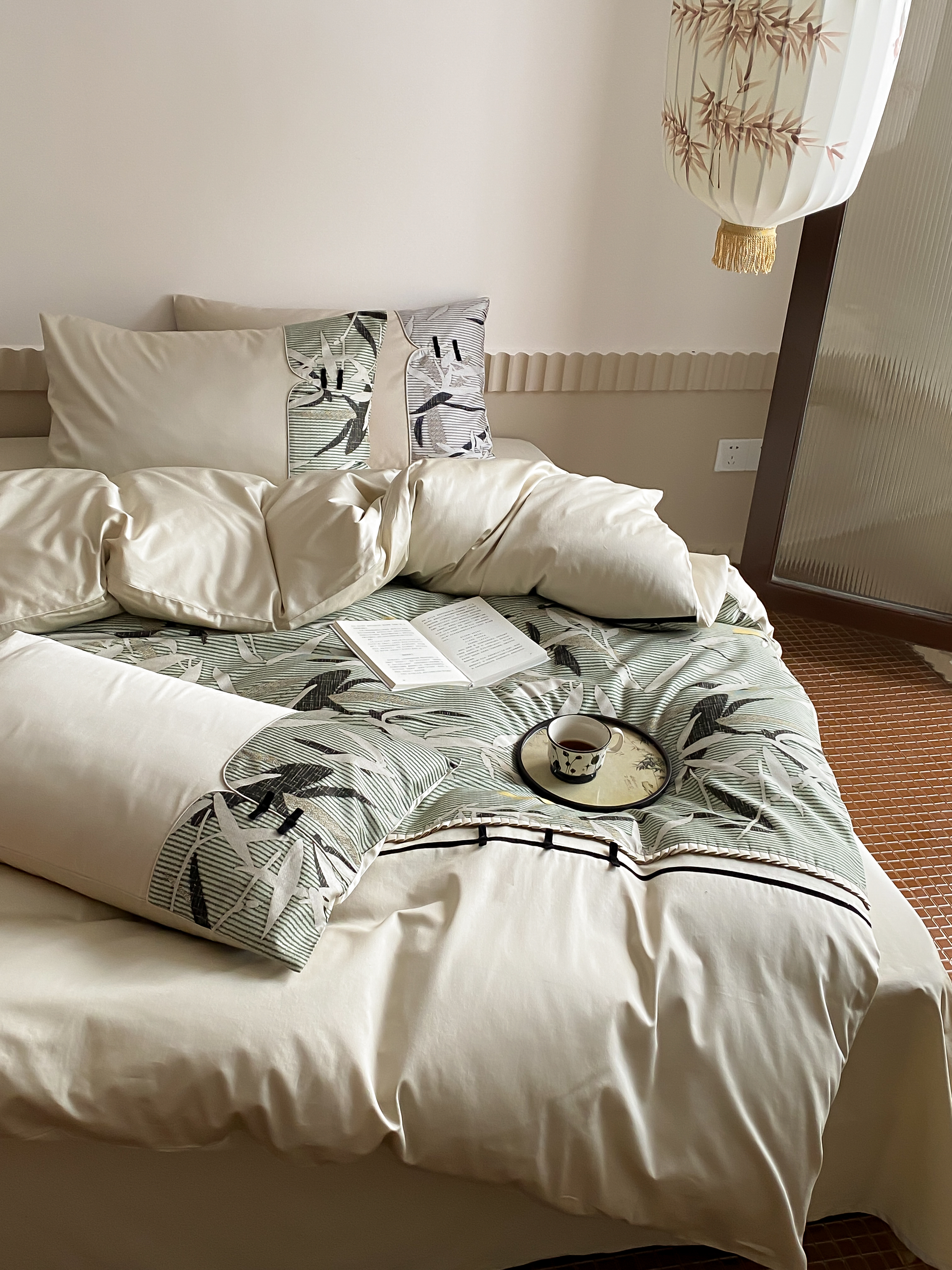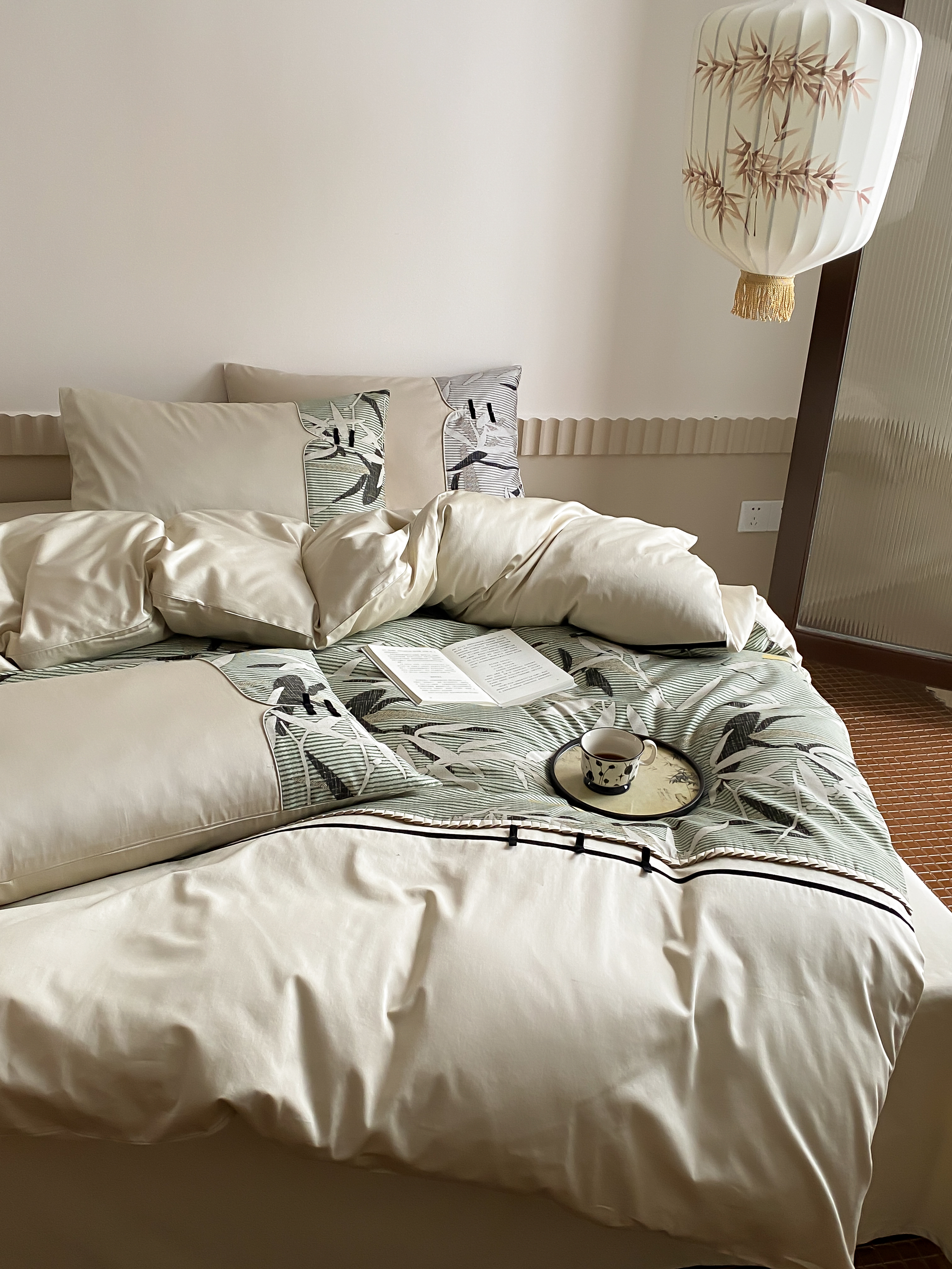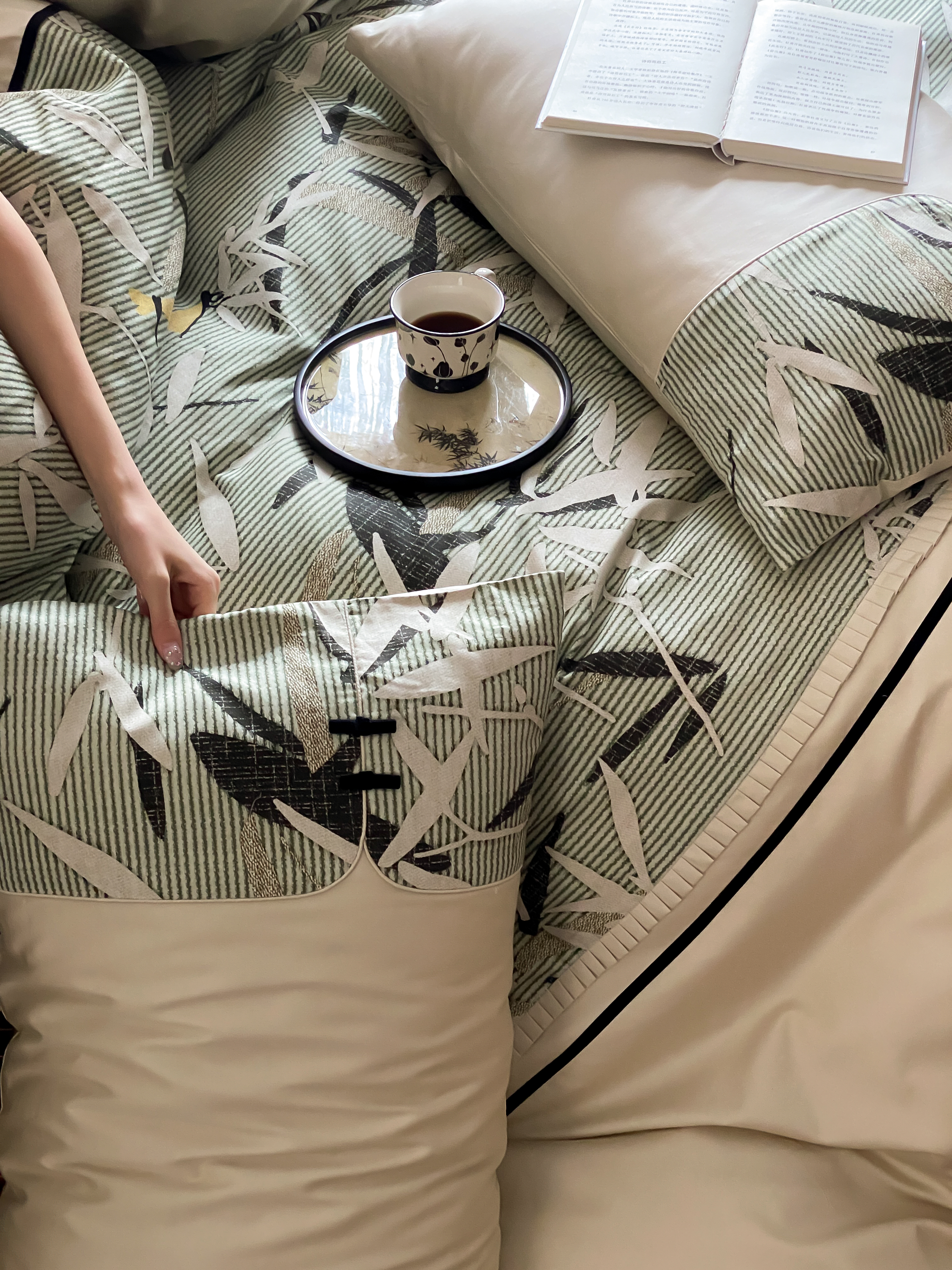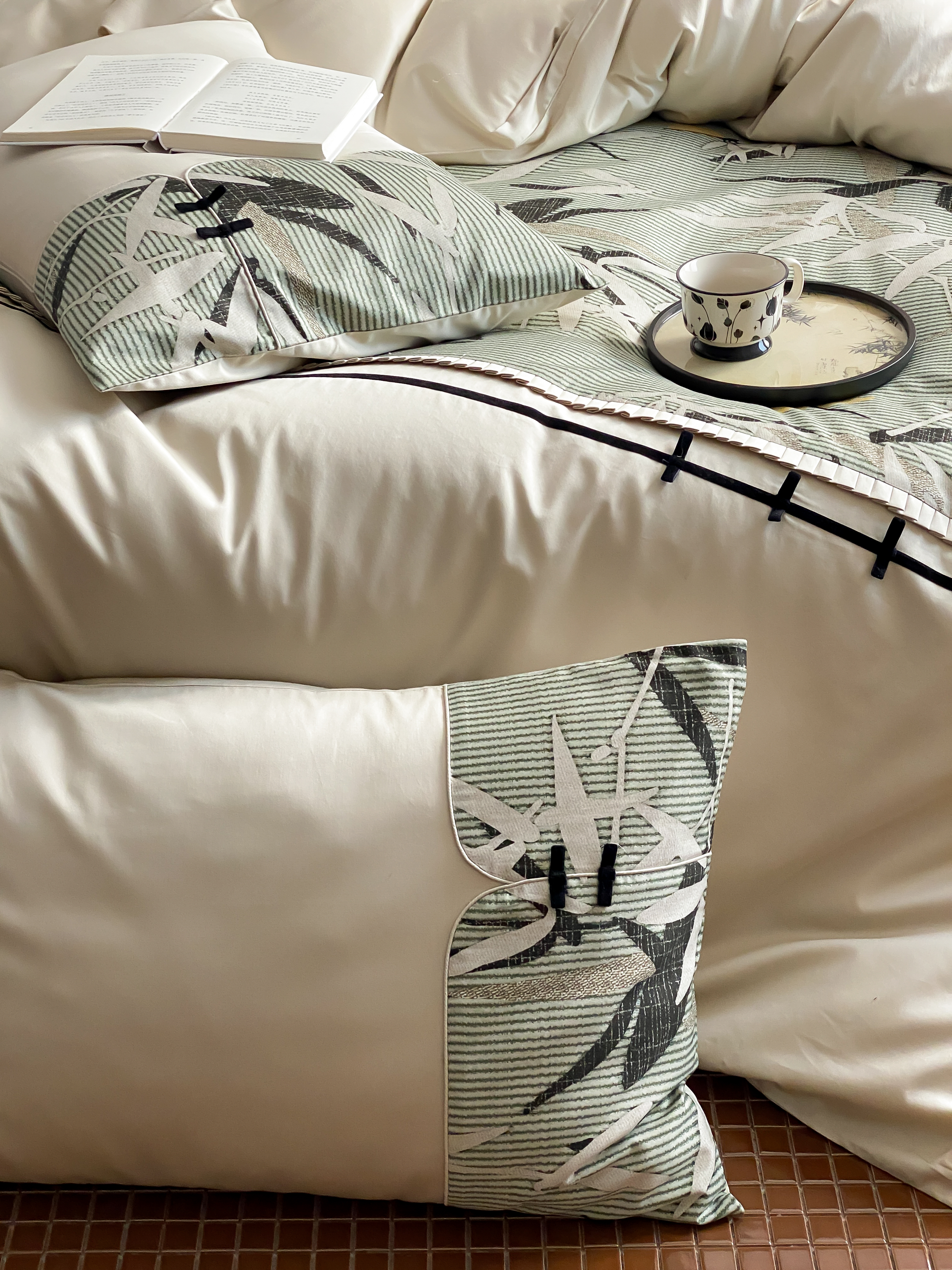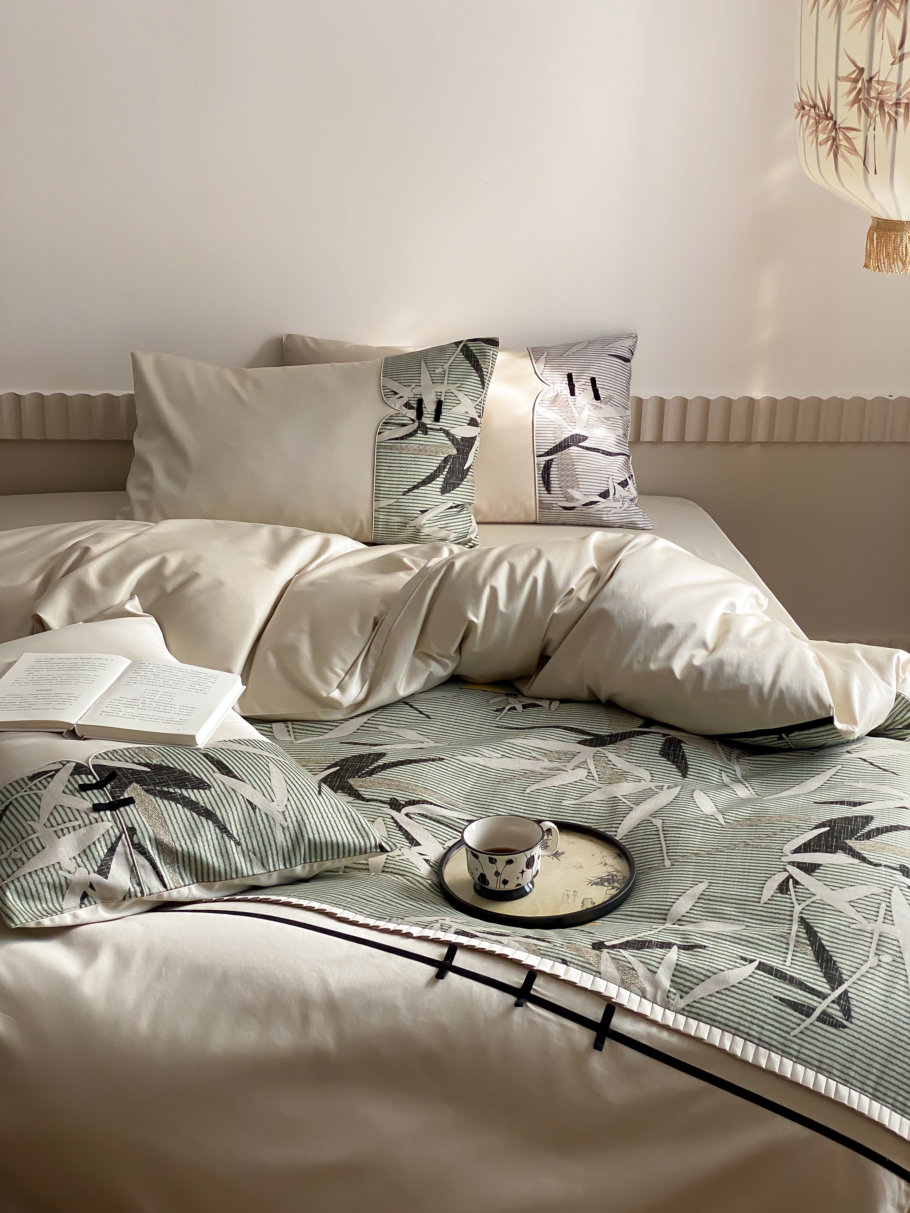 商品名称:赫帛 2024新款50s缎纹数码印花长绒棉四件套--竹韵系列 竹韵-绿色