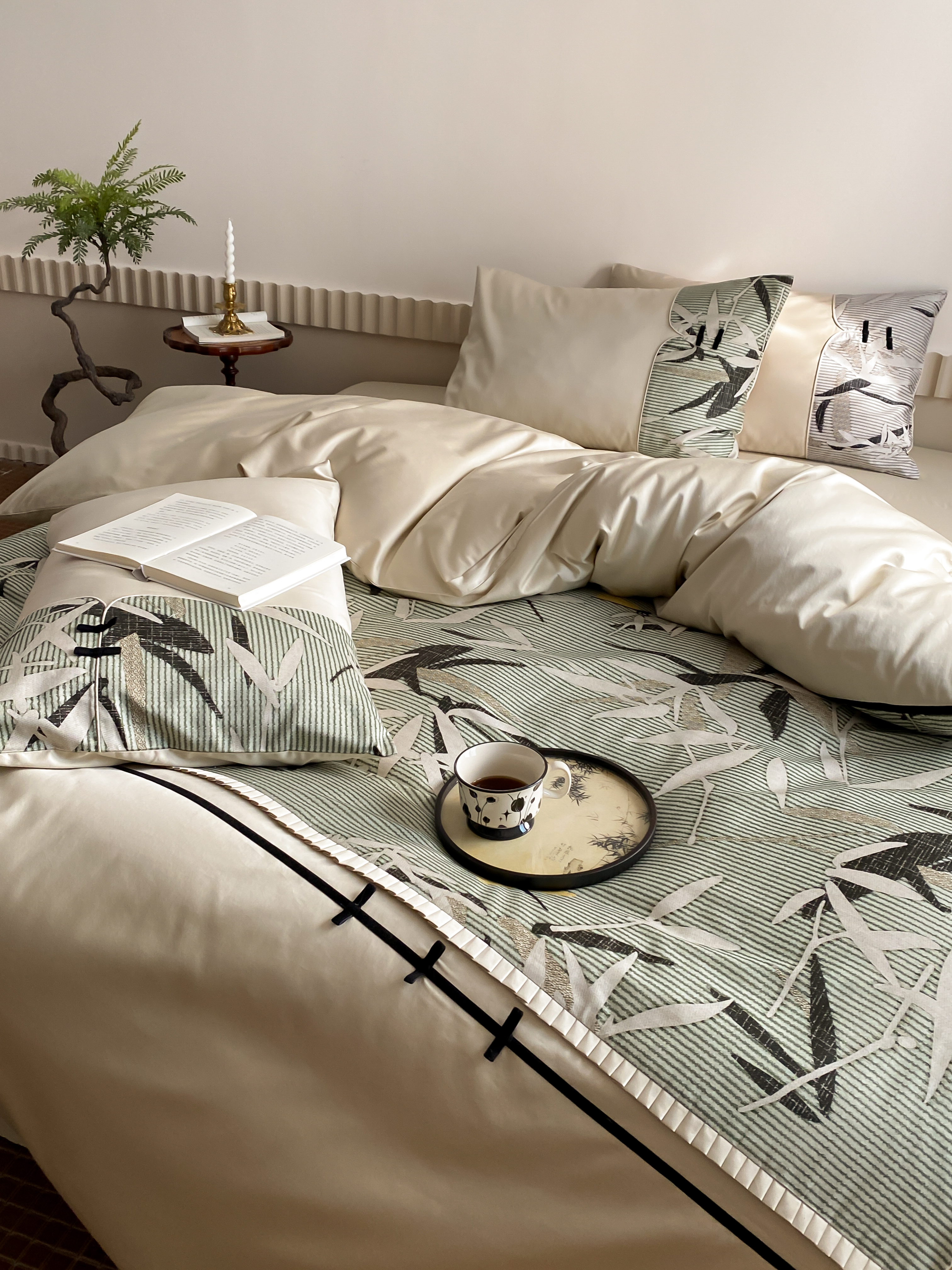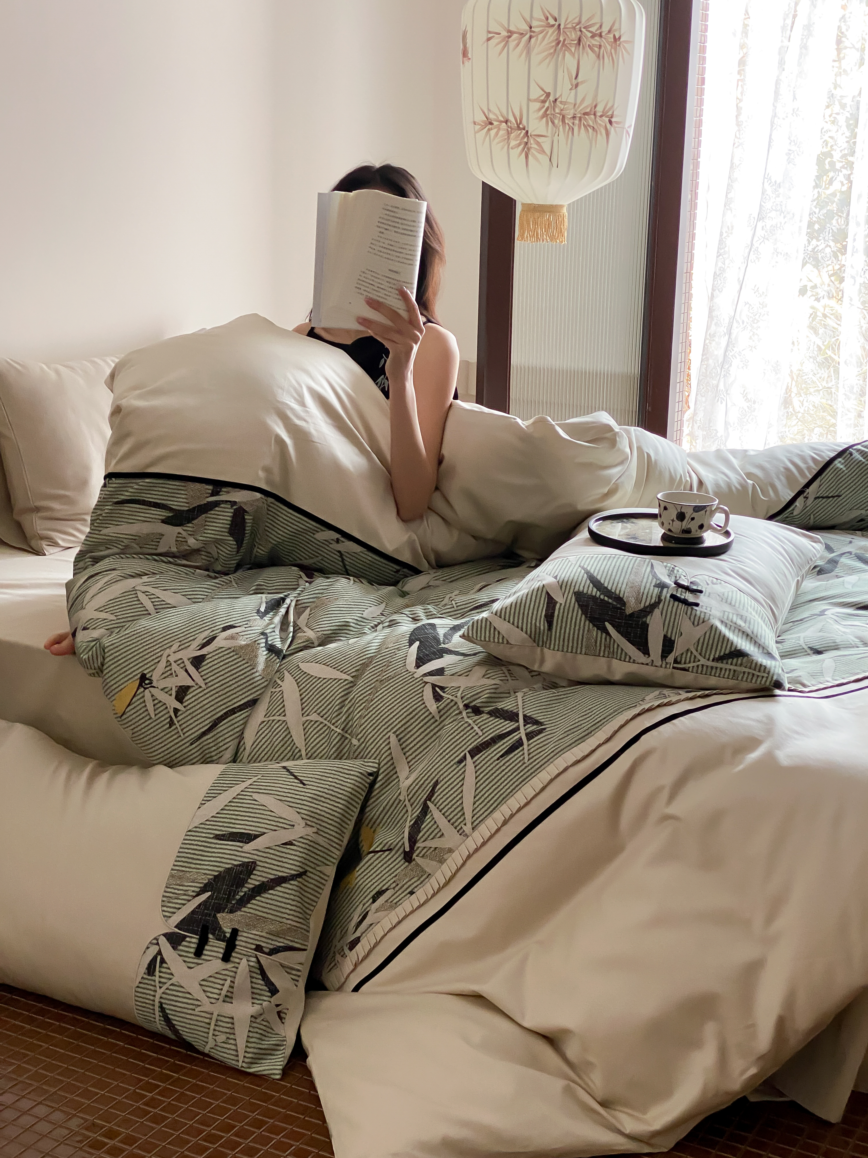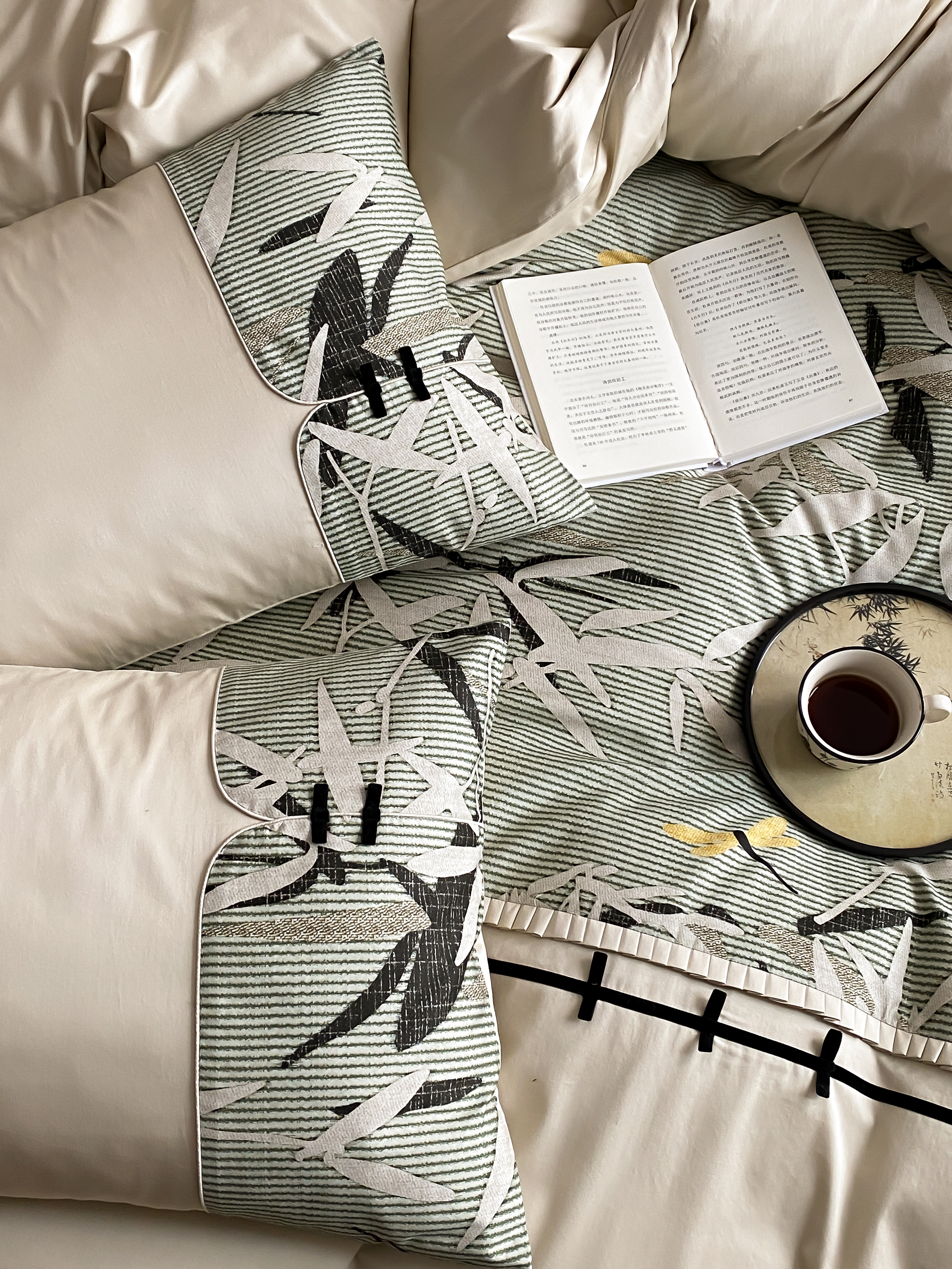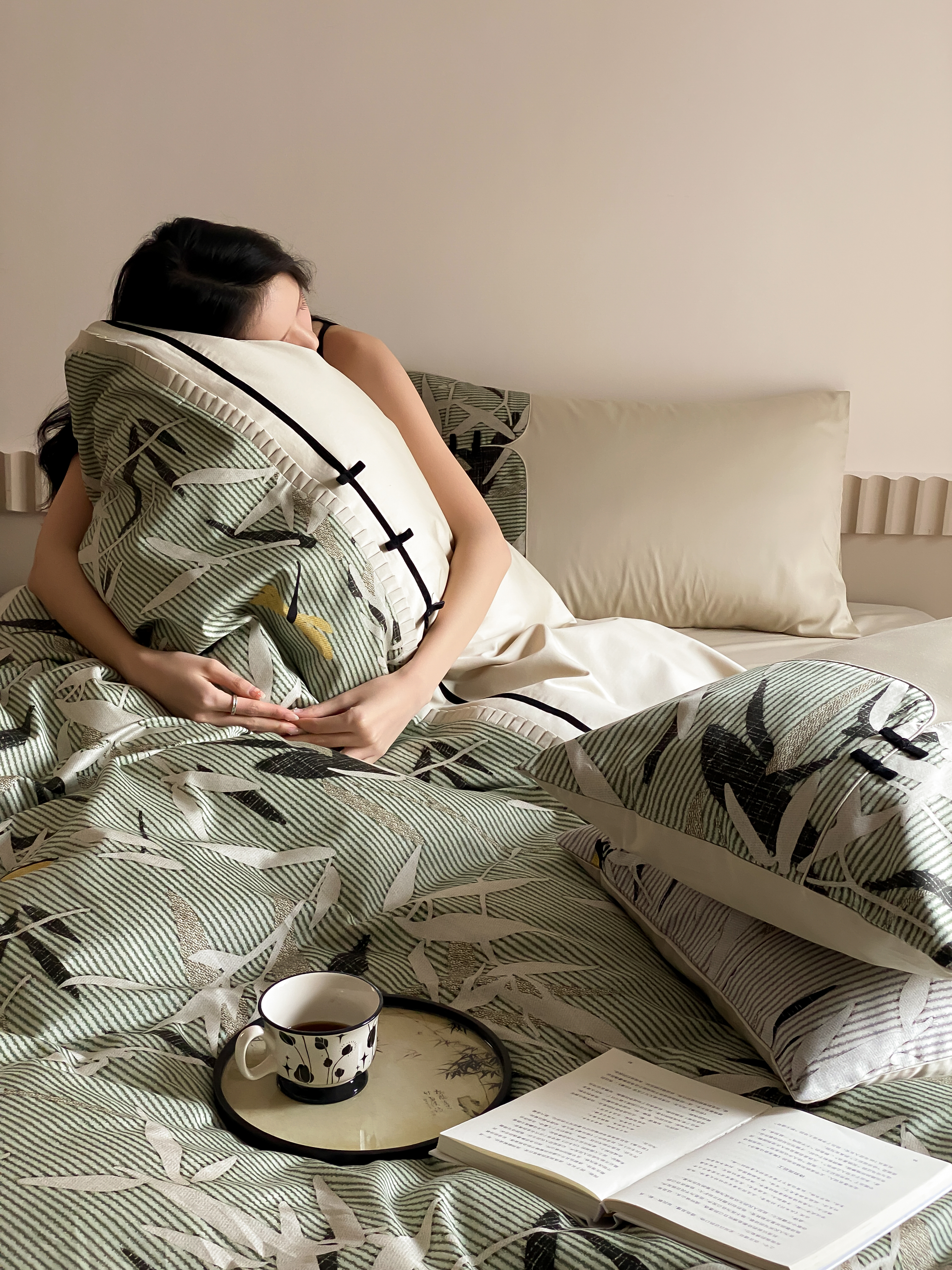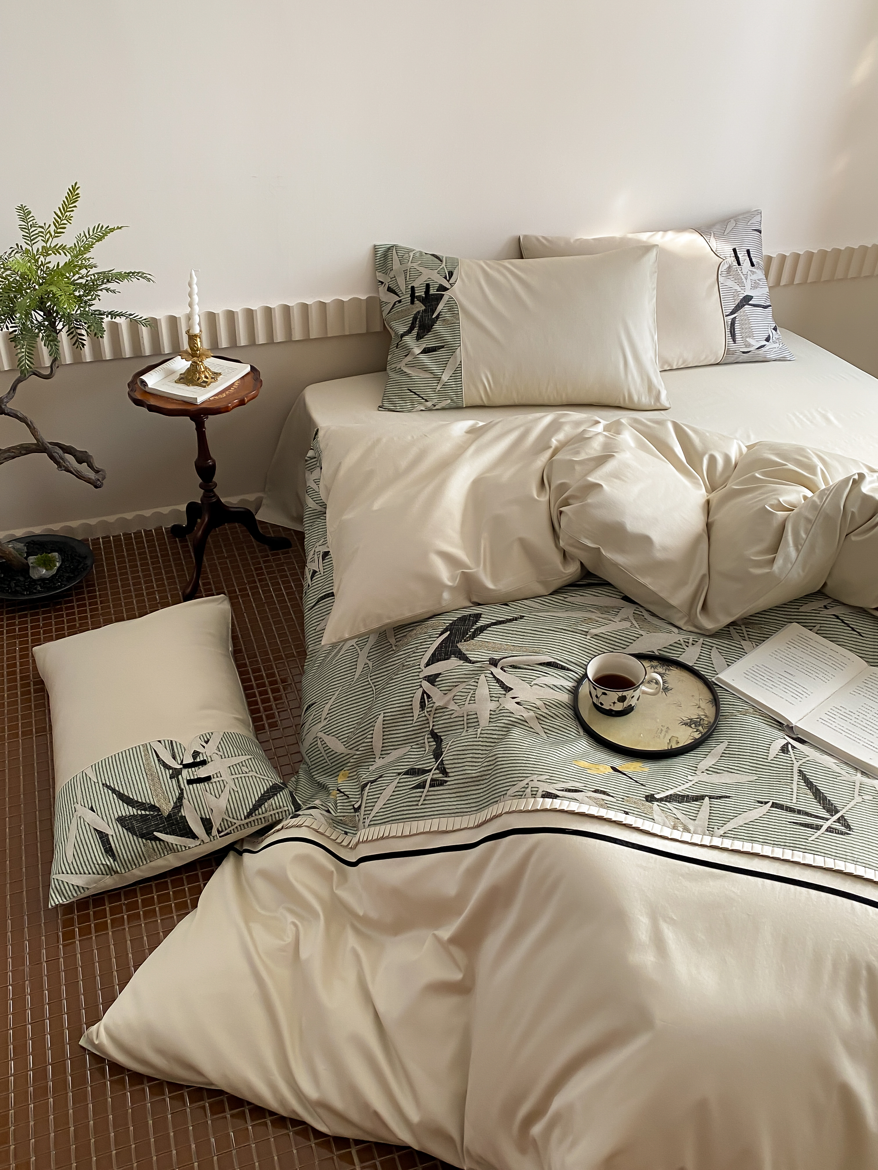 商品名称:赫帛 2024新款50s缎纹数码印花长绒棉四件套--竹韵系列 竹韵-绿色