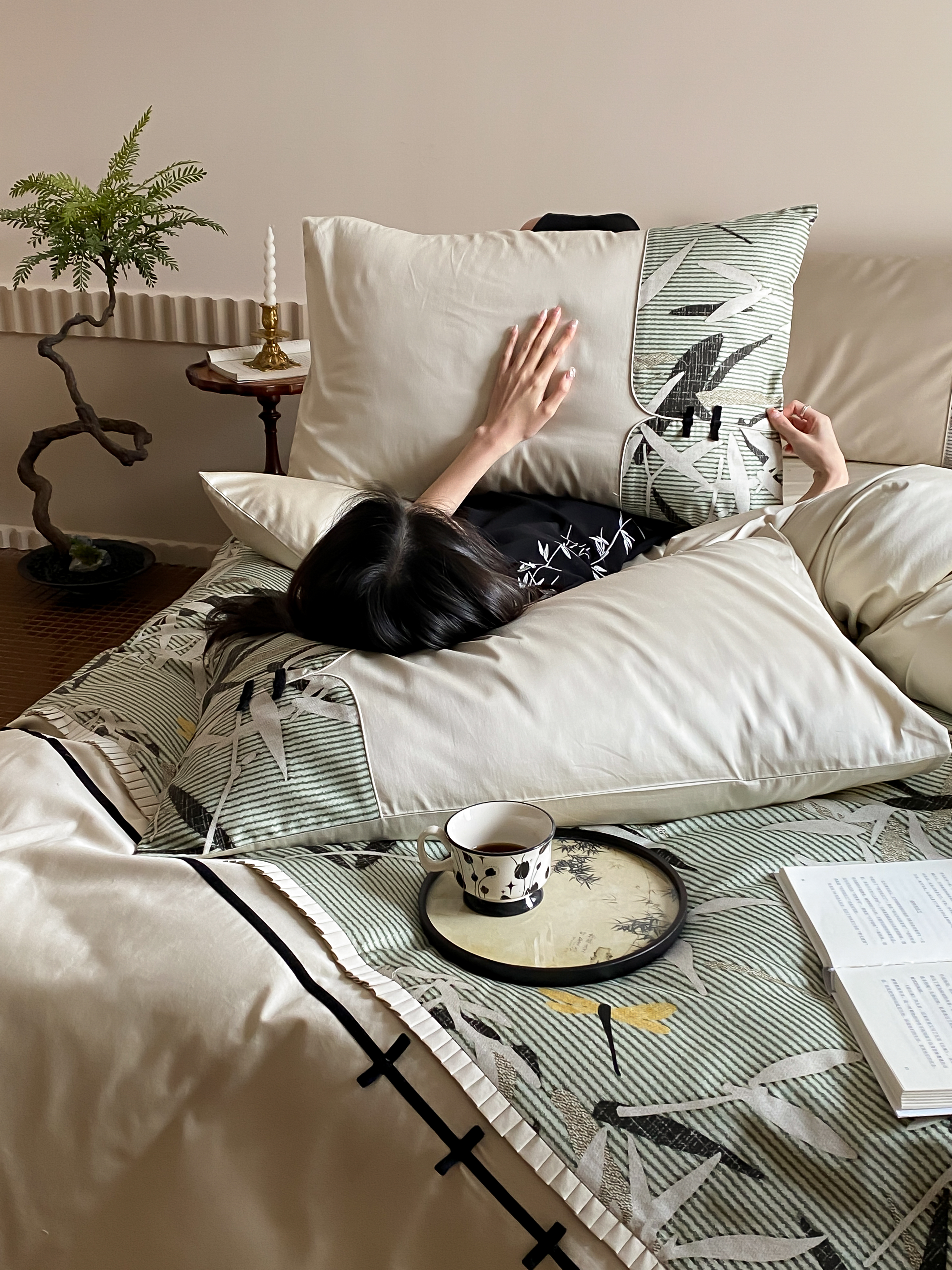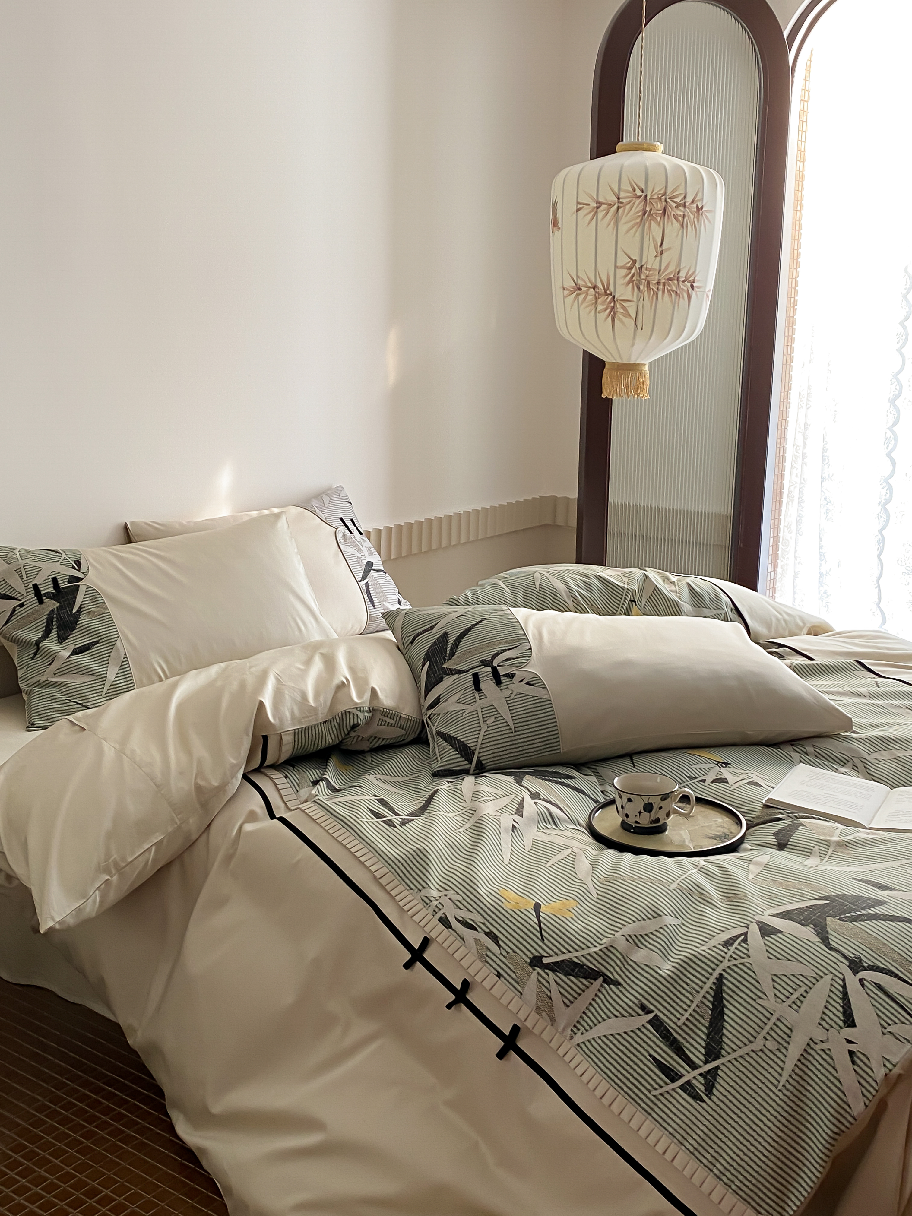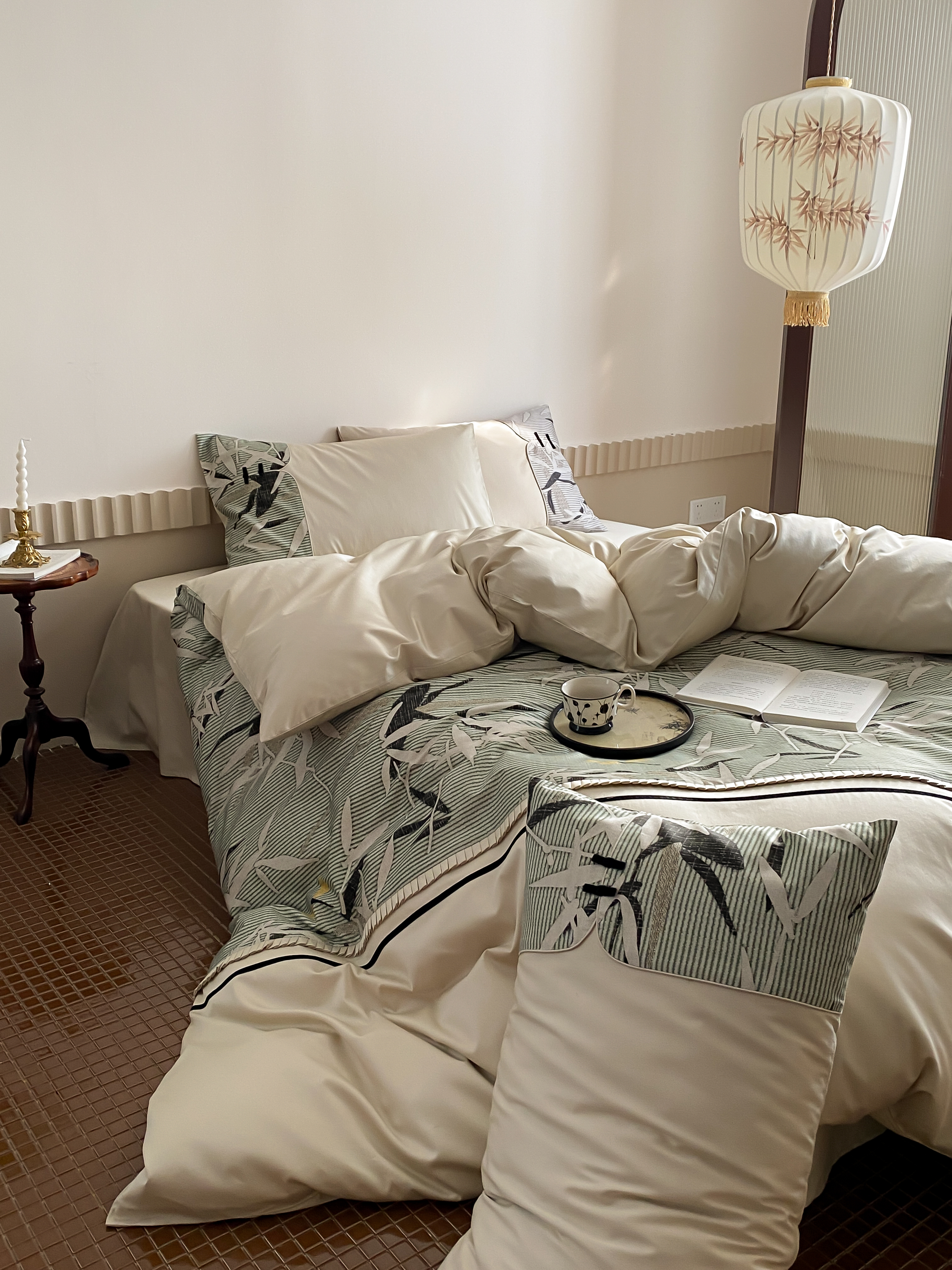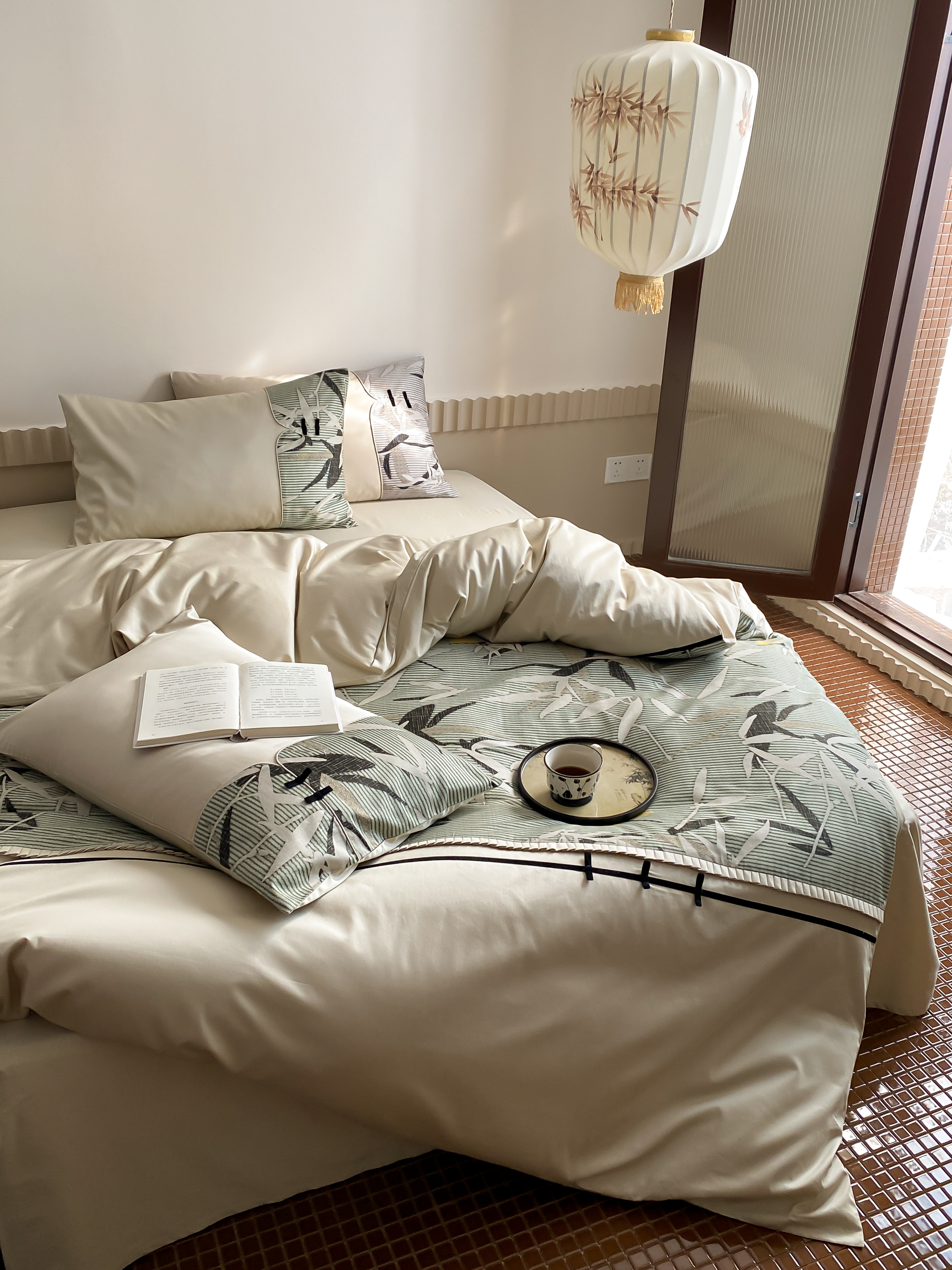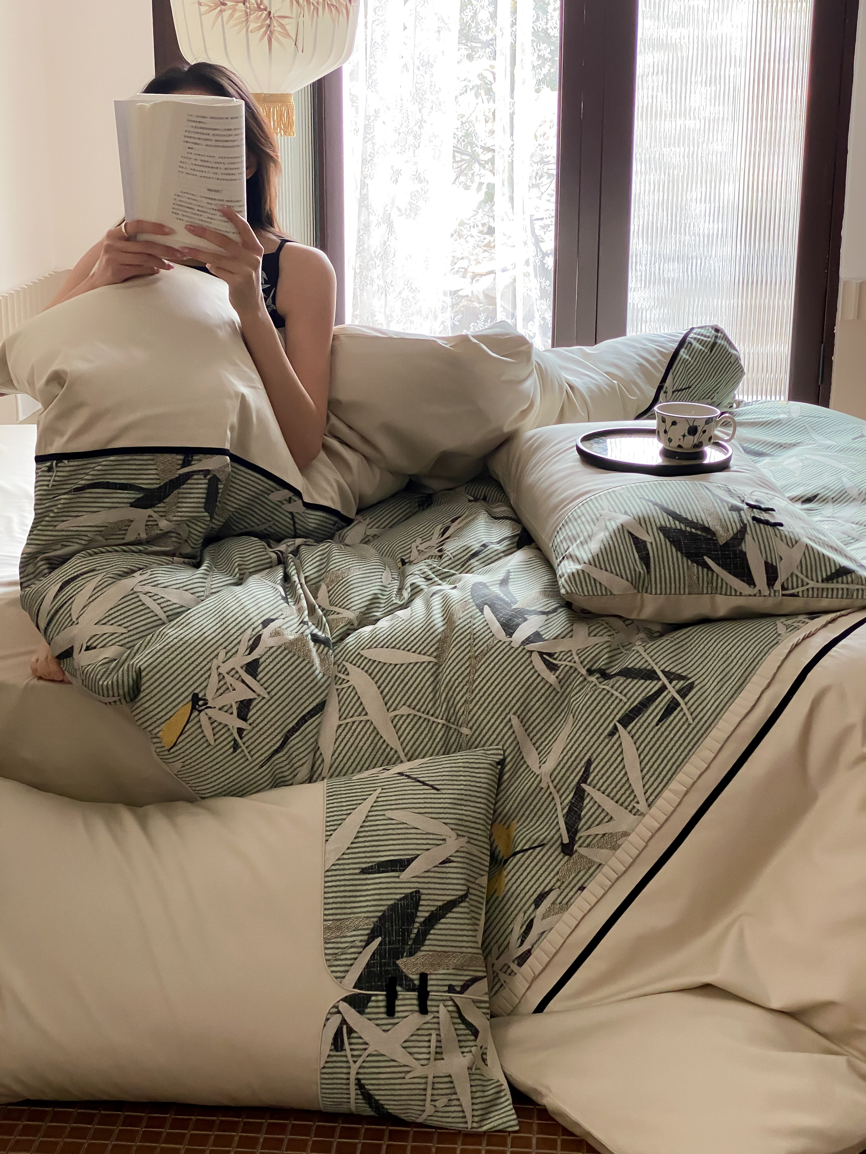 商品名称:赫帛 2024新款50s缎纹数码印花长绒棉四件套--竹韵系列 竹韵-绿色