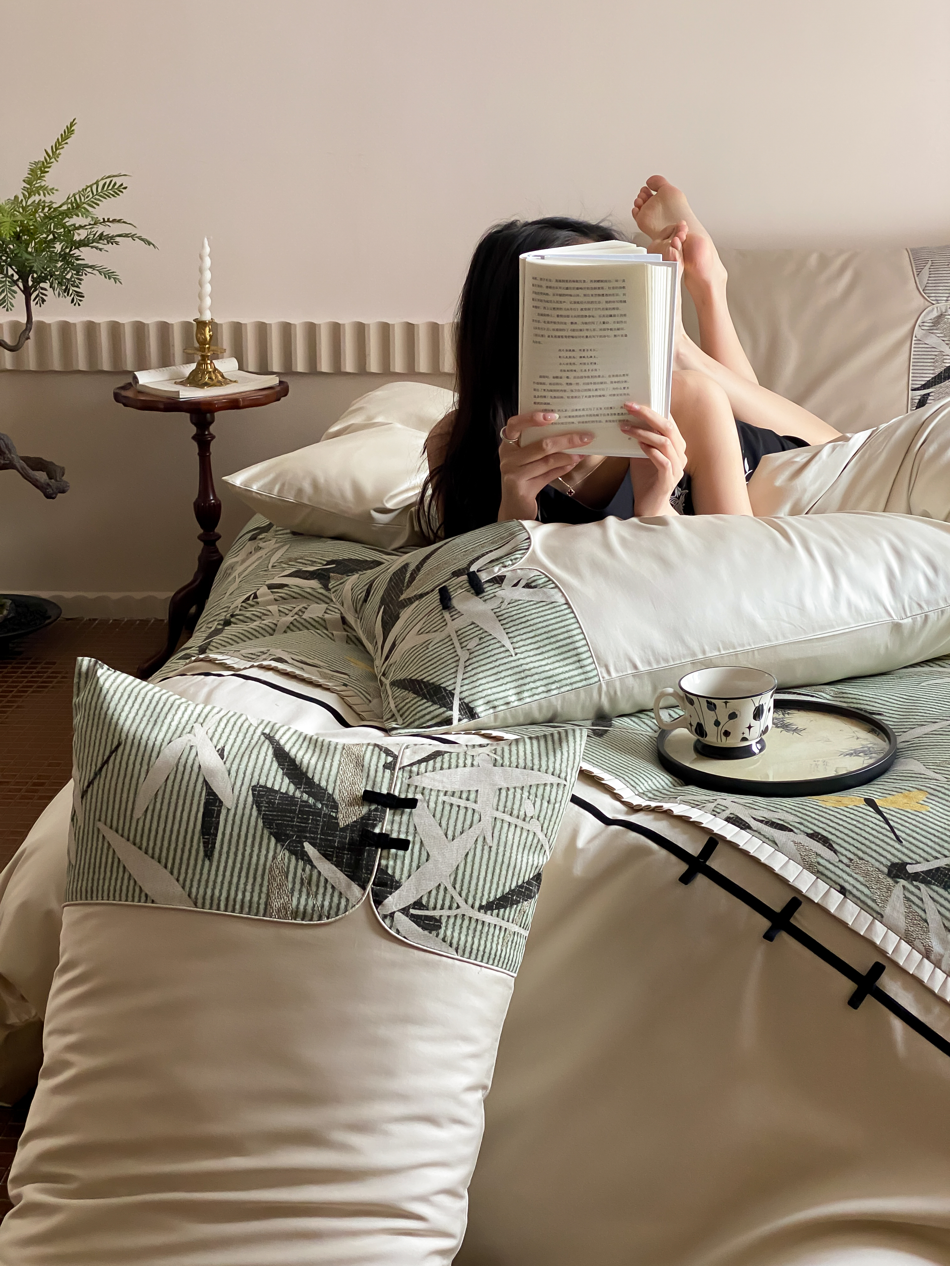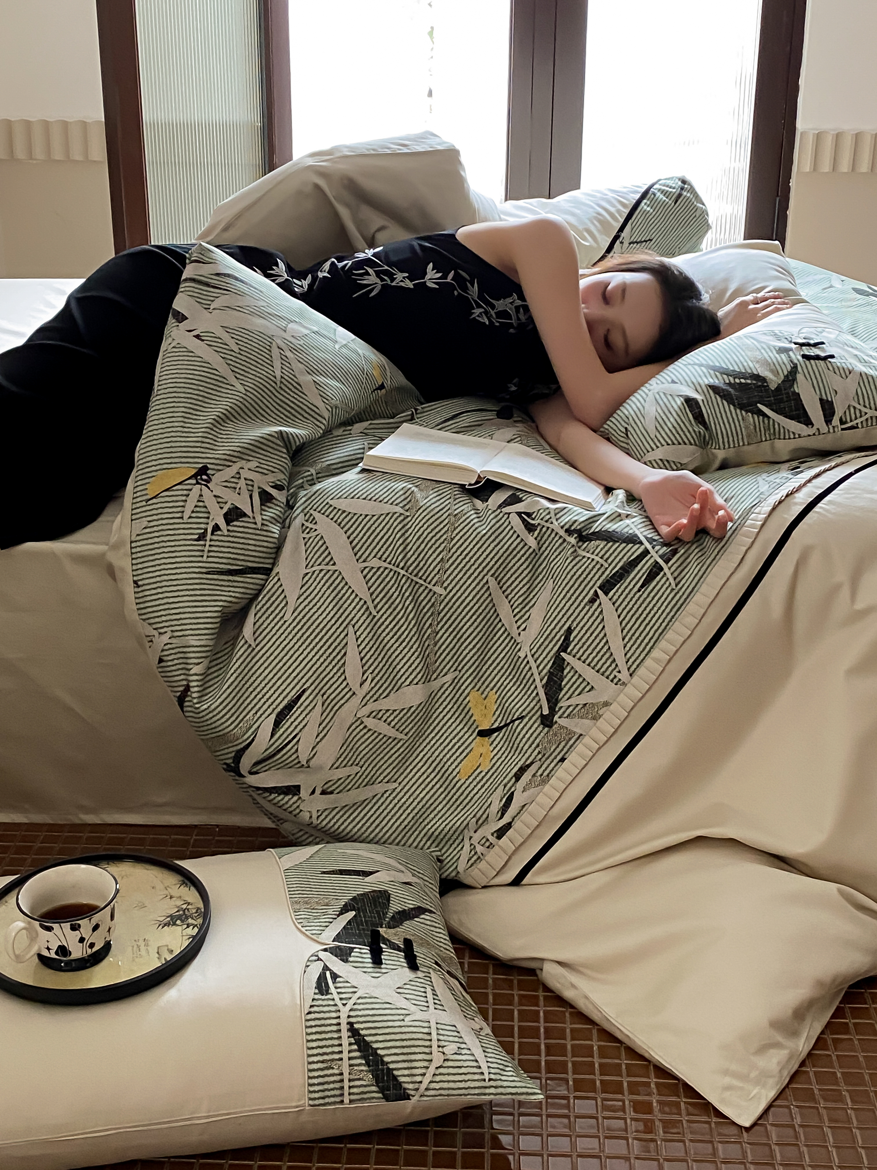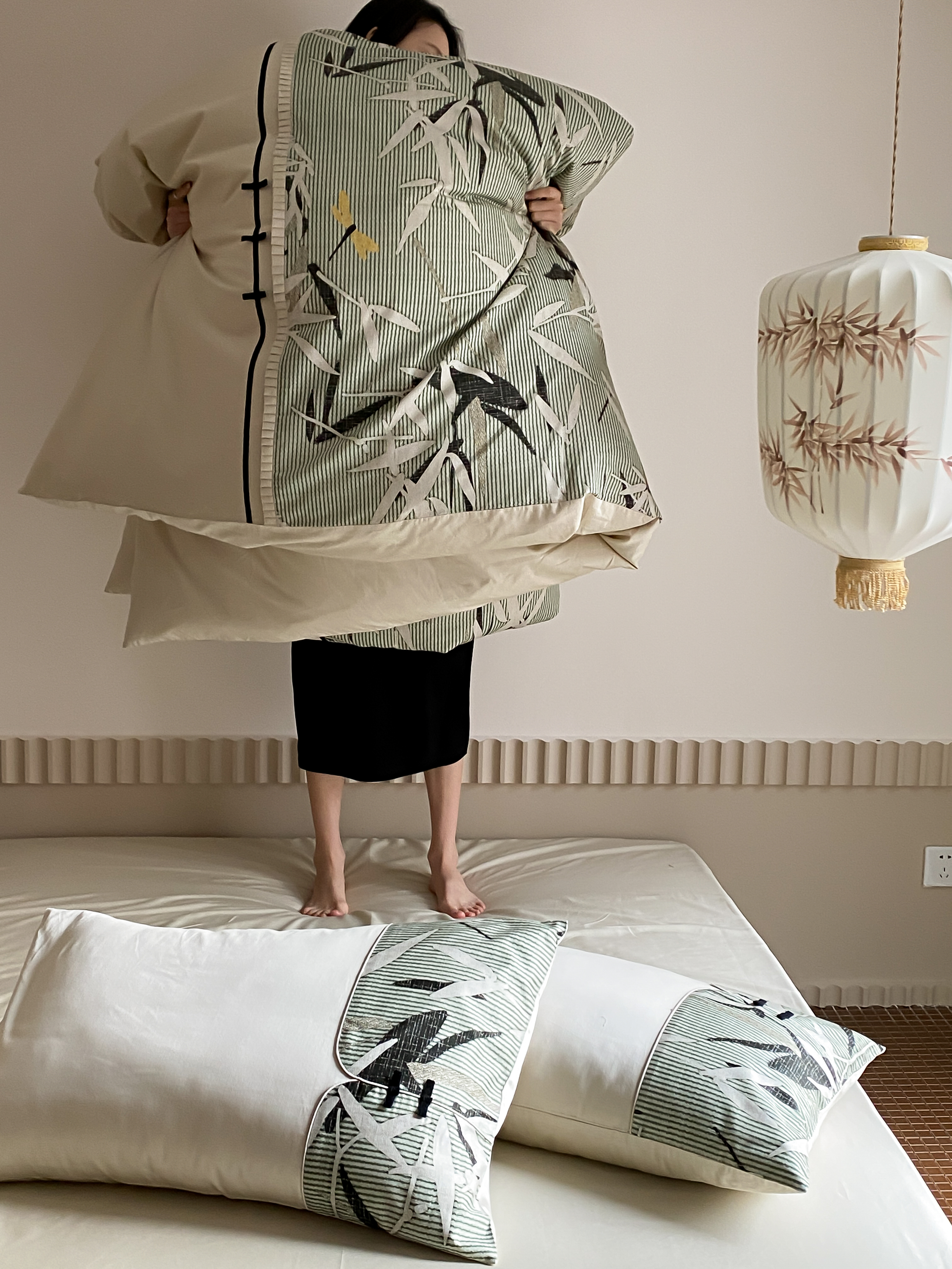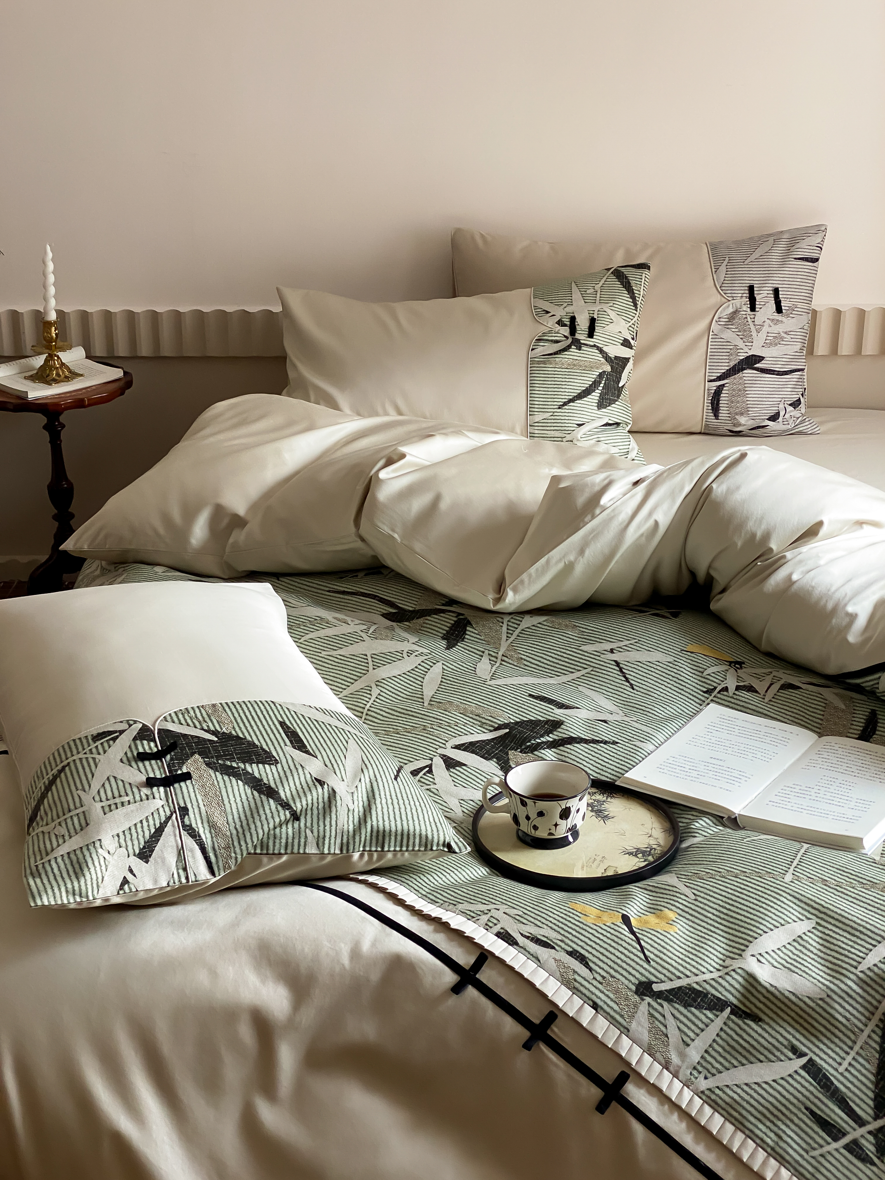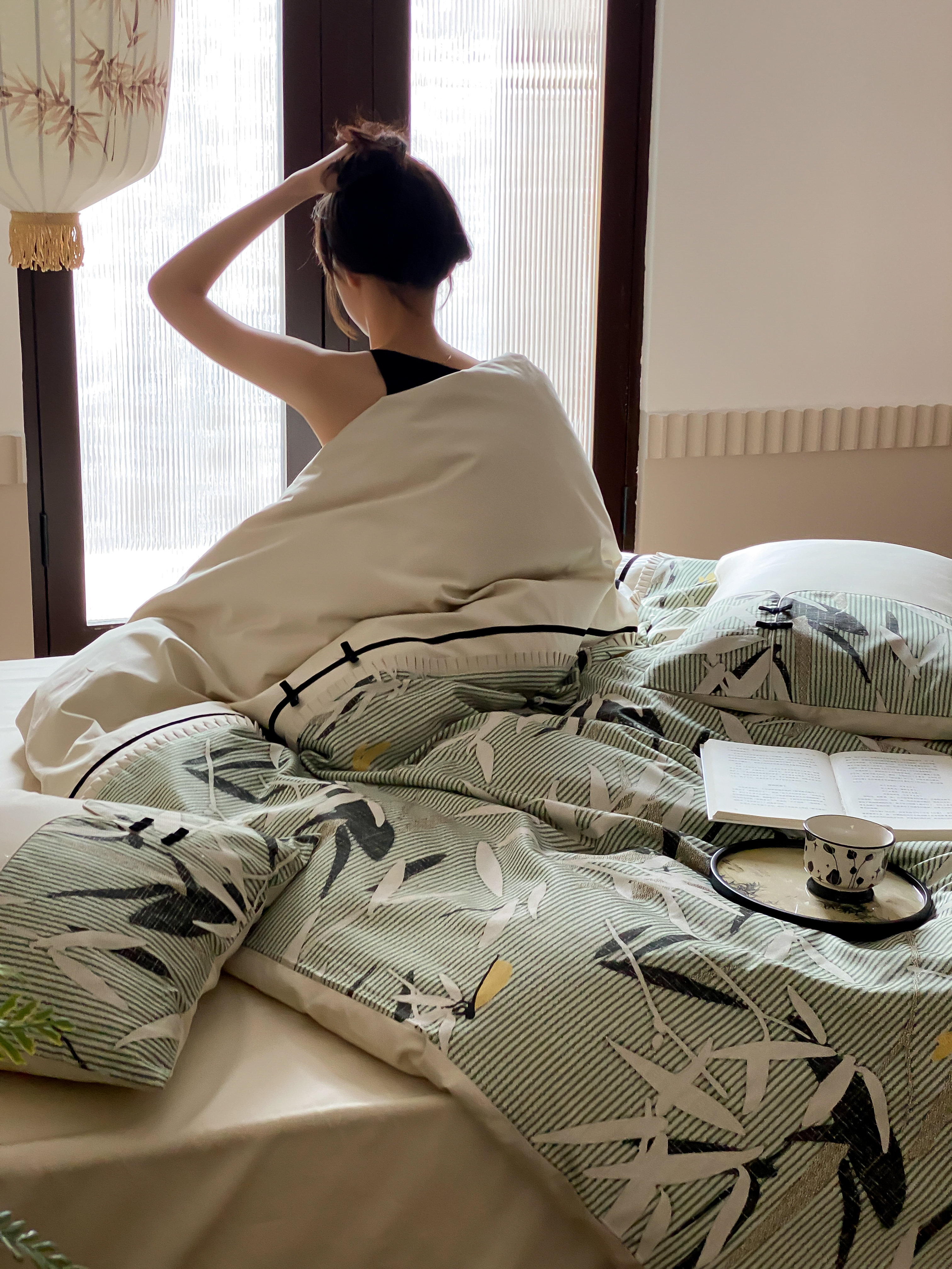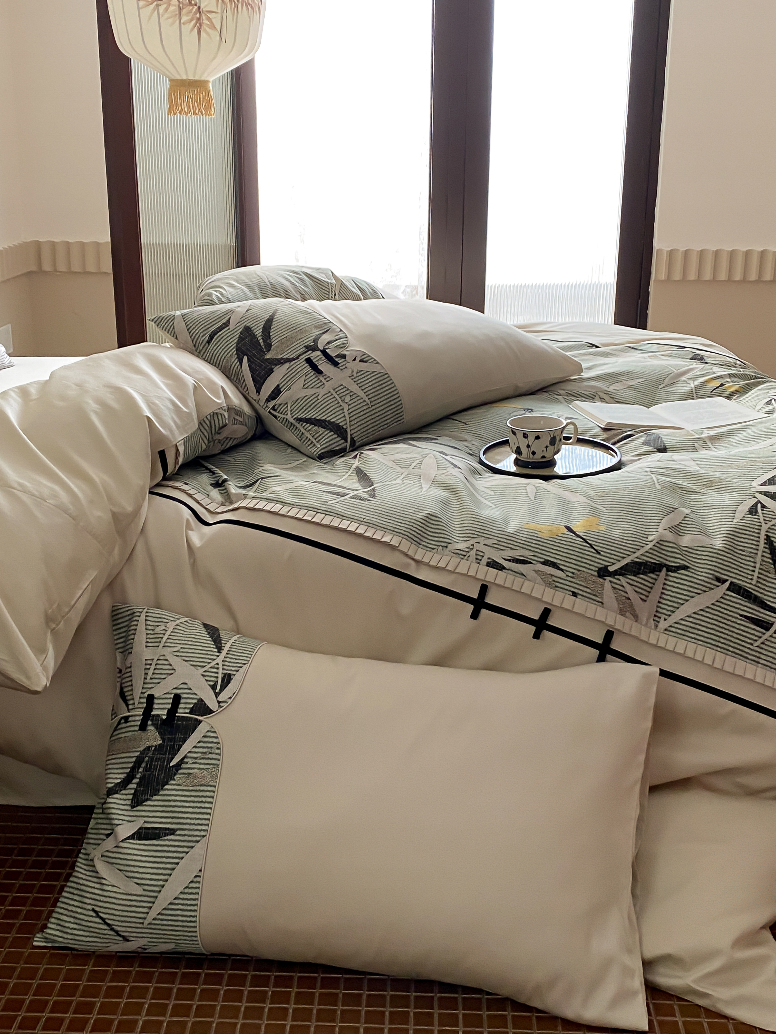 商品名称:赫帛 2024新款50s缎纹数码印花长绒棉四件套--竹韵系列 竹韵-绿色