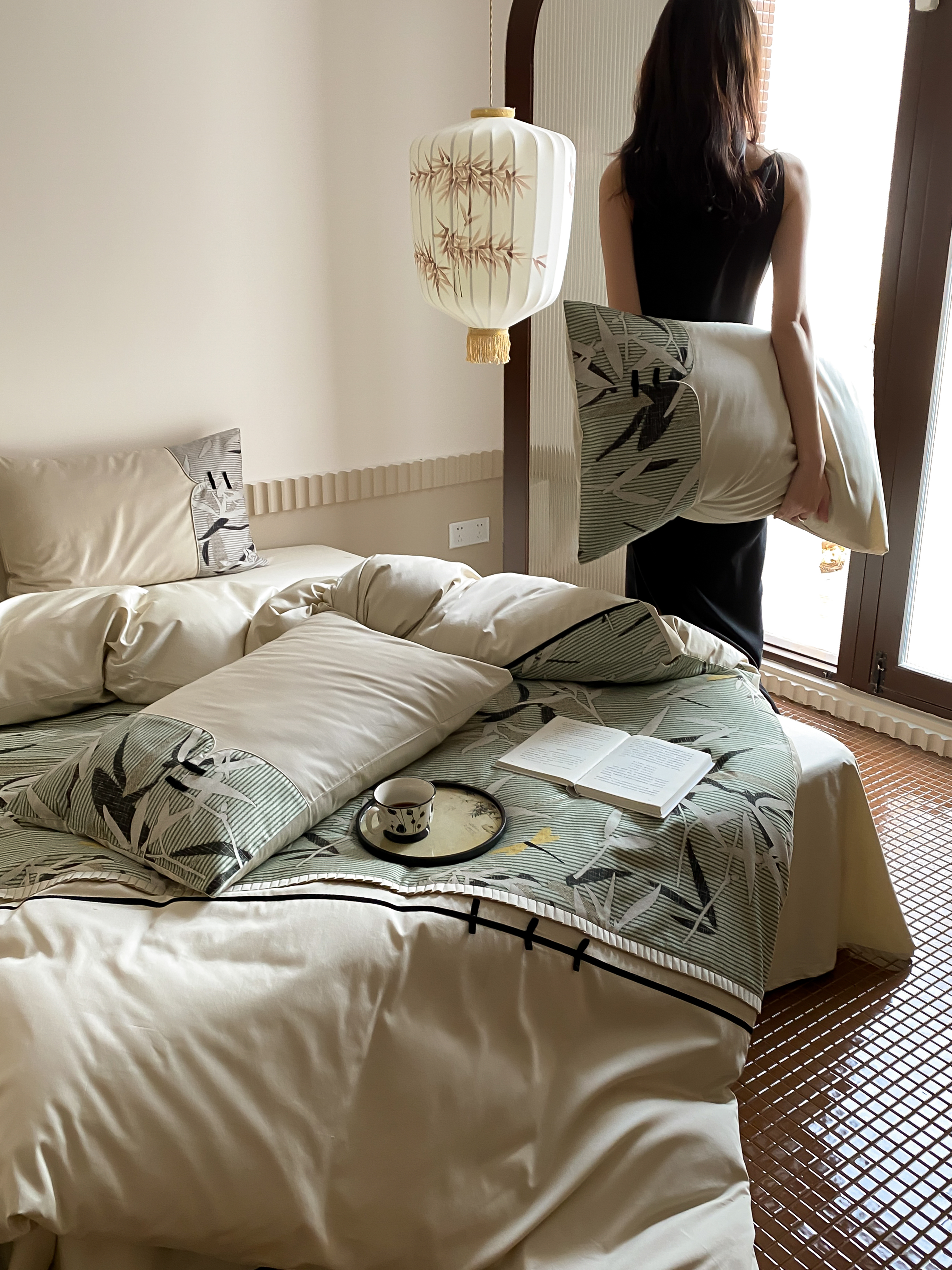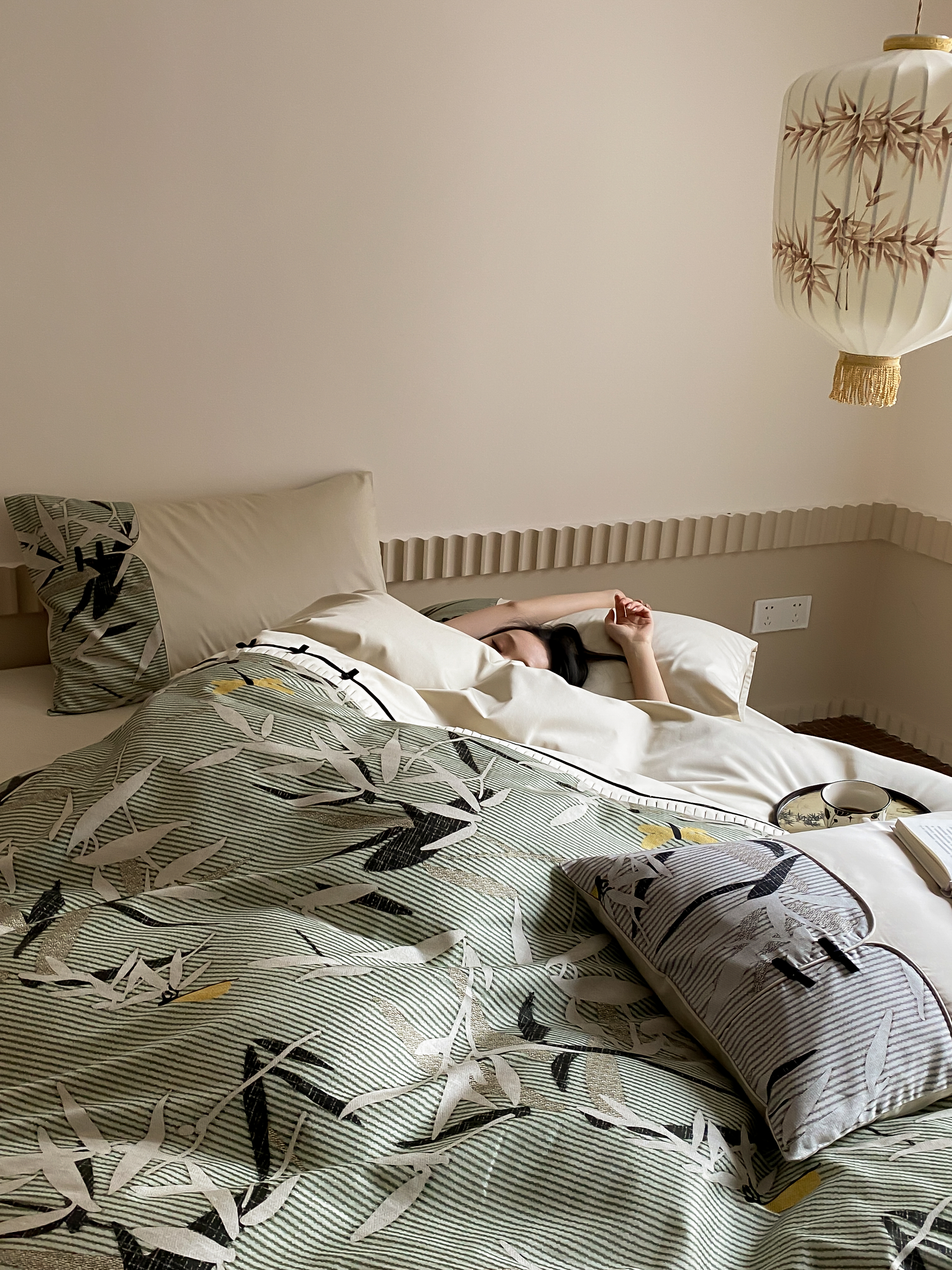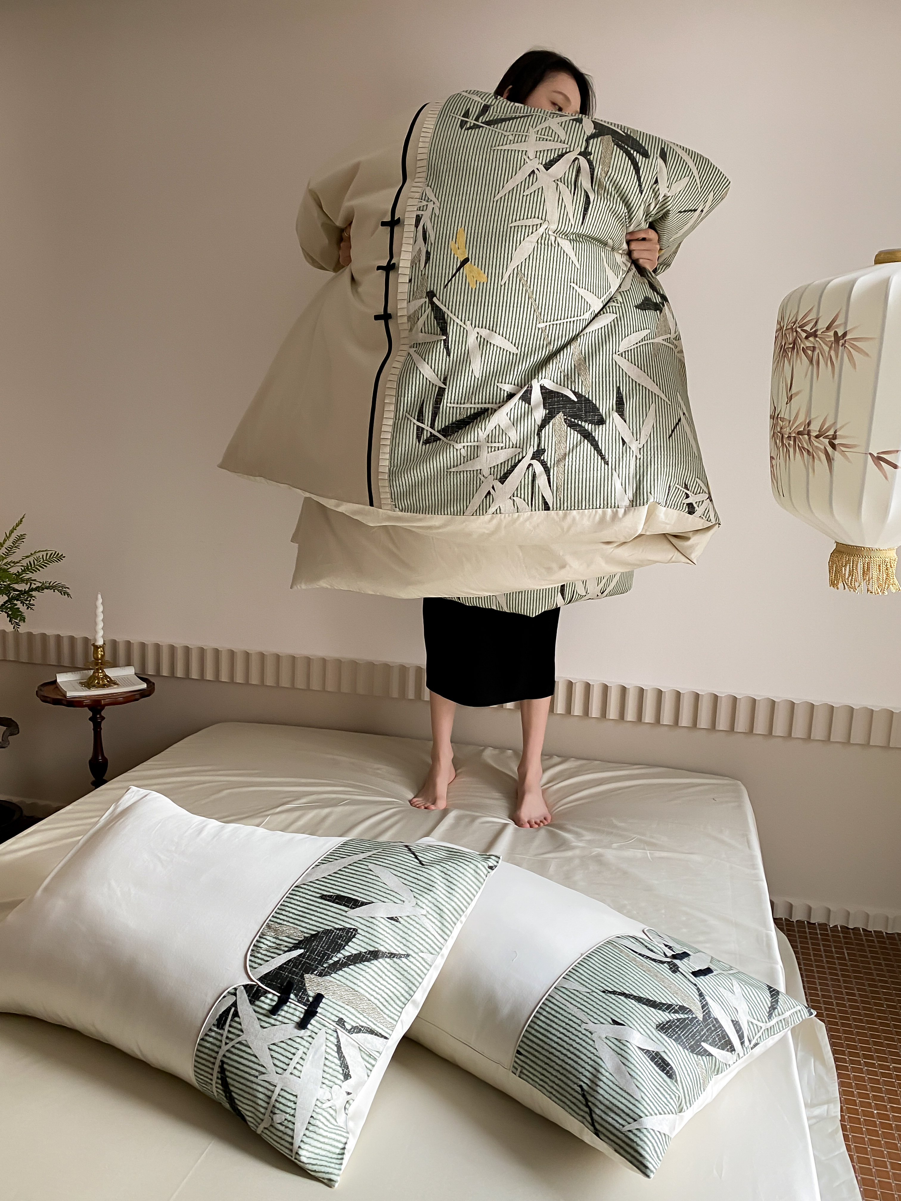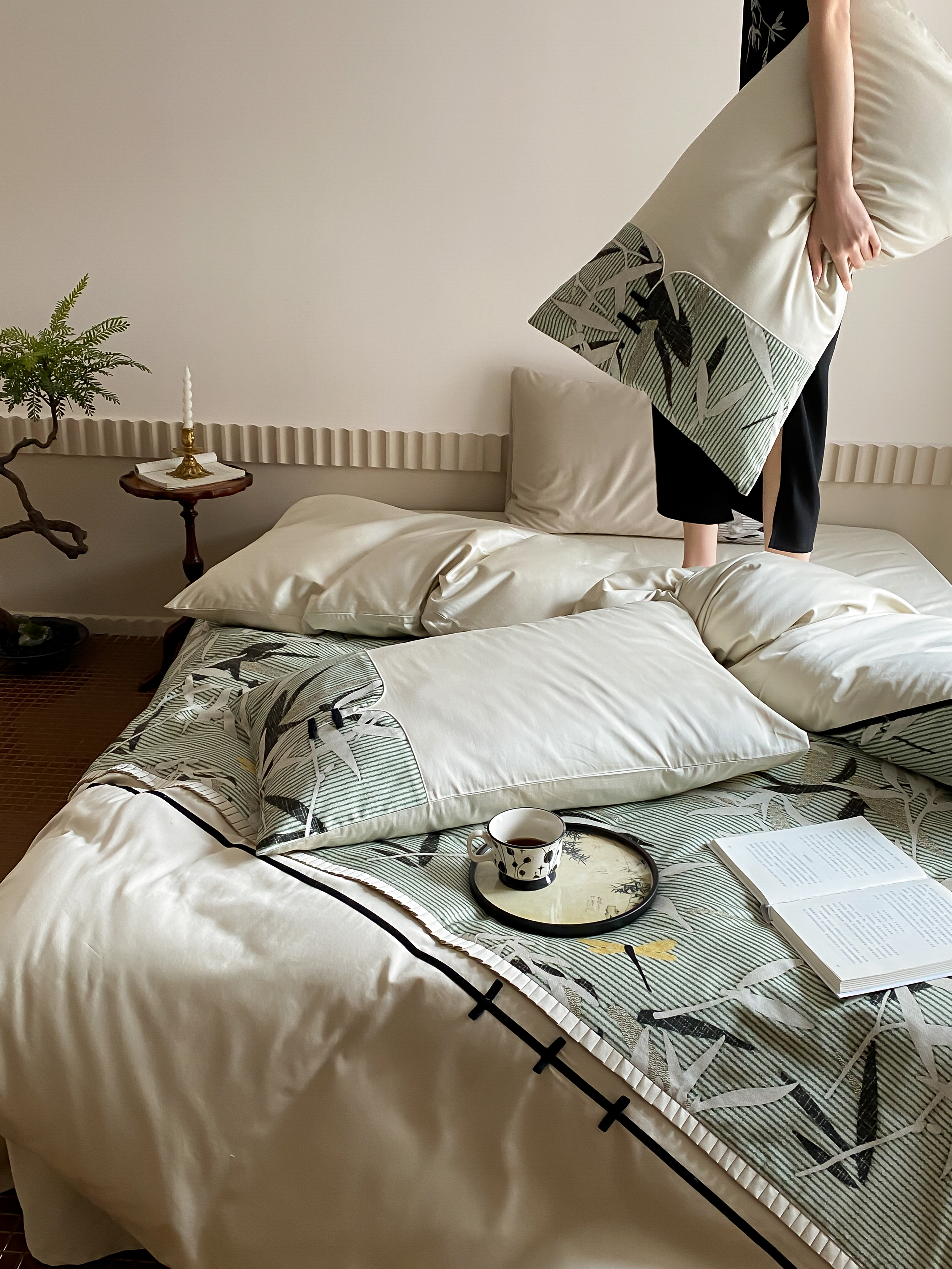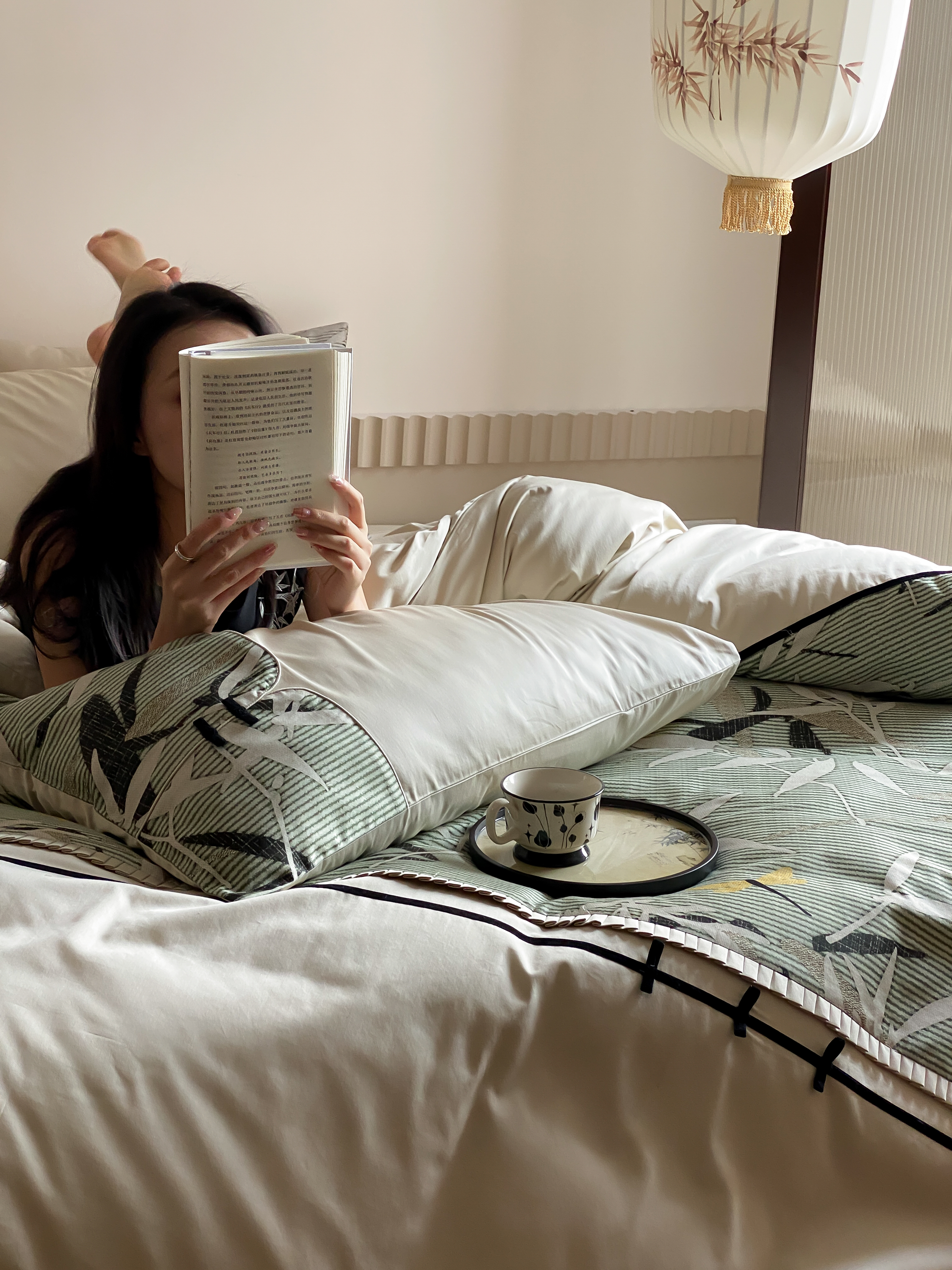 商品名称:赫帛 2024新款50s缎纹数码印花长绒棉四件套--竹韵系列 竹韵-绿色