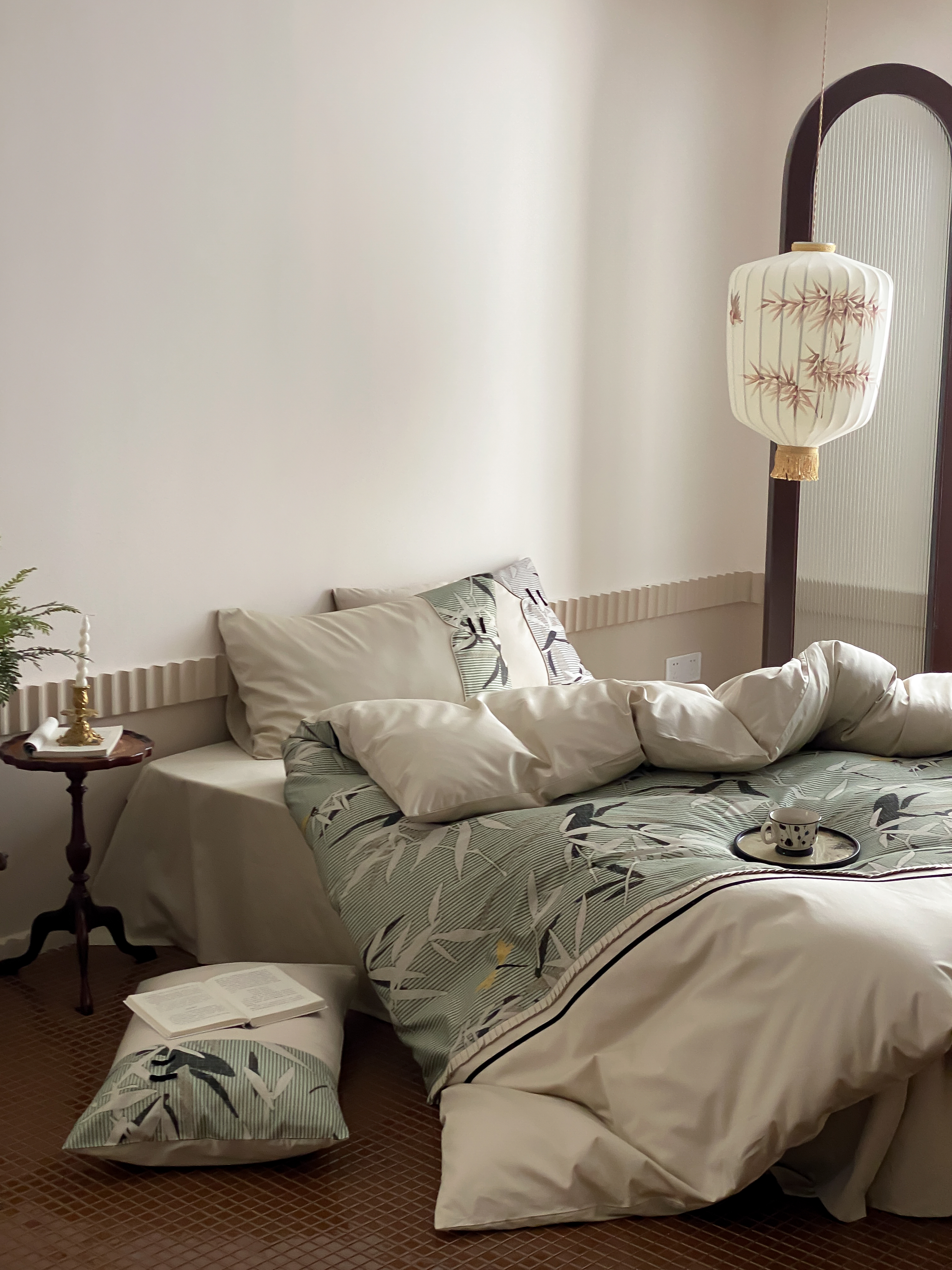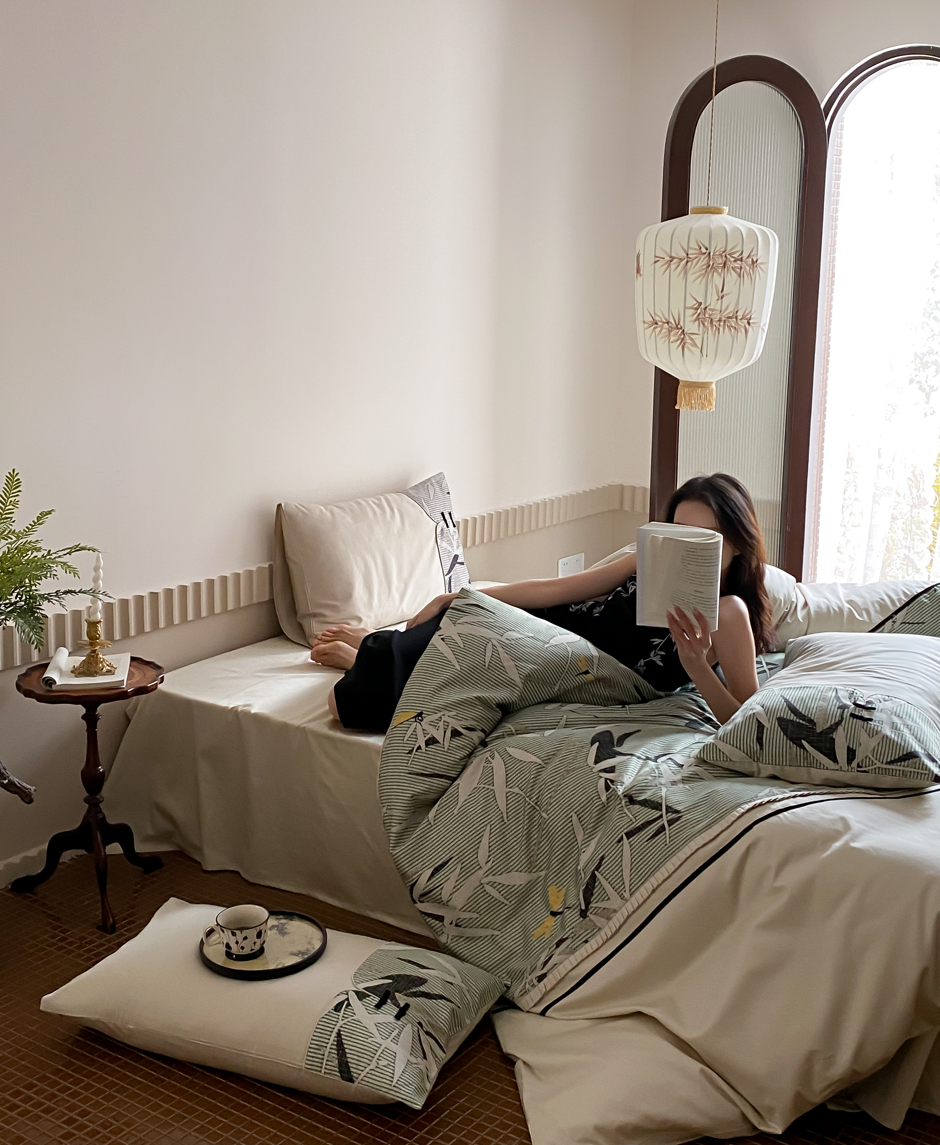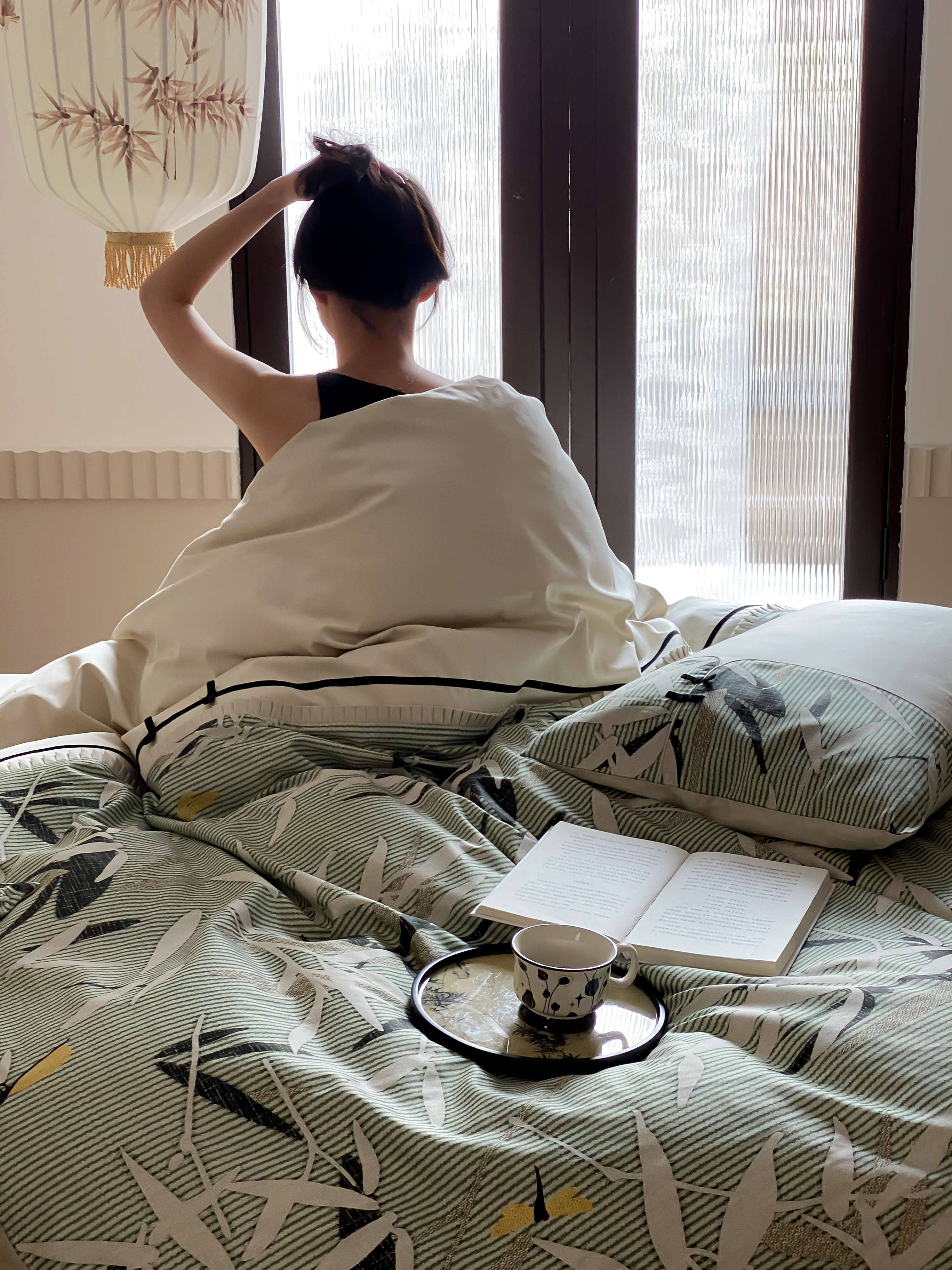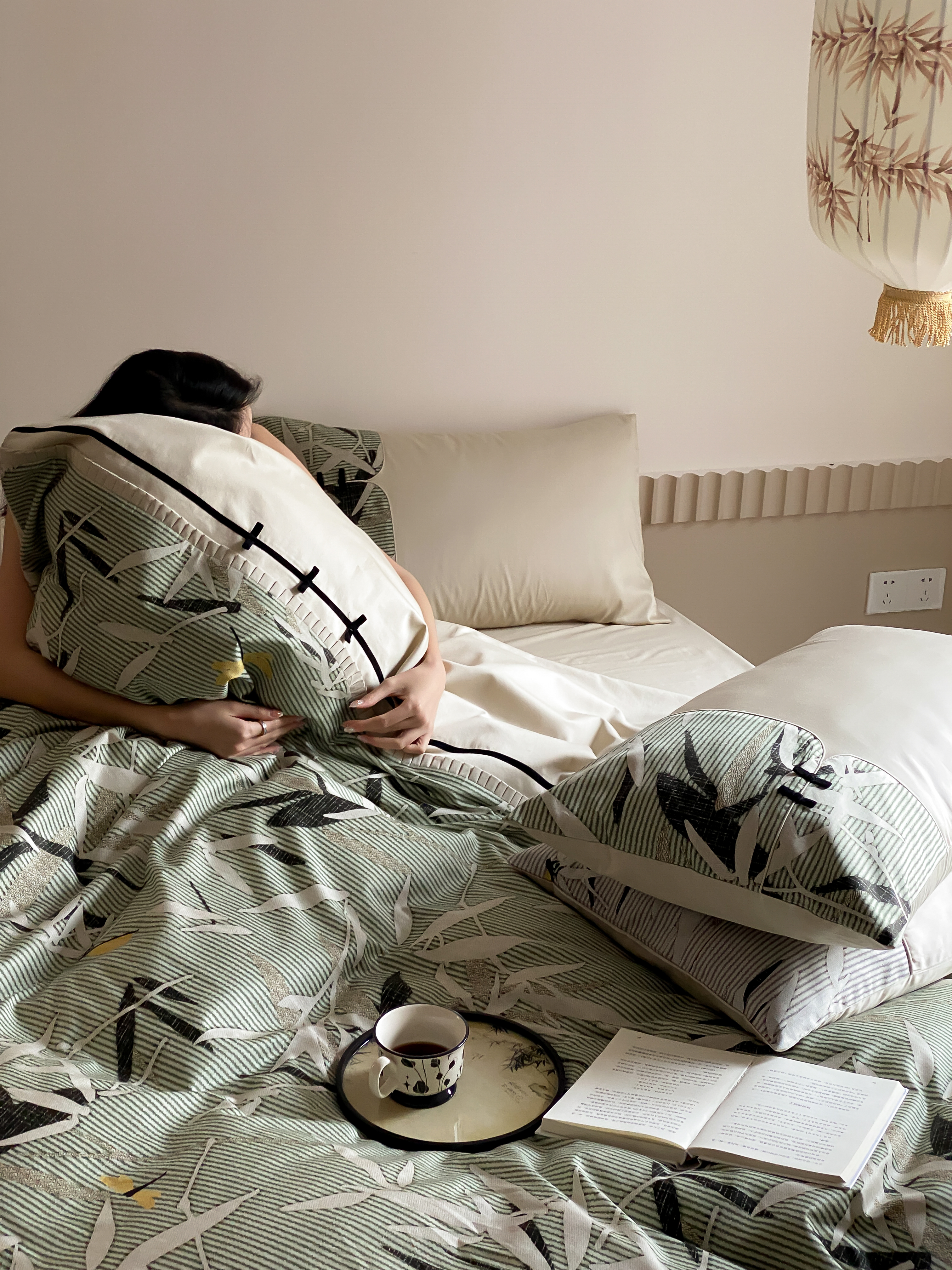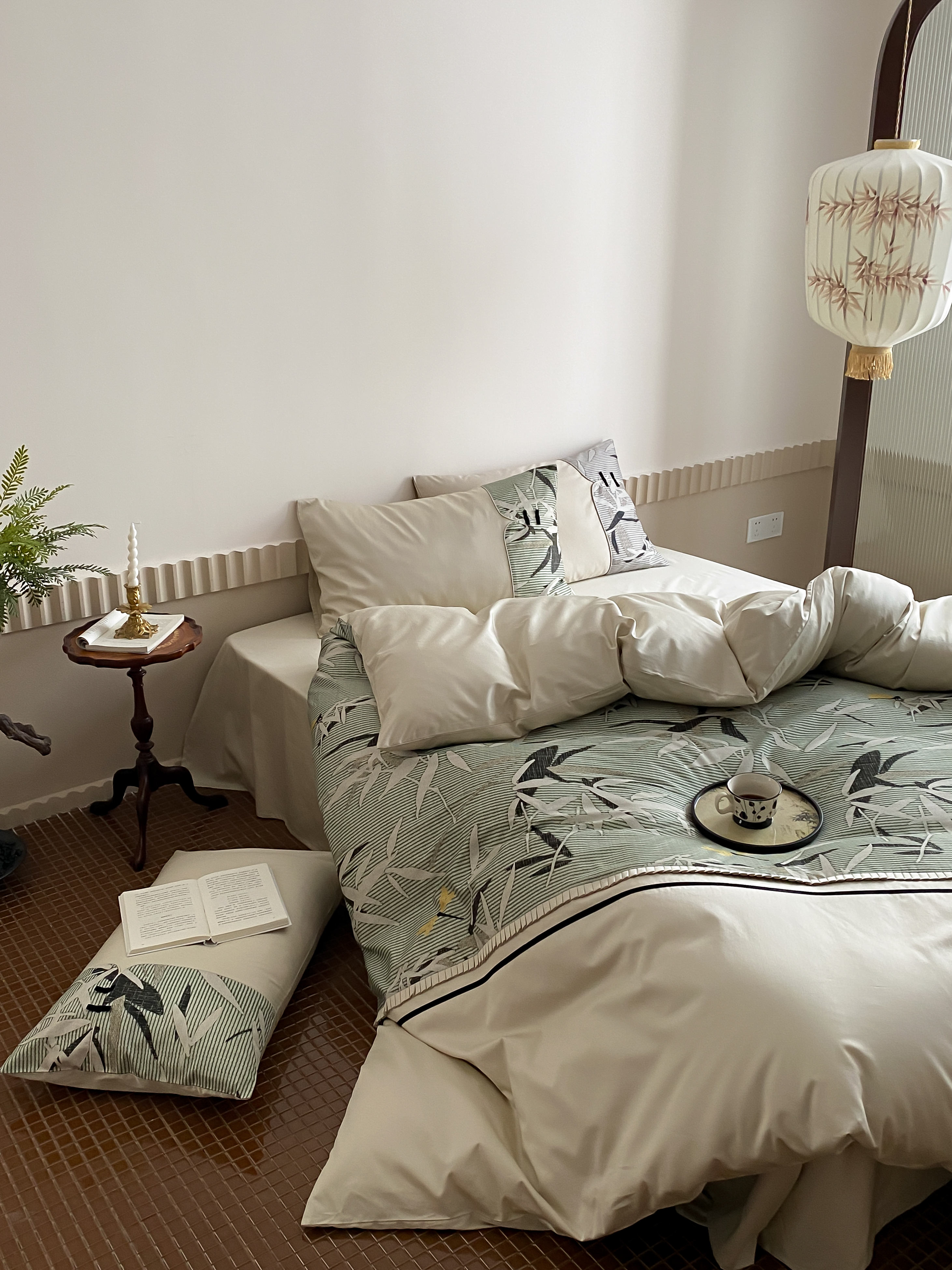 商品名称:赫帛 2024新款50s缎纹数码印花长绒棉四件套--竹韵系列 竹韵-绿色