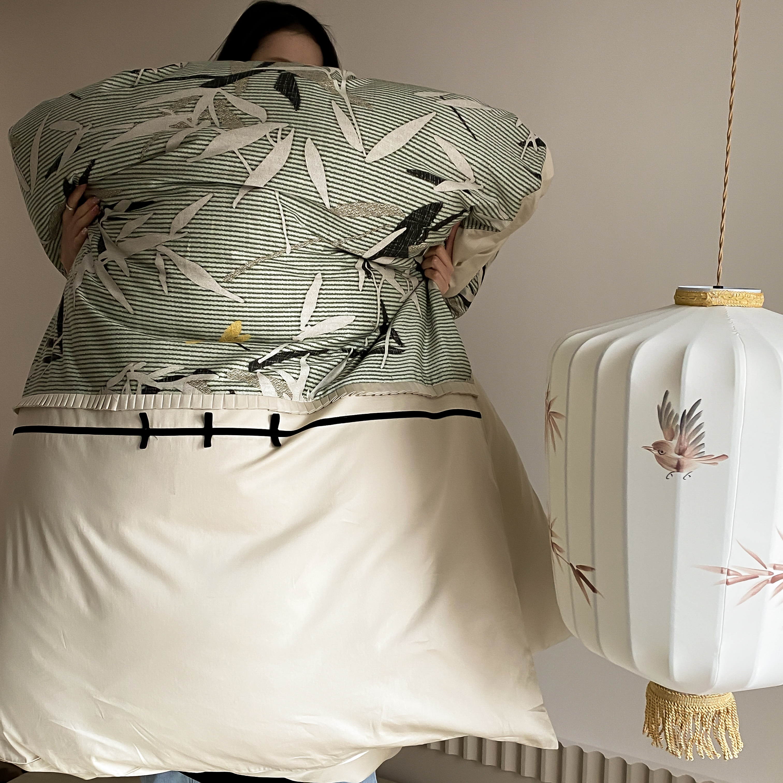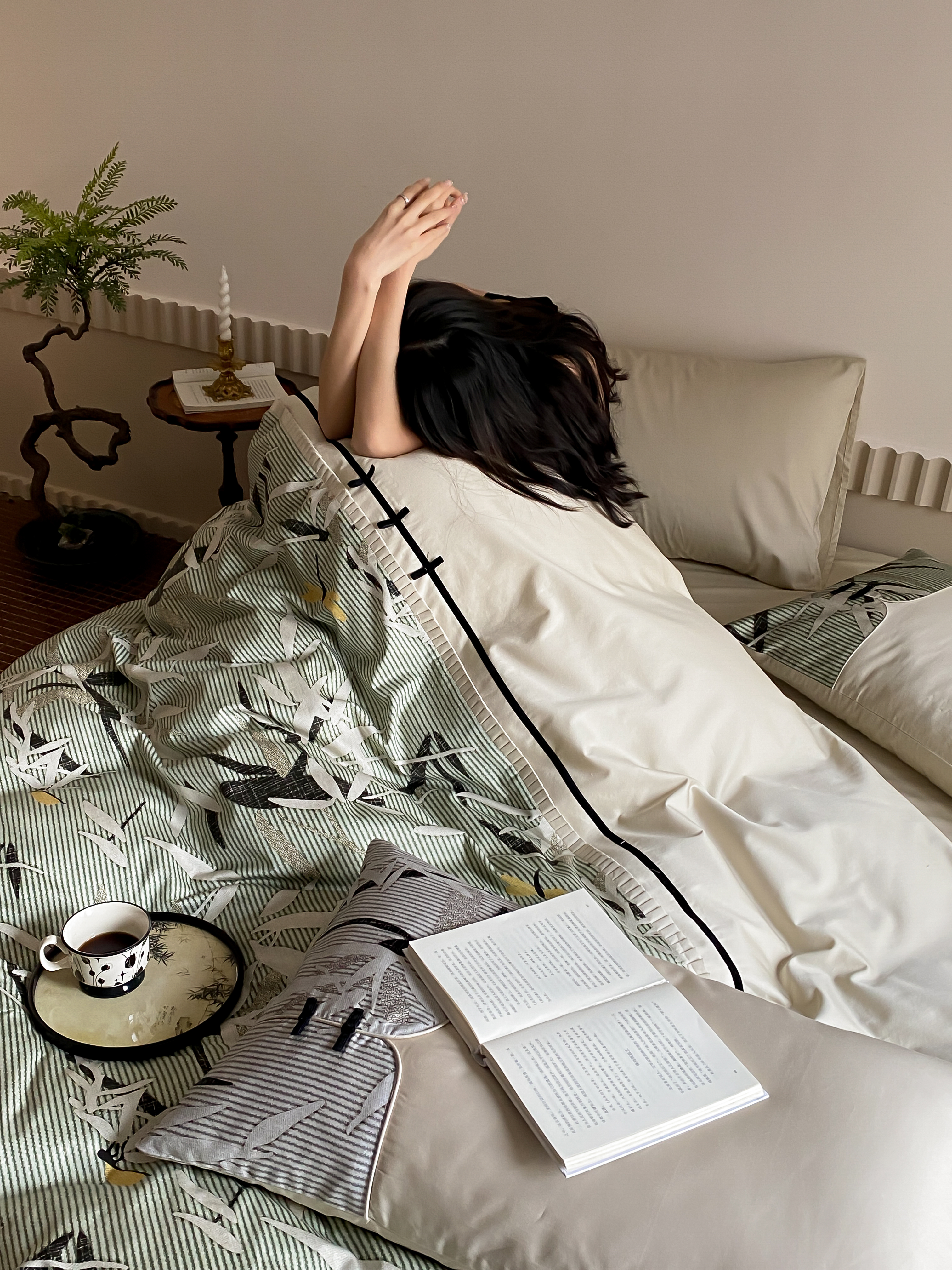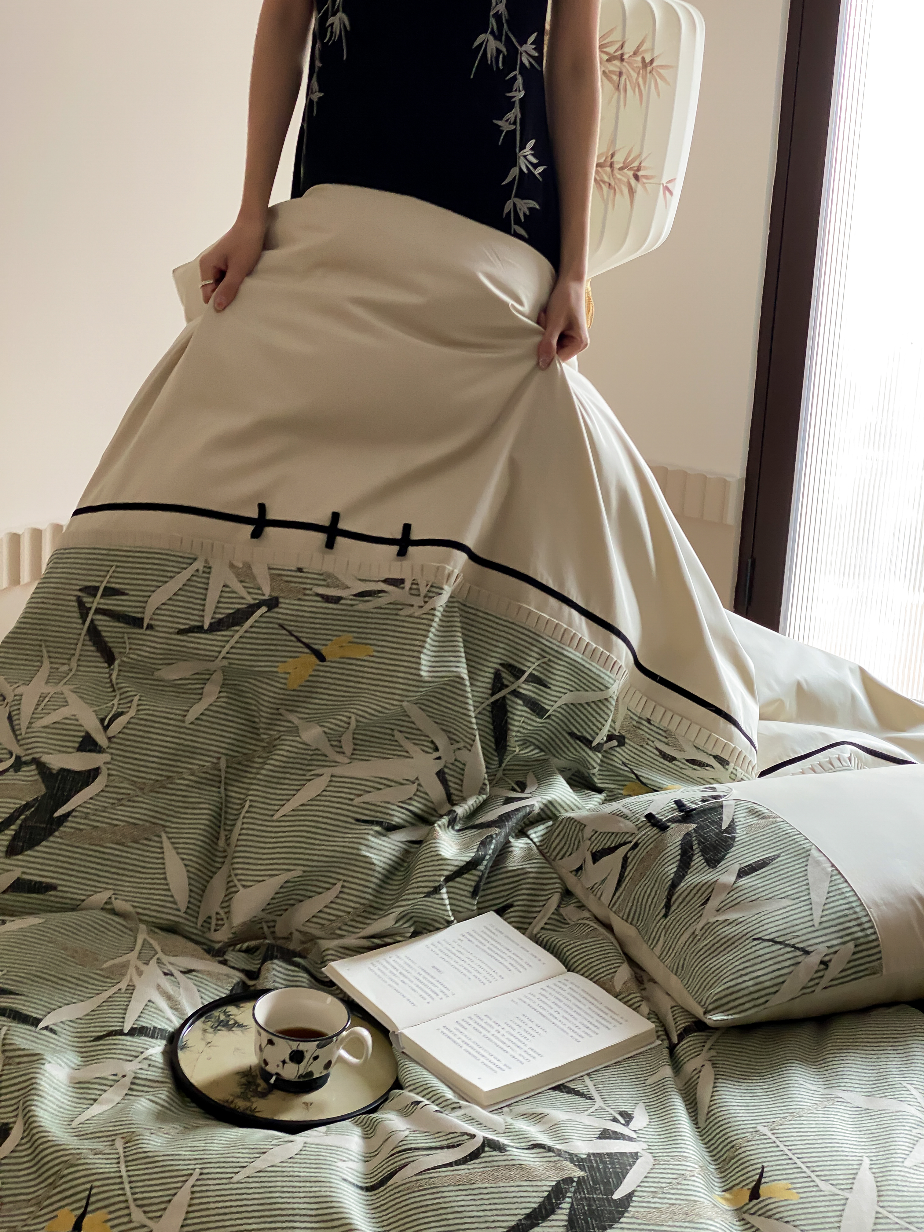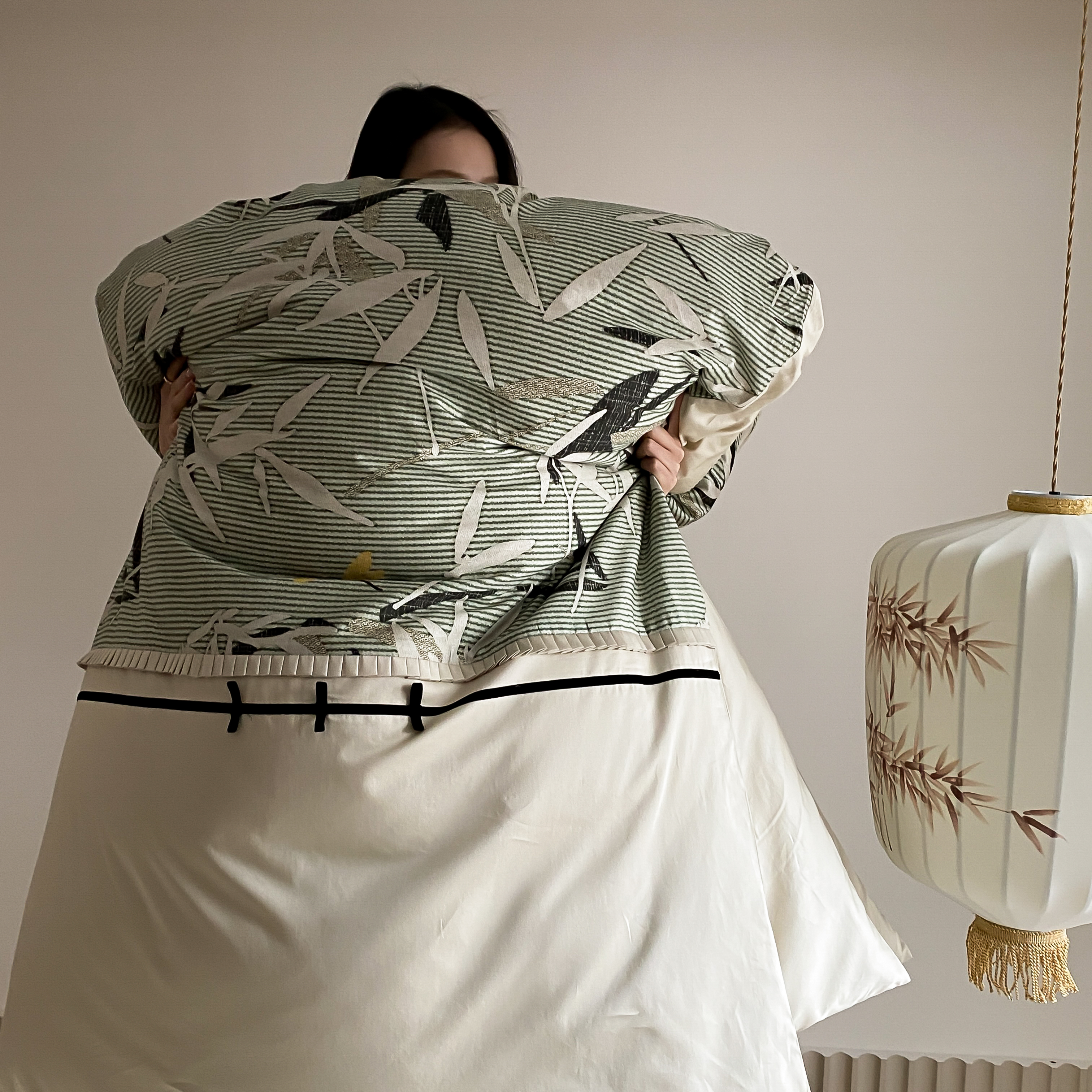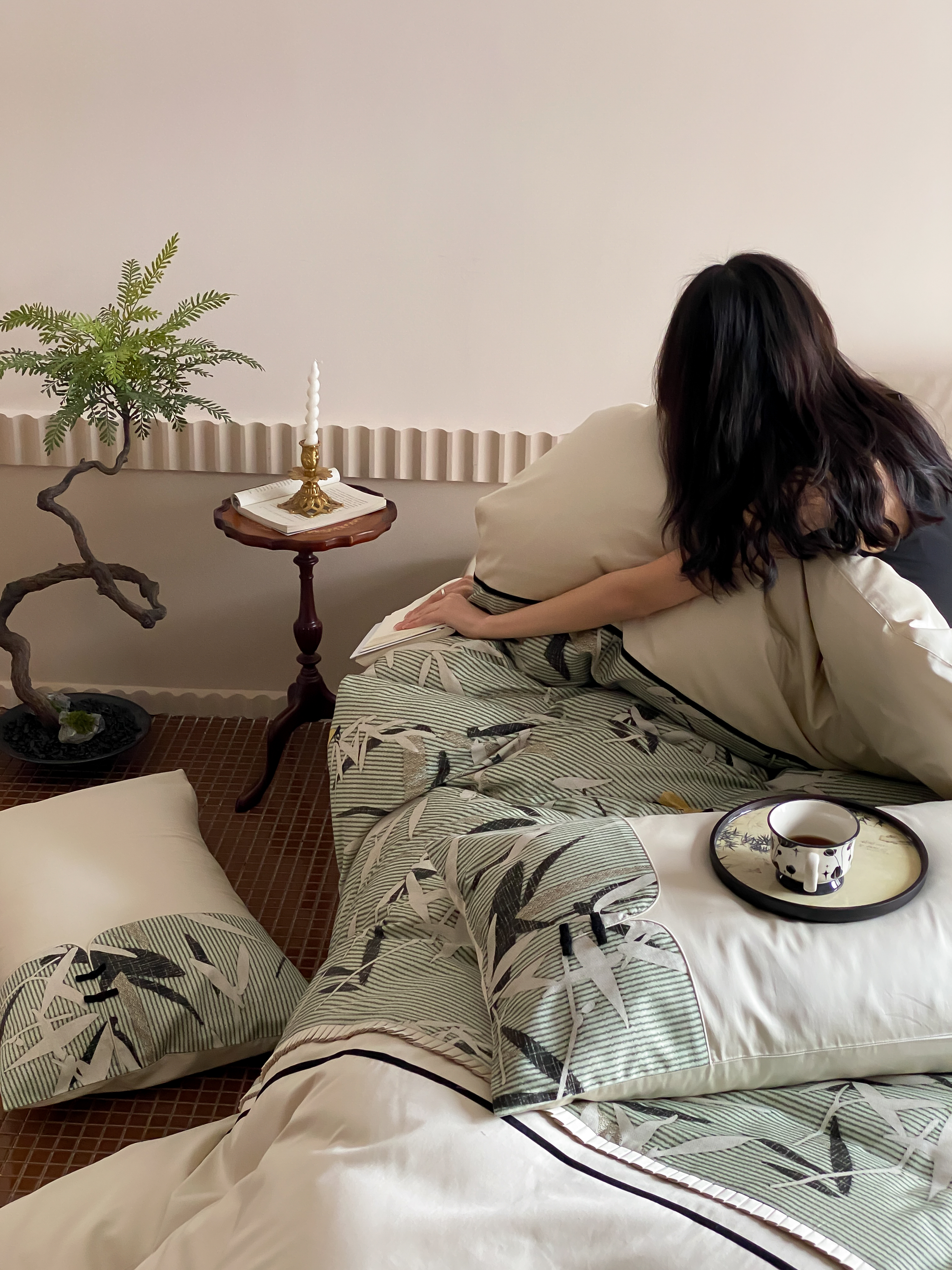 商品名称:赫帛 2024新款50s缎纹数码印花长绒棉四件套--竹韵系列 竹韵-绿色