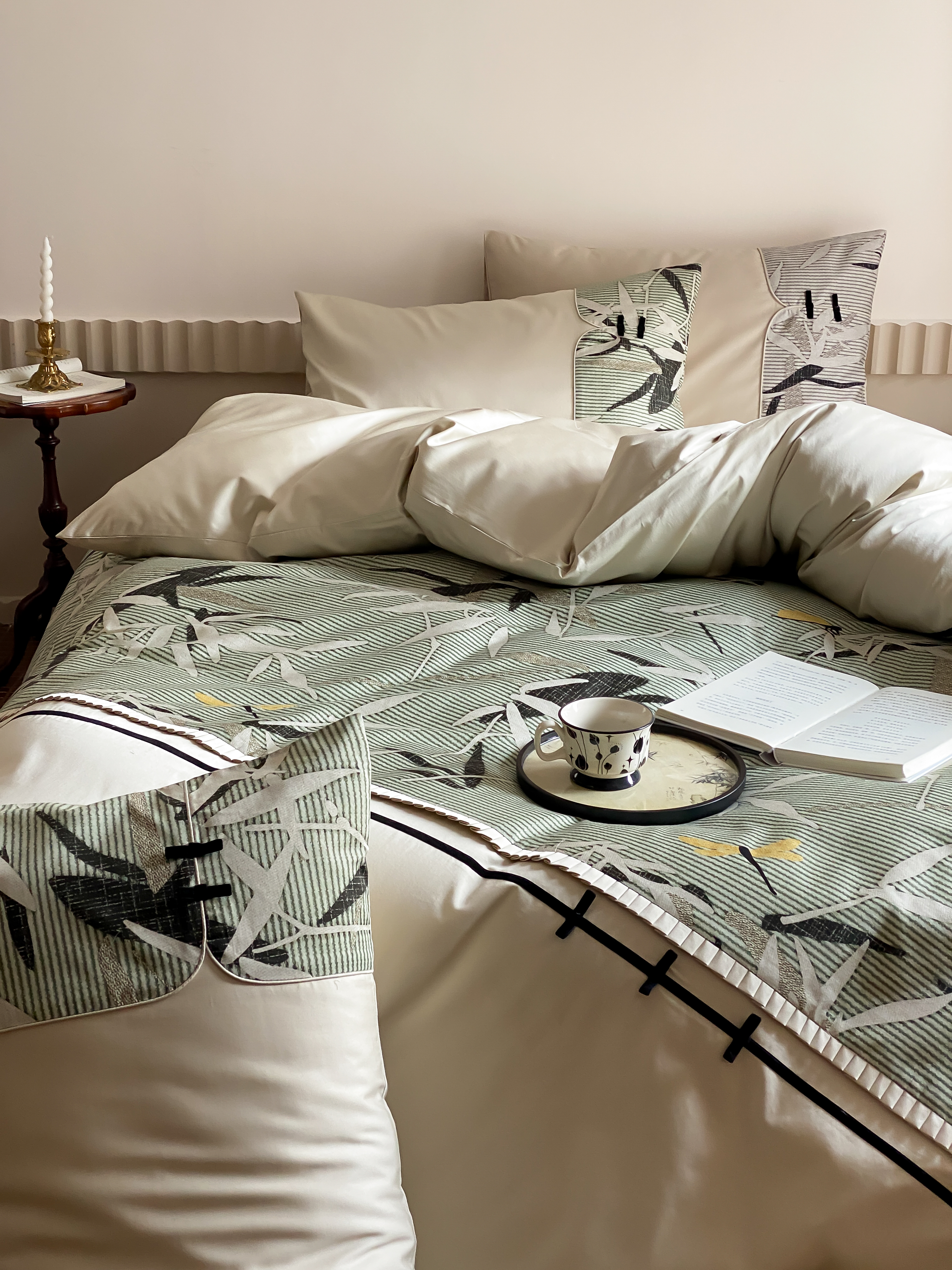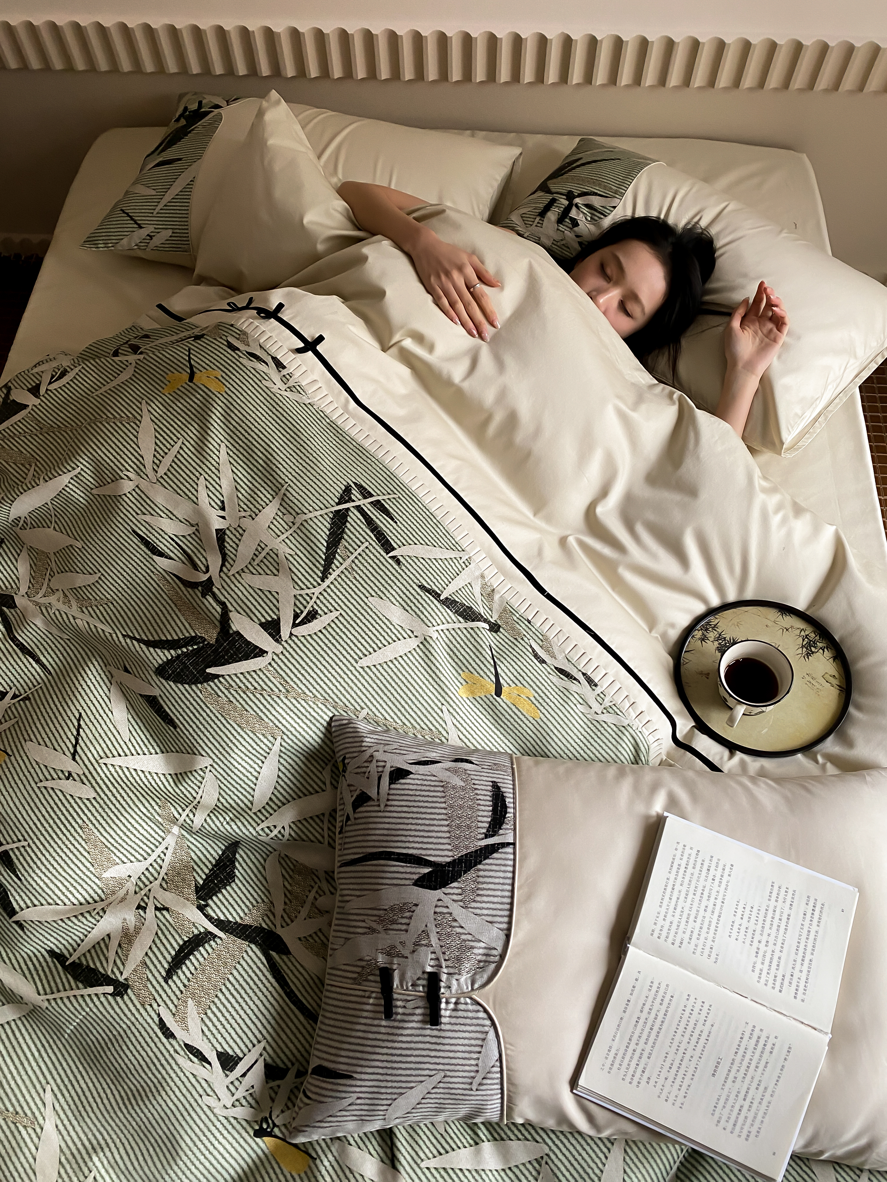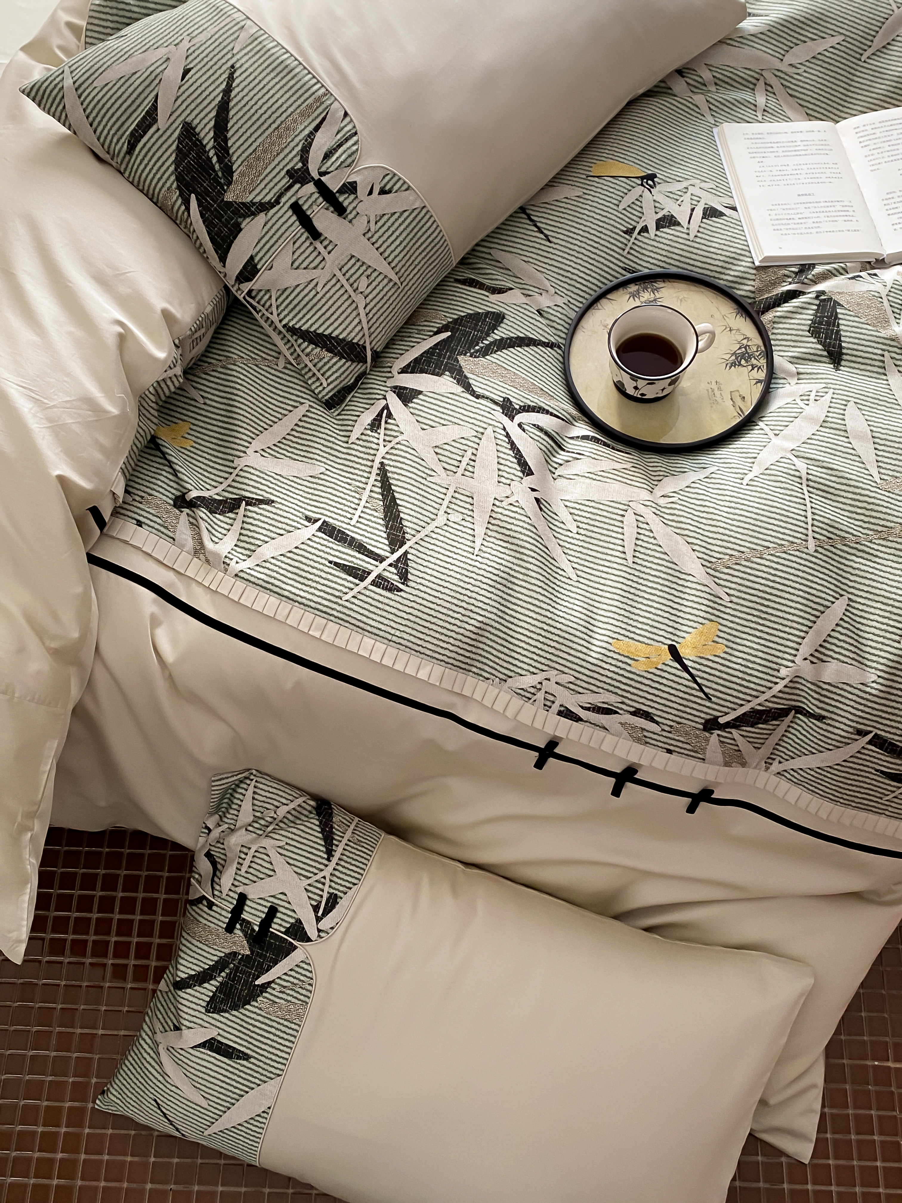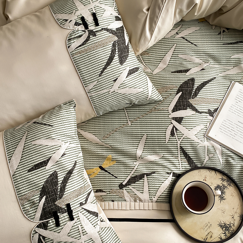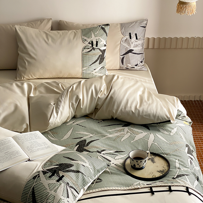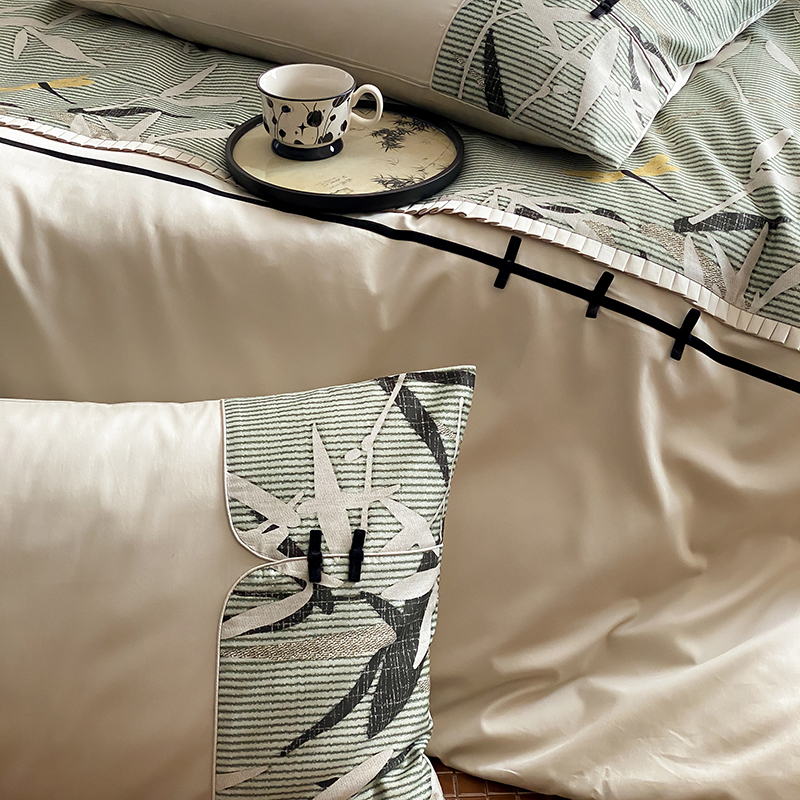 赫帛 2024新款50s缎纹数码印花长绒棉四件套--竹韵系列 竹韵-绿色