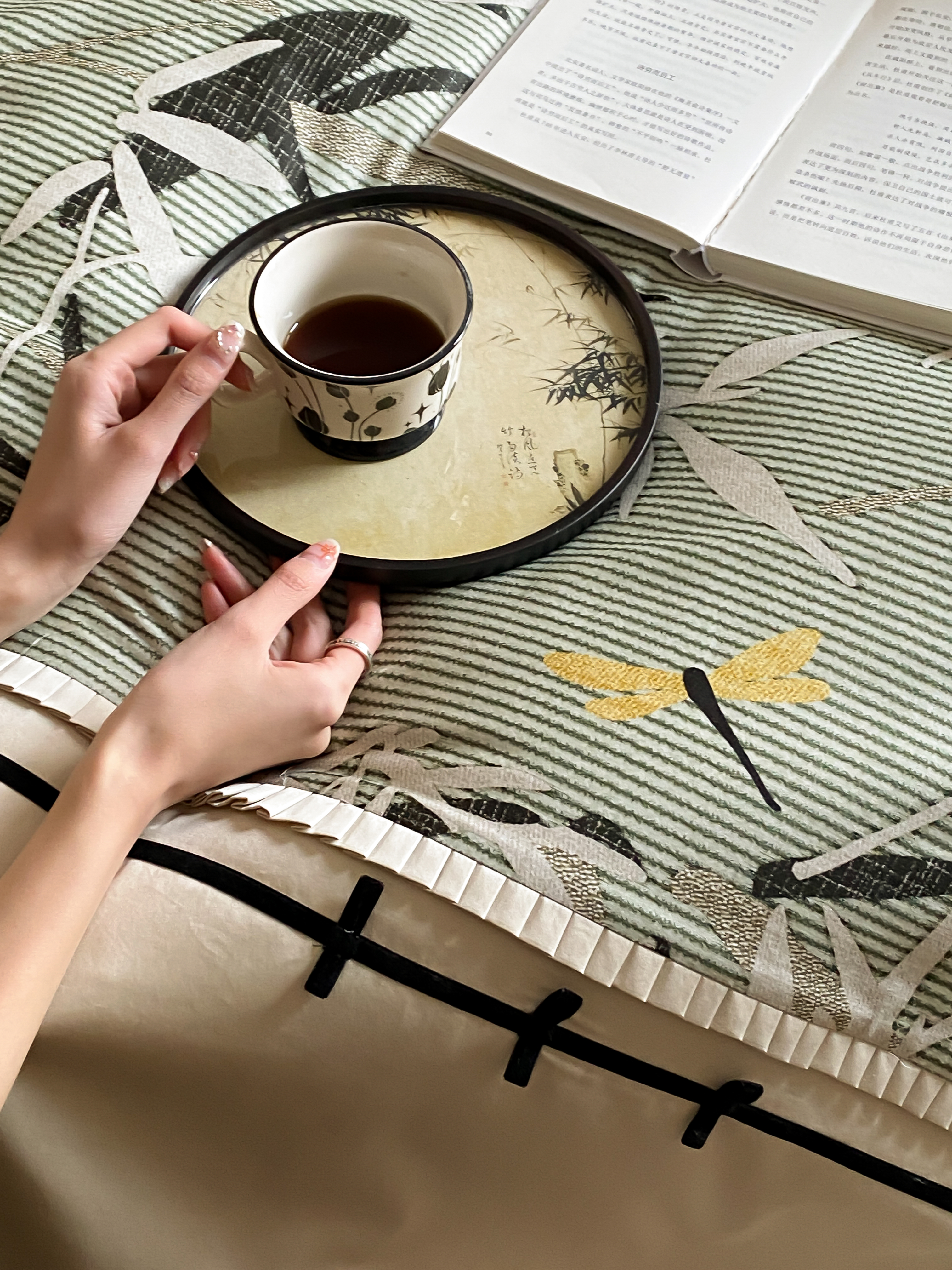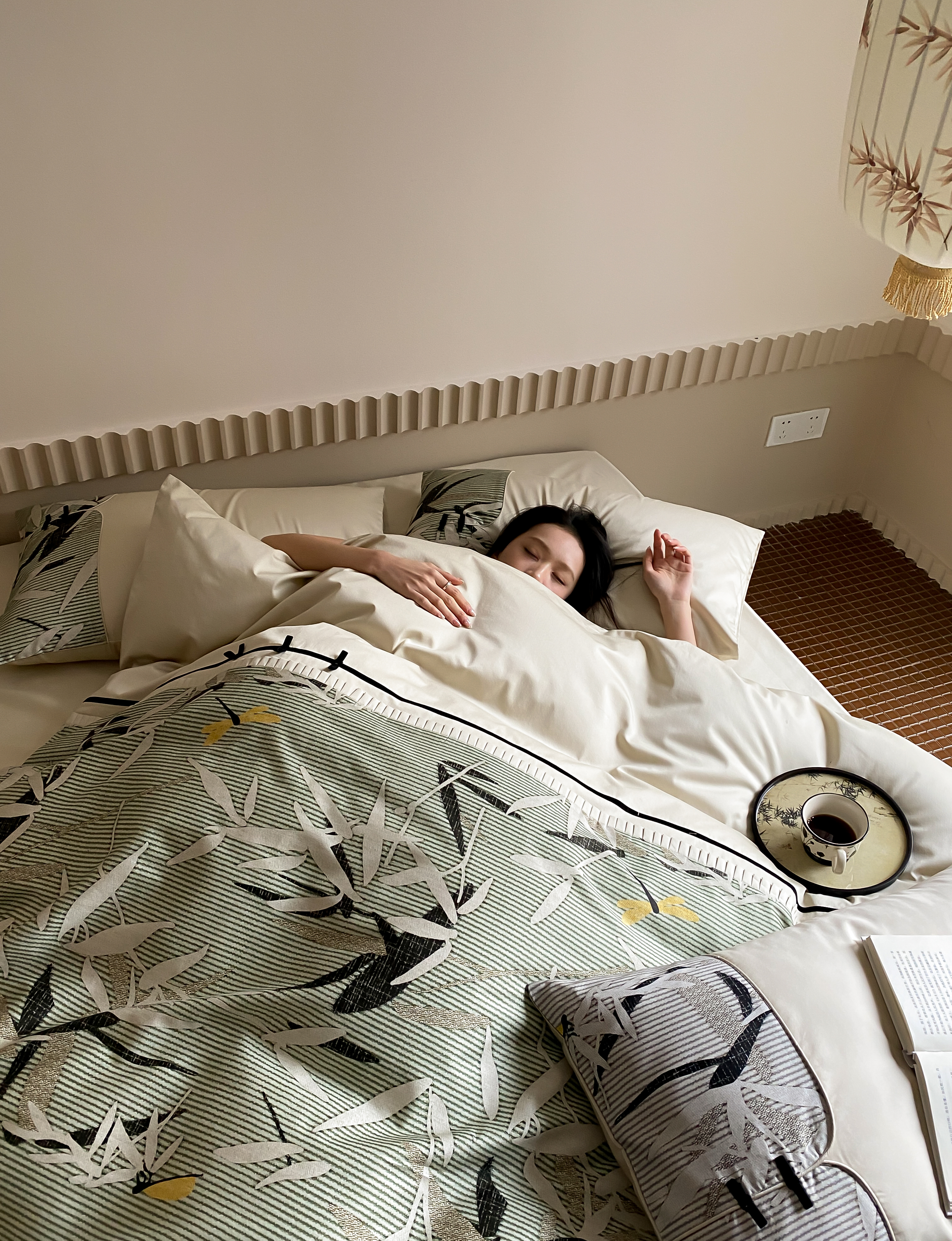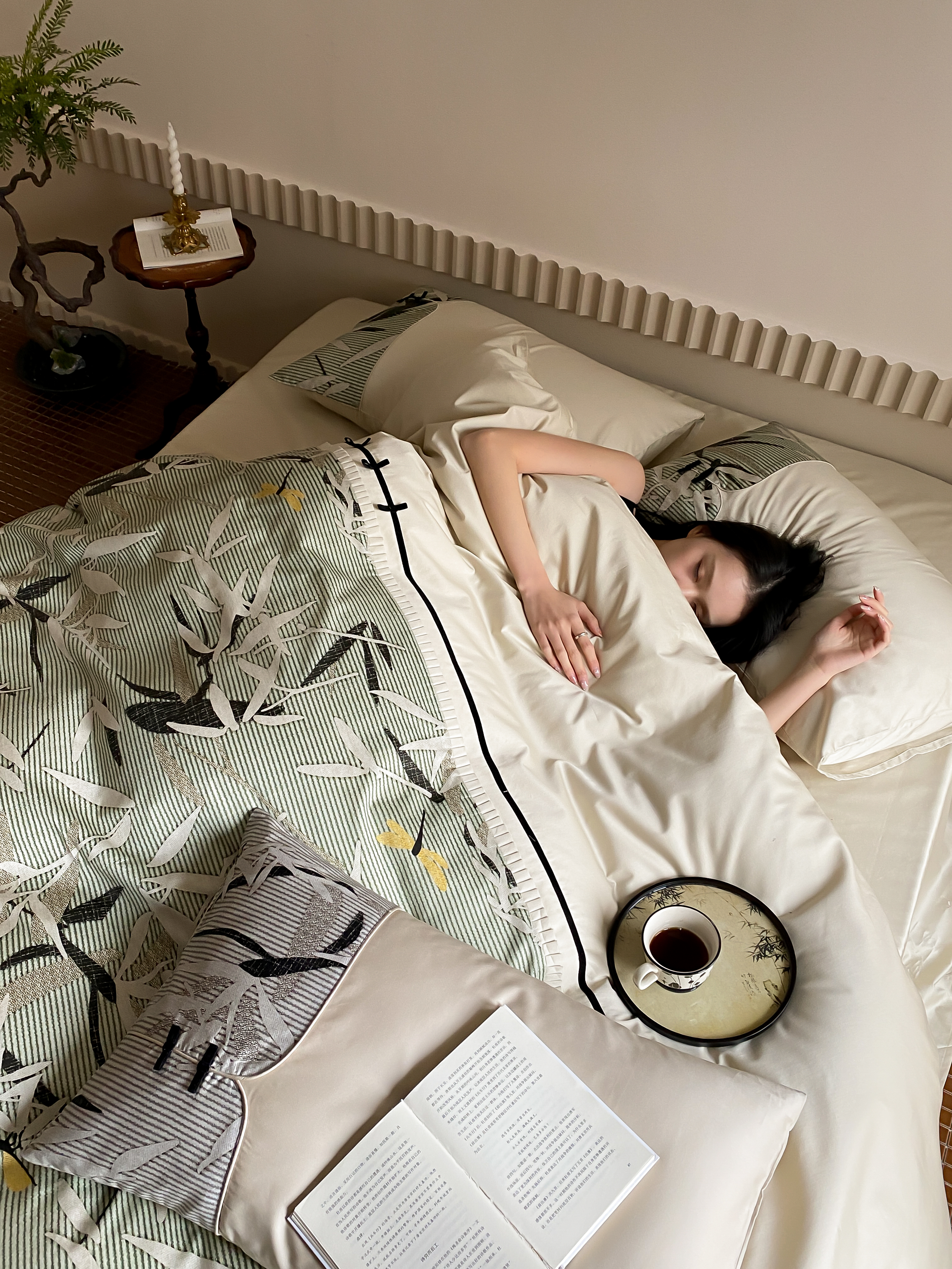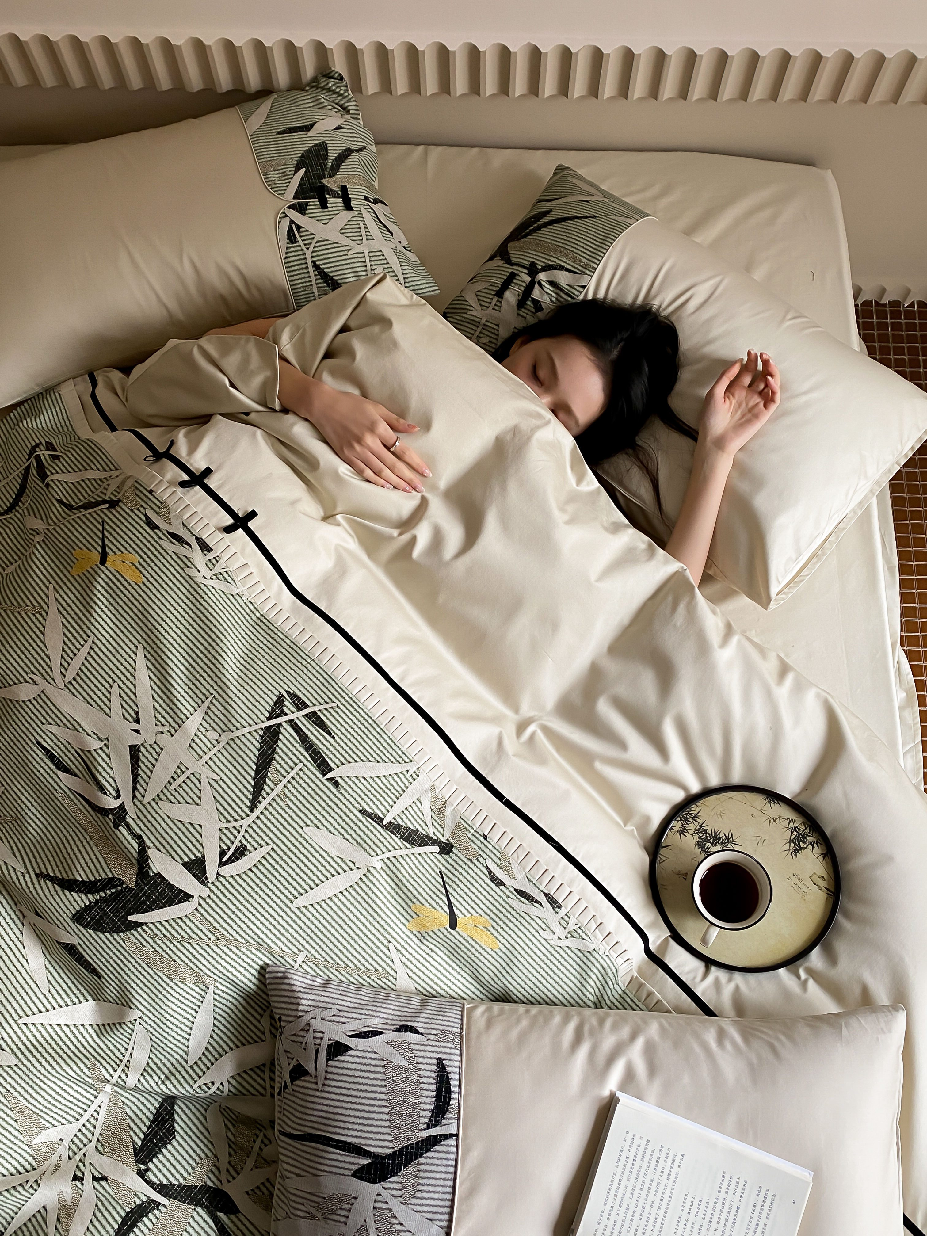 赫帛 2024新款50s缎纹数码印花长绒棉四件套--竹韵系列 竹韵-绿色
