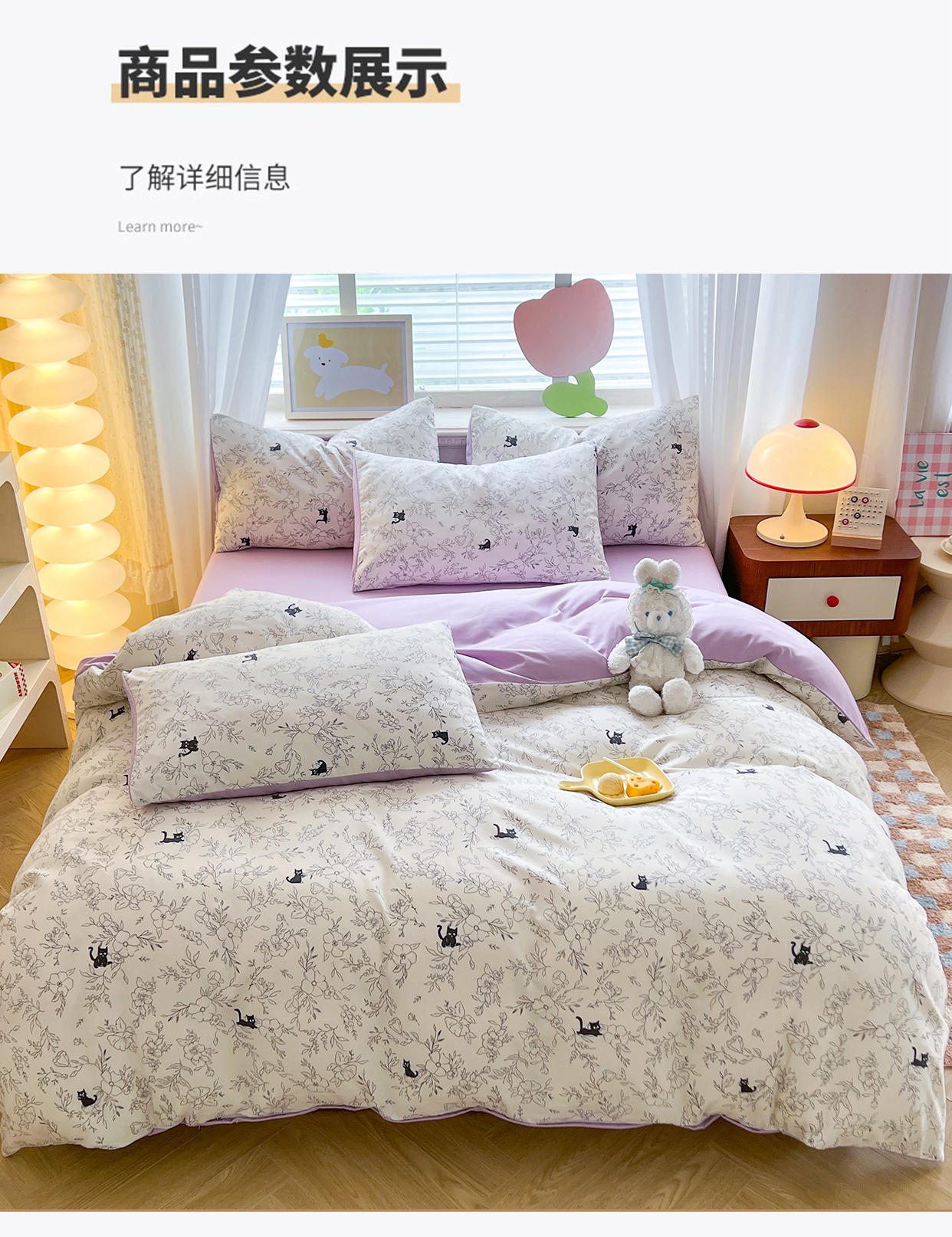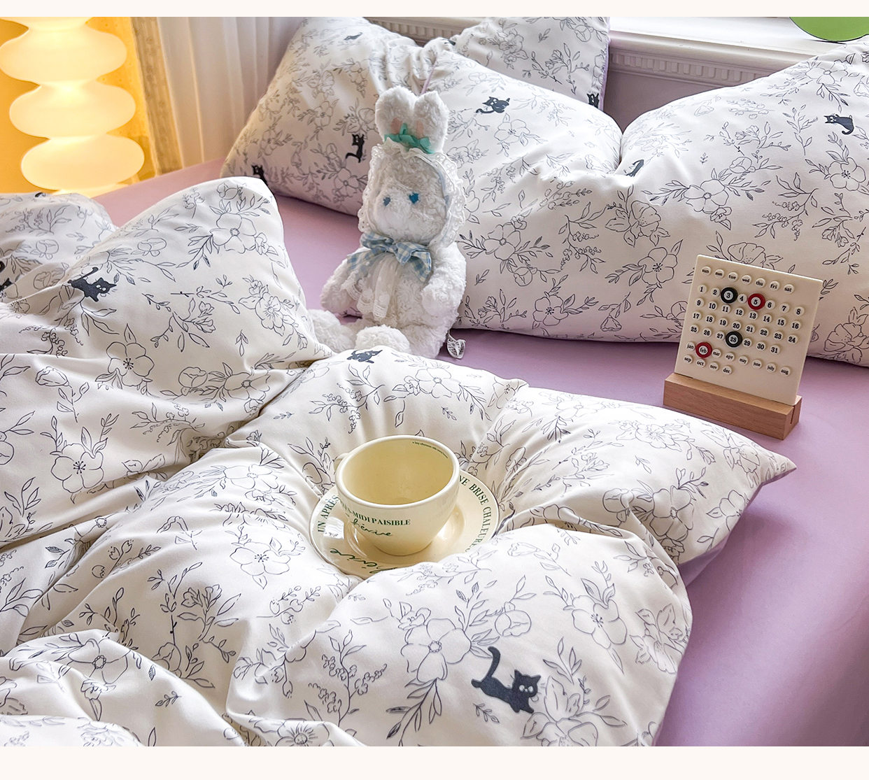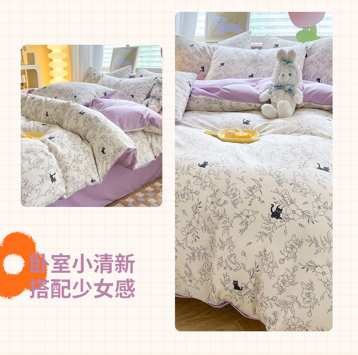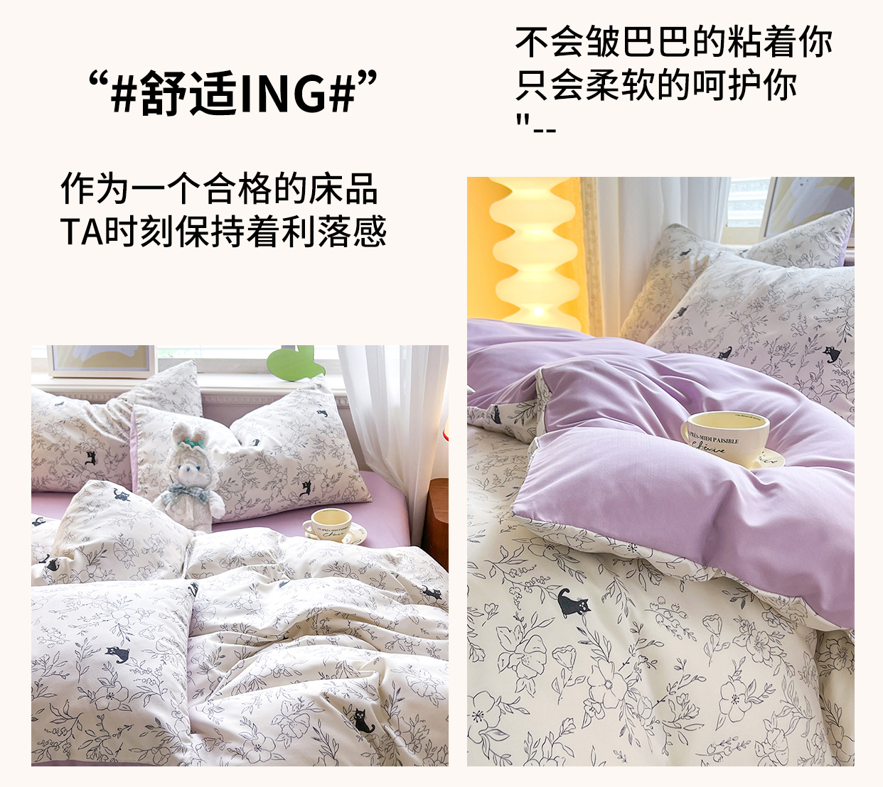 当前位置: 91家纺网 > 商品网购 > 床品套件 > 四件套 > 水洗棉四件套 > 妖妖家纺 2024新款超柔软糯水洗云朵棉印花四季款四件套猫咪日记