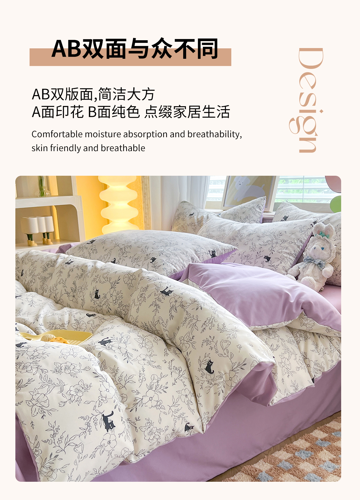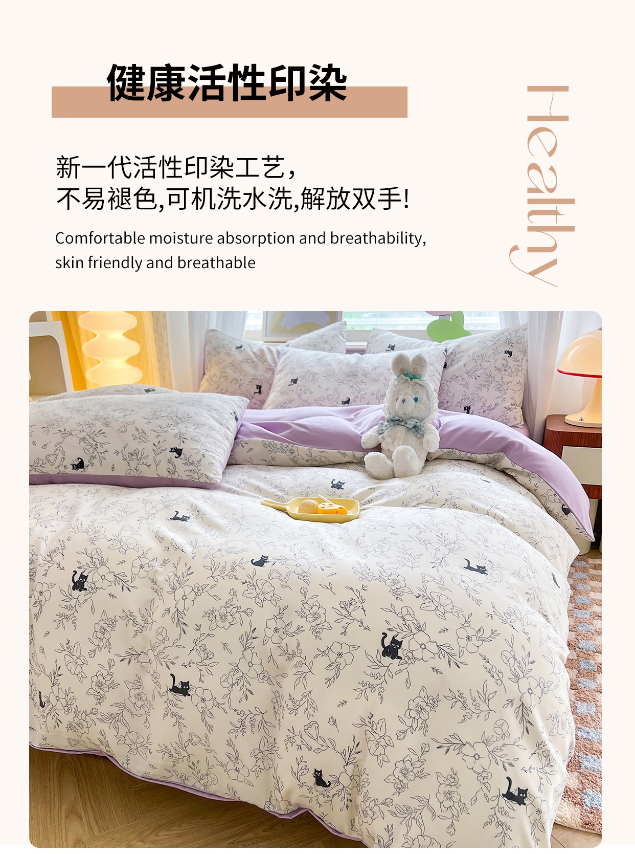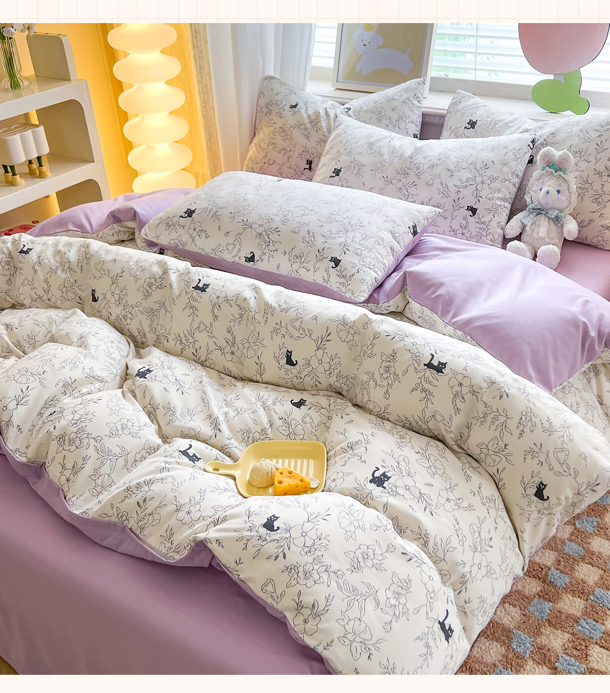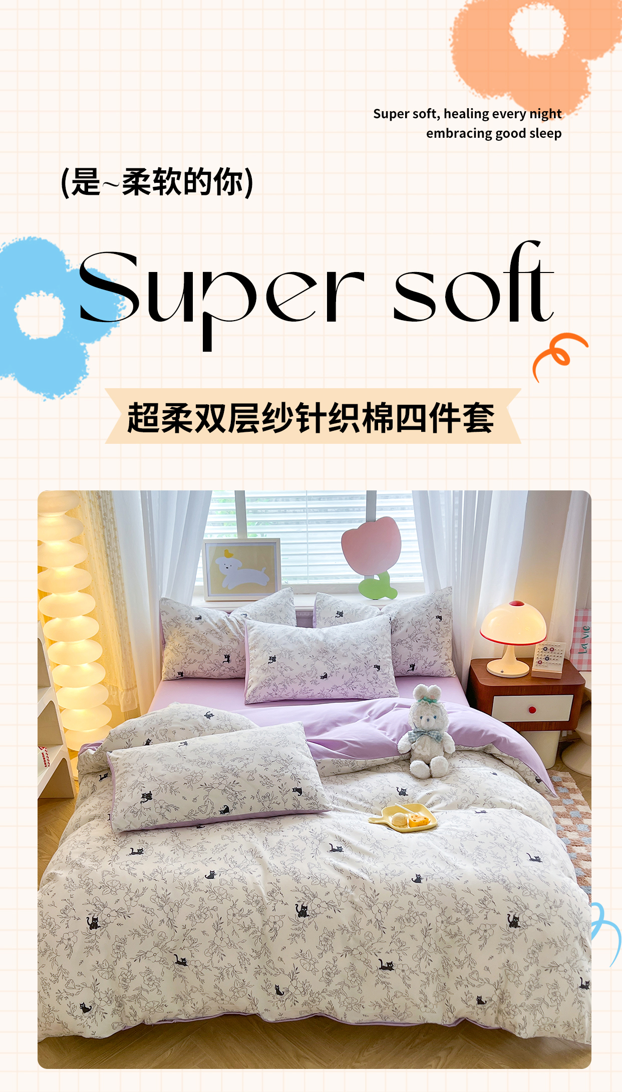 当前位置: 91家纺网 > 商品网购 > 床品套件 > 四件套 > 水洗棉四件套 > 妖妖家纺 2024新款超柔软糯水洗云朵棉印花四季款四件套猫咪日记