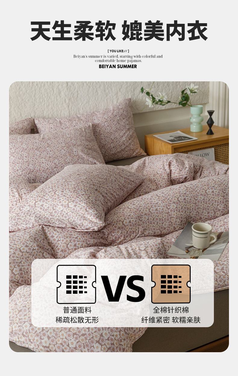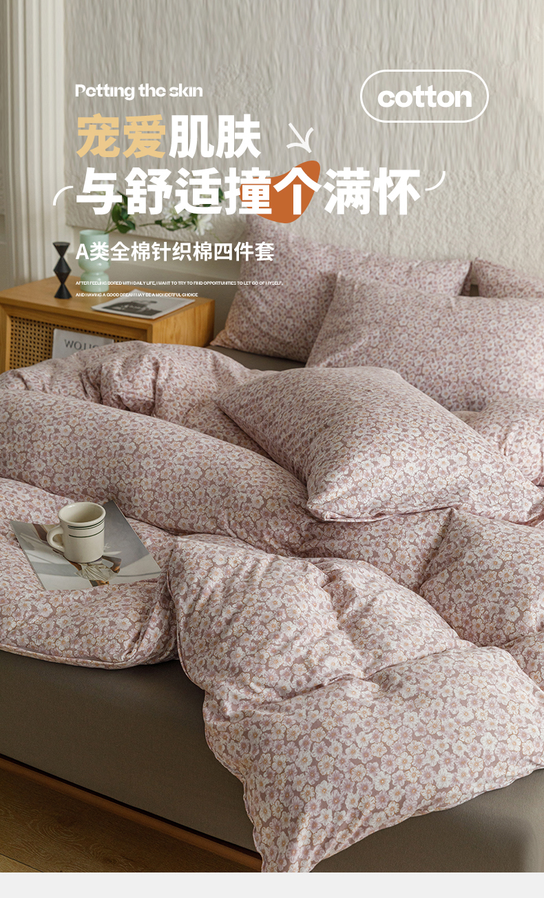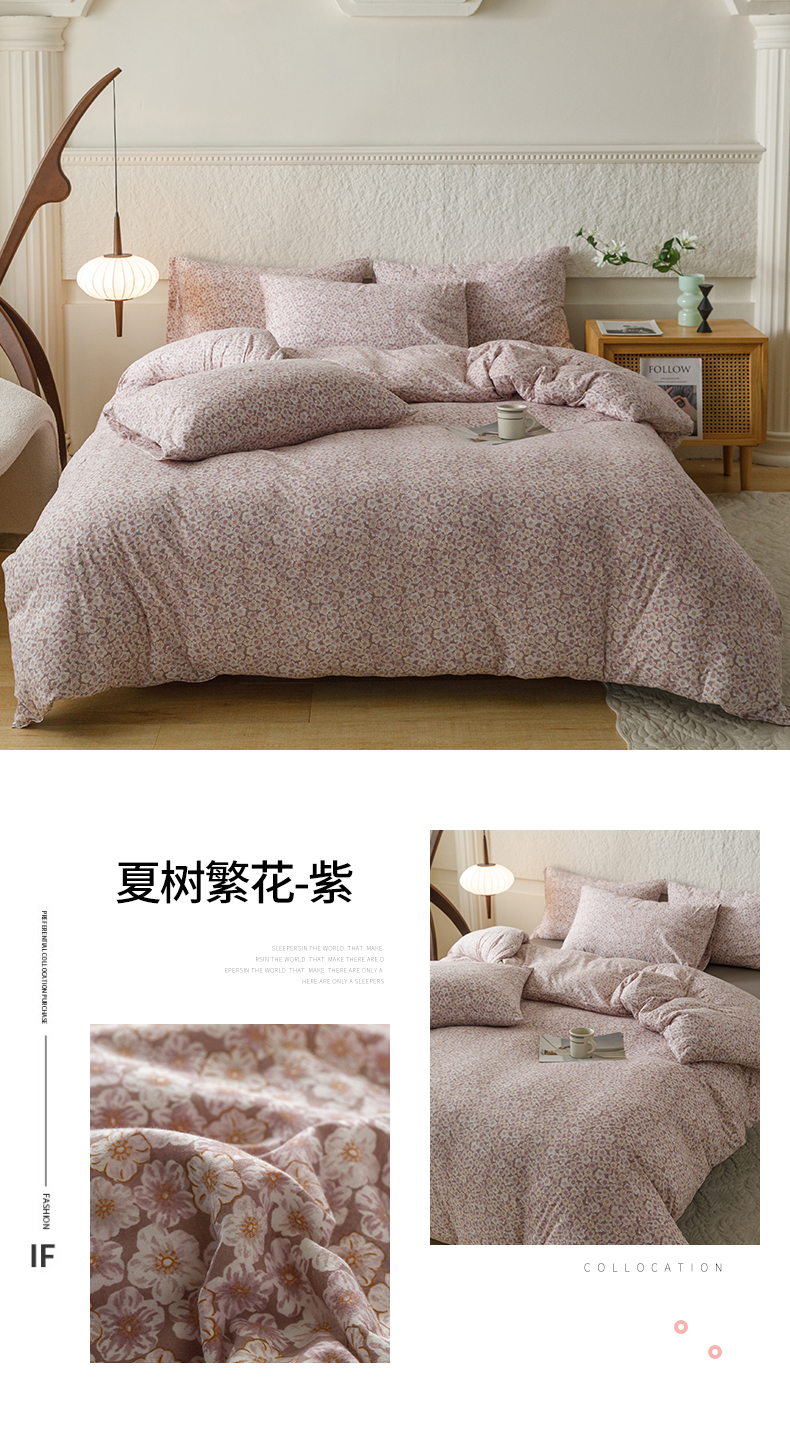 商品名称:瑞米家居 2024新款A类全棉针织棉四件套 夏树繁花-紫