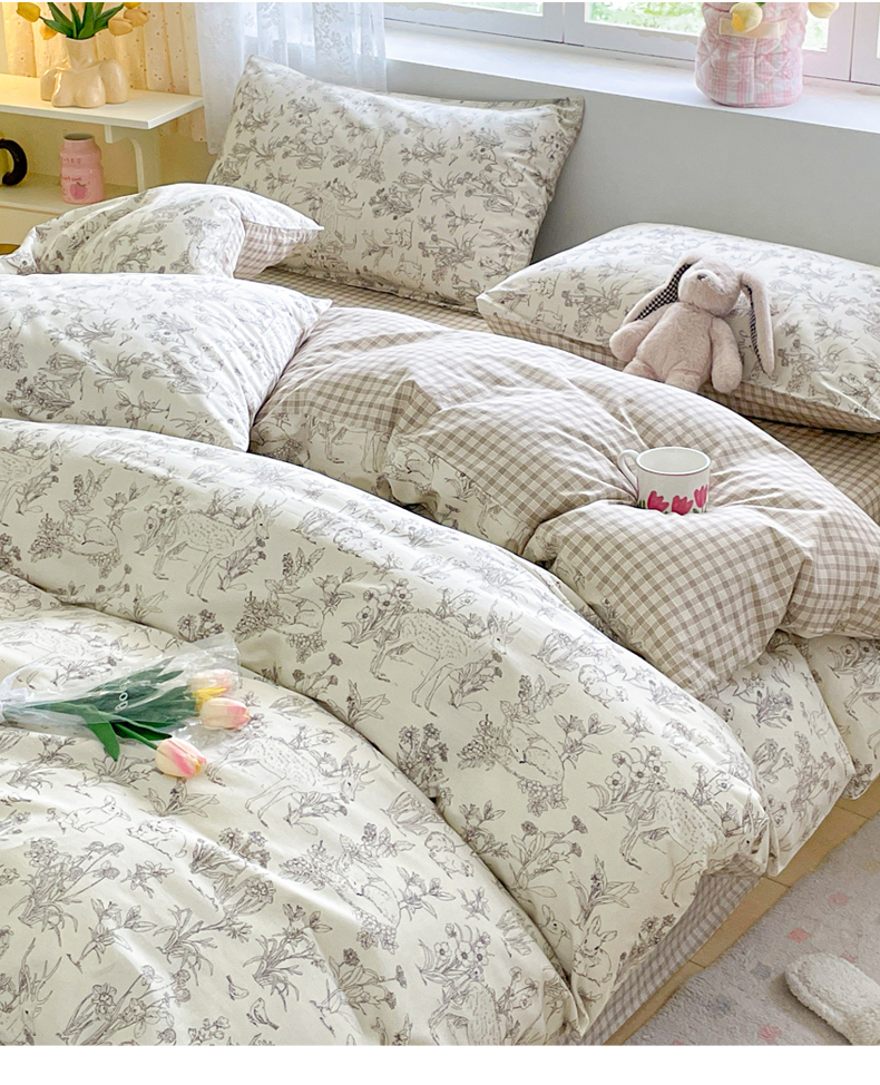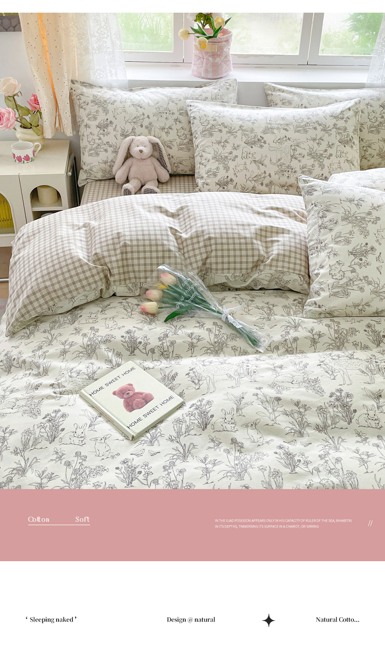 (总)芊寻 2024新款全棉13372田园风印花系列四件套,都市圈,红玫瑰,锦瑟,妙语花香,蘑菇兔,慕颜,轻絮私语,屋顶花园,罗伯特