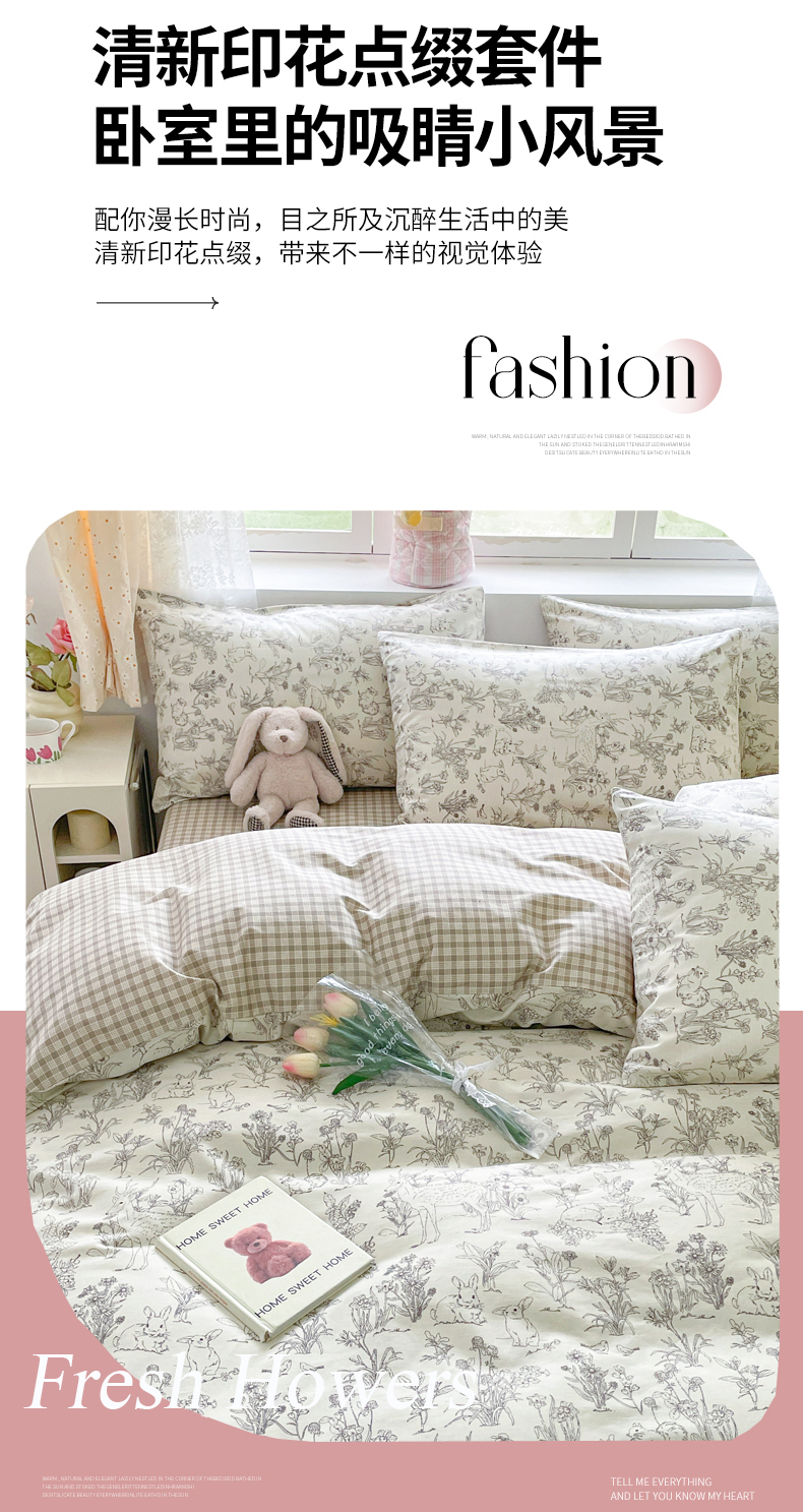 (总)芊寻家居 2025新款13372全棉印花系列四件套,柏拉图,草莓甜心,朵琦,广岛之恋,花丛 粉,幻蝶 粉,兰黛 绿,玫瑰情缘 粉,梦境女孩 米,茉莉清雨 紫,暮云 灰,青柠,如约,盛夏,小时代,小熊日记 棕,雅姿,芷若