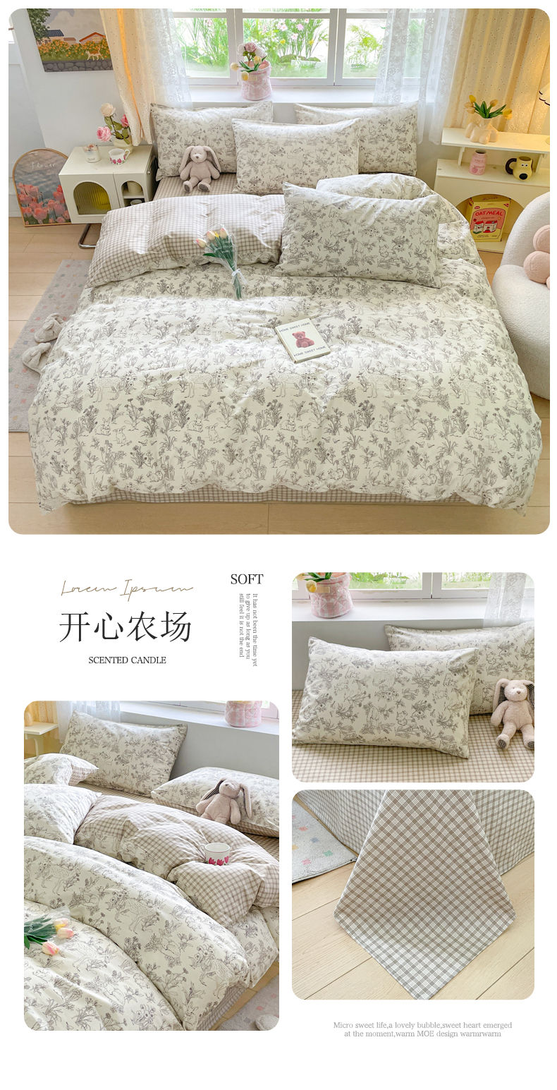 商品名称:芊寻家居 2024新款全棉13372花卉系列四件套 开心农场
