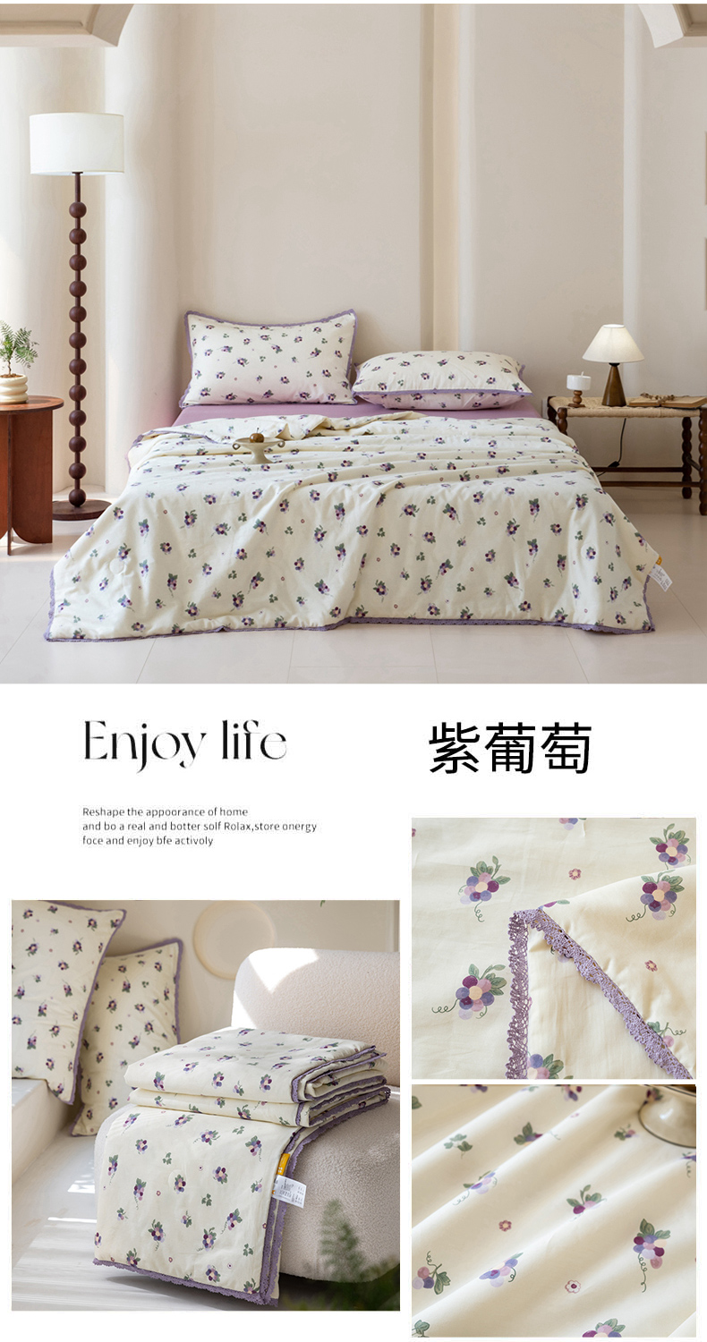 当前位置: 91家纺网 > 商品网购 > 被子 > 夏被 > 梦依依 2025新款全棉大豆纤维被-风格二 紫葡萄