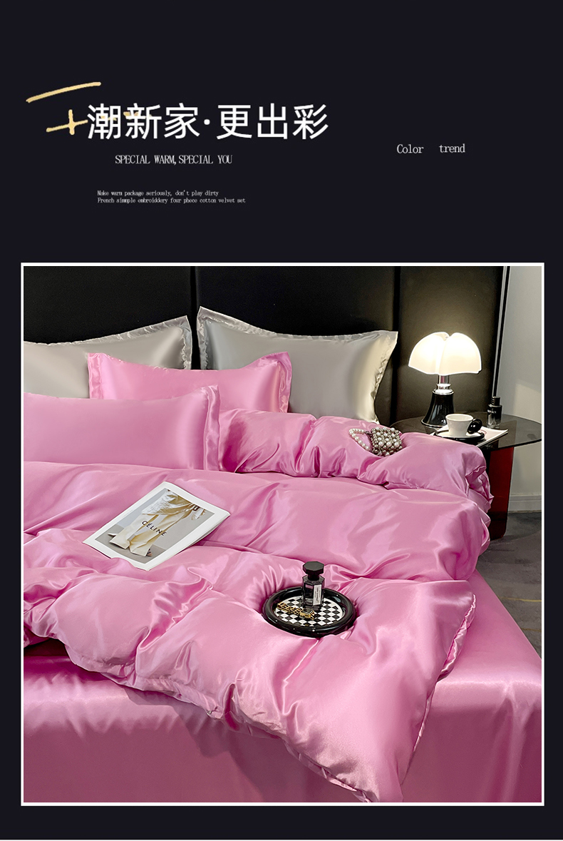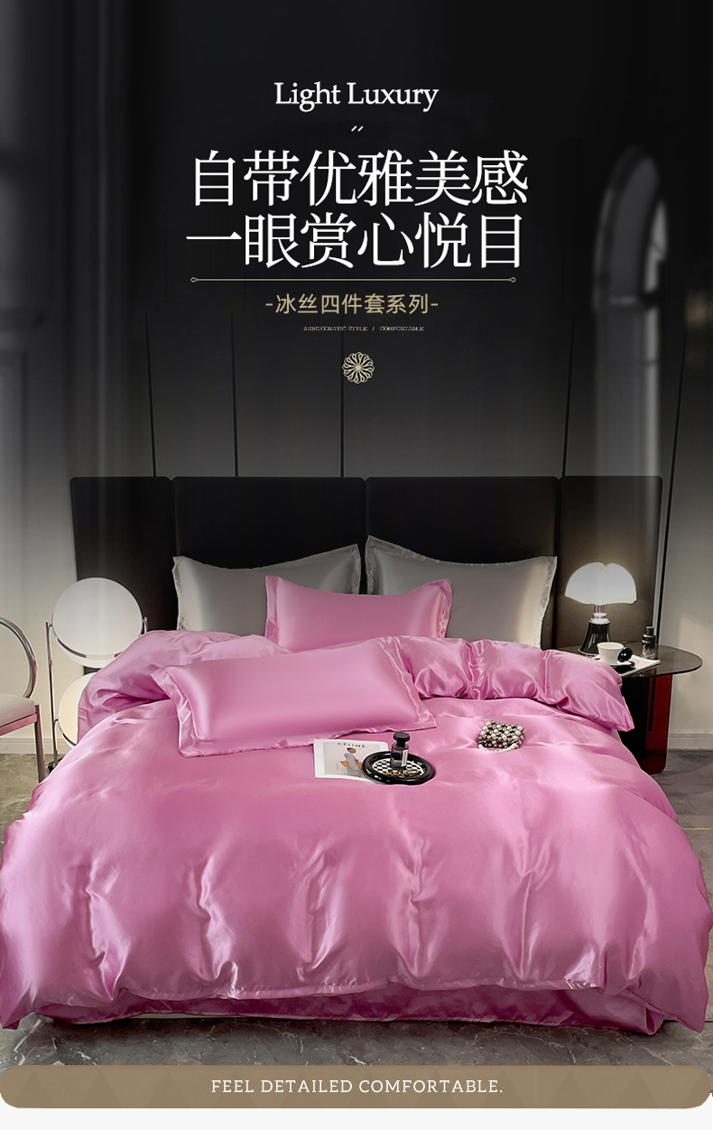 当前位置: 91家纺网 > 商品网购 > 床品套件 > 四件套 > 其它四件套 > 圣比熊 2025新款可水洗冰丝被套床单枕套夏季四件套 粉色