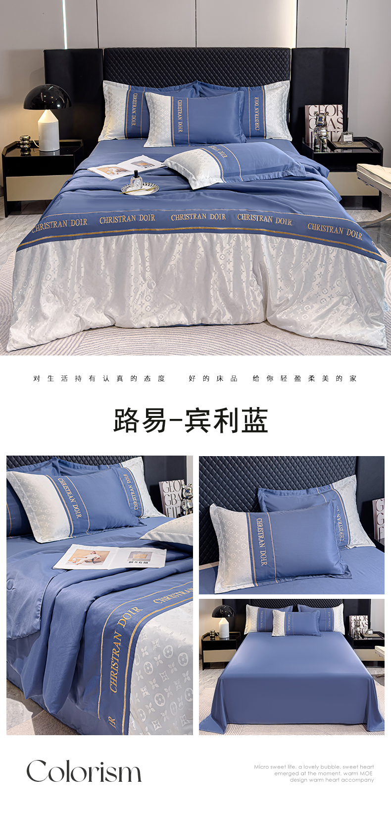 芯贝儿 2025新款水洗贡缎提花天丝夏被四件套 路易--宾利蓝