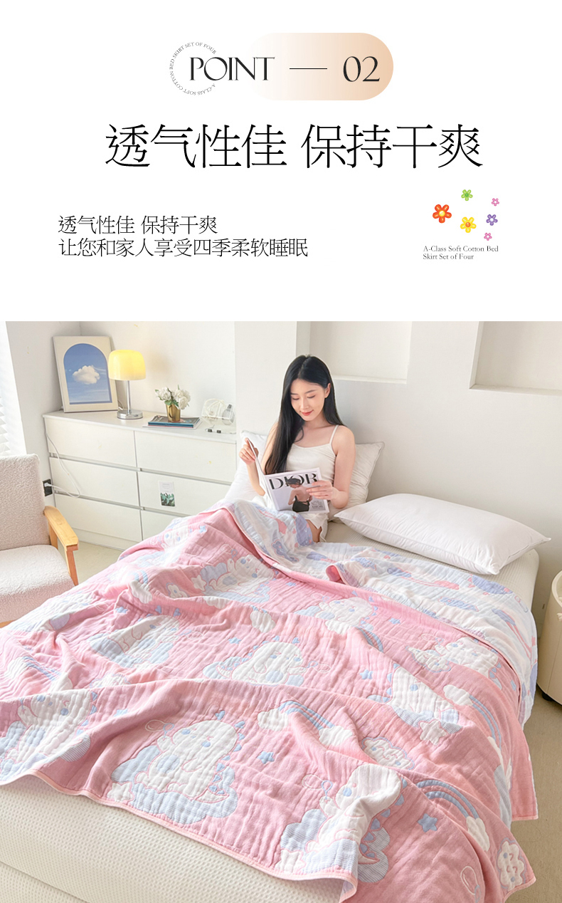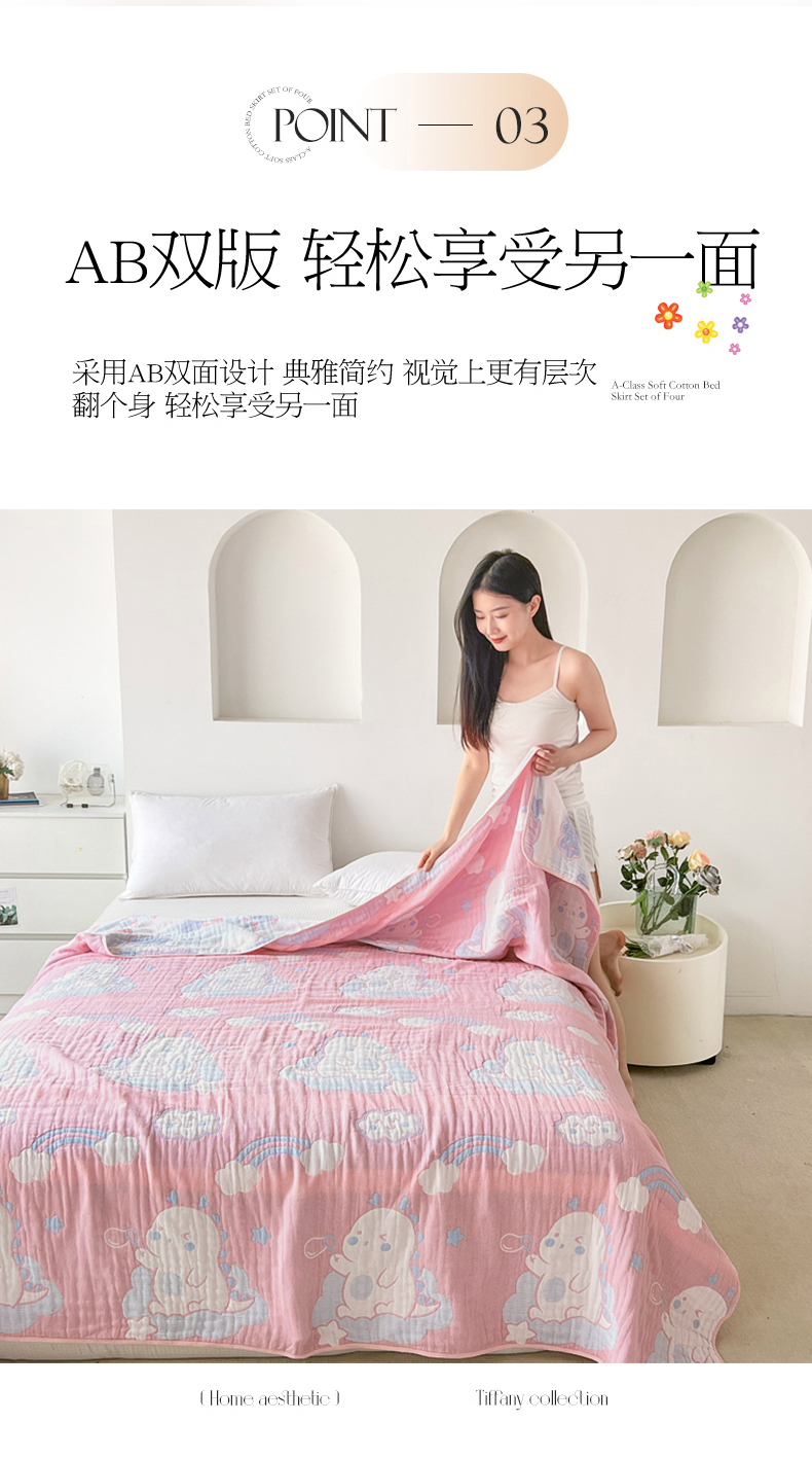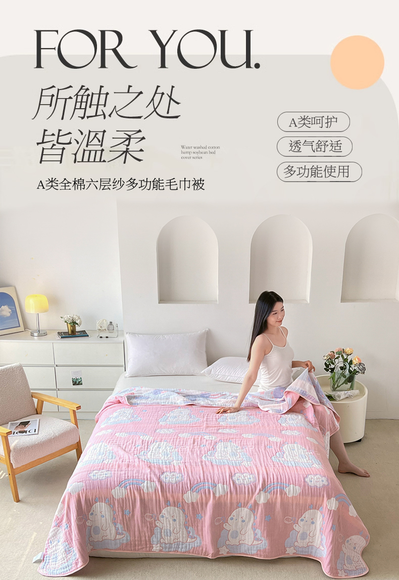 棠薇家纺 2025新款六层纯棉纱布毛巾被水洗工艺不缩水 小恐龙粉