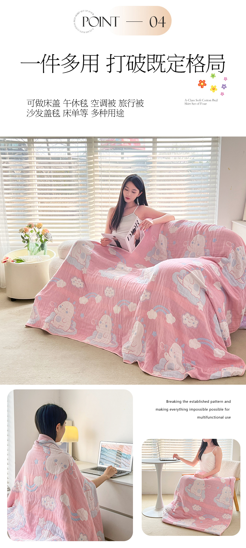 商品名称:棠薇家纺 2025新款六层纯棉纱布毛巾被水洗工艺不缩水 小恐龙粉