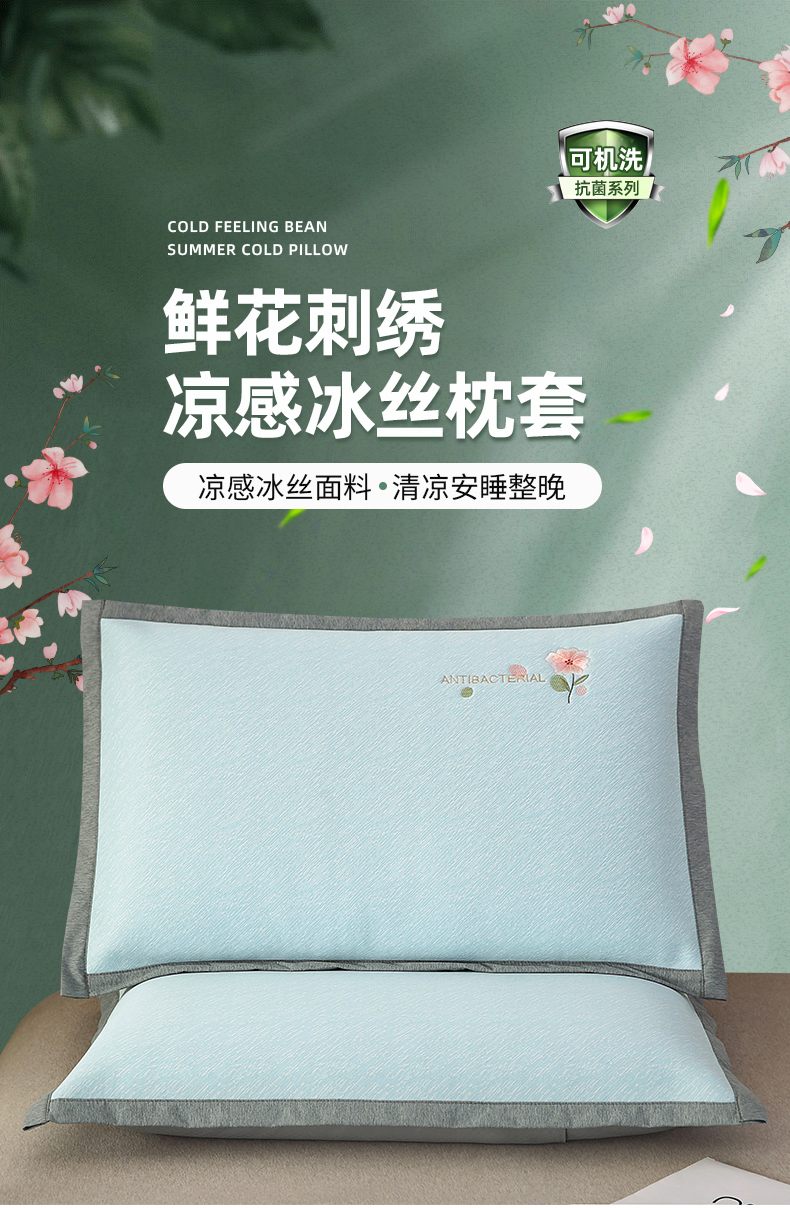 商品名称:小牛席业 鲜花刺绣凉感冰丝席枕套 鲜花凉感冰丝枕套-蓝色