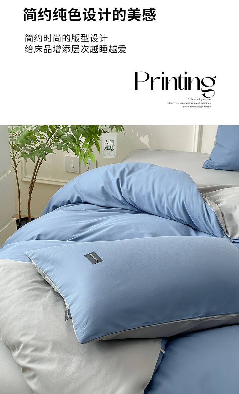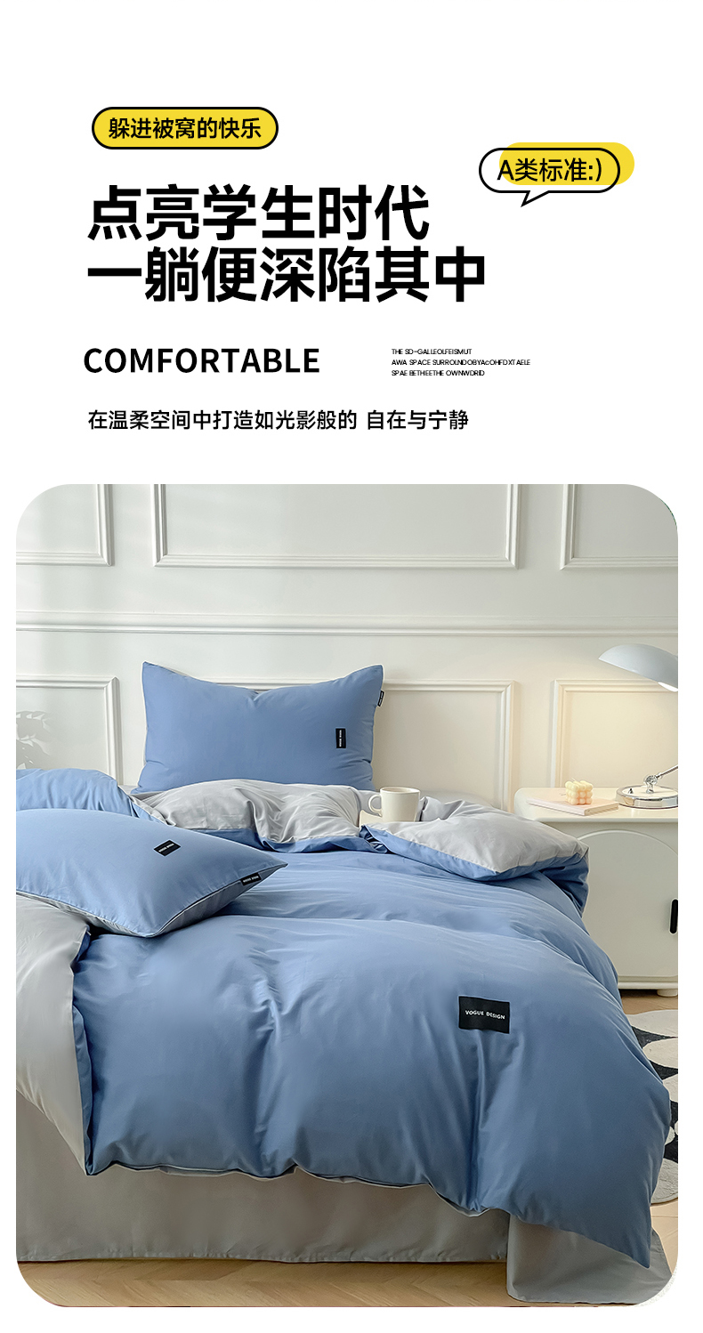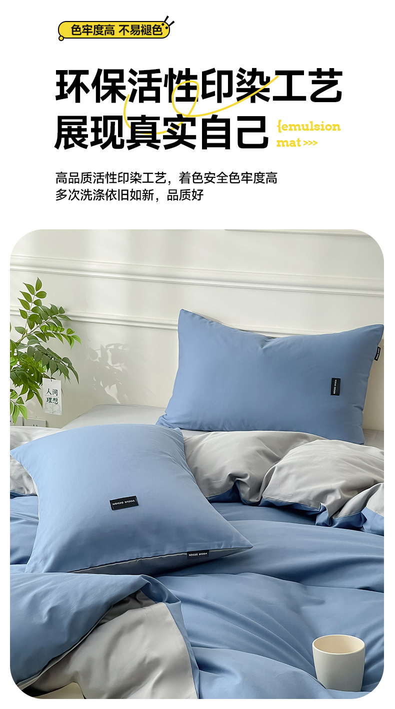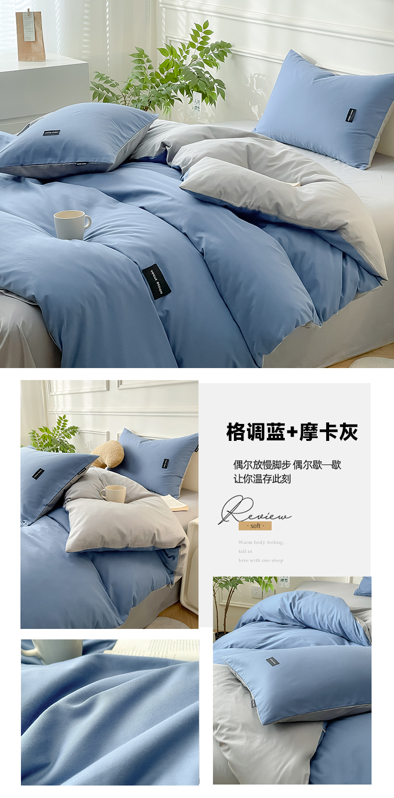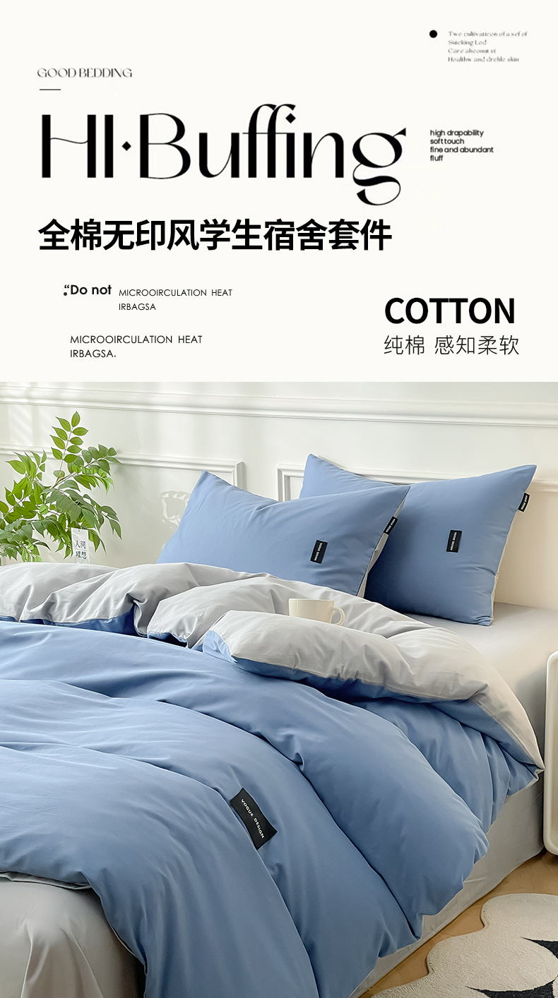 佰亿莱 2024新款全棉无印风水洗棉学生宿舍三件套四件套 图片二 格调蓝+摩卡灰