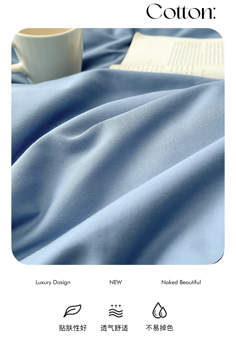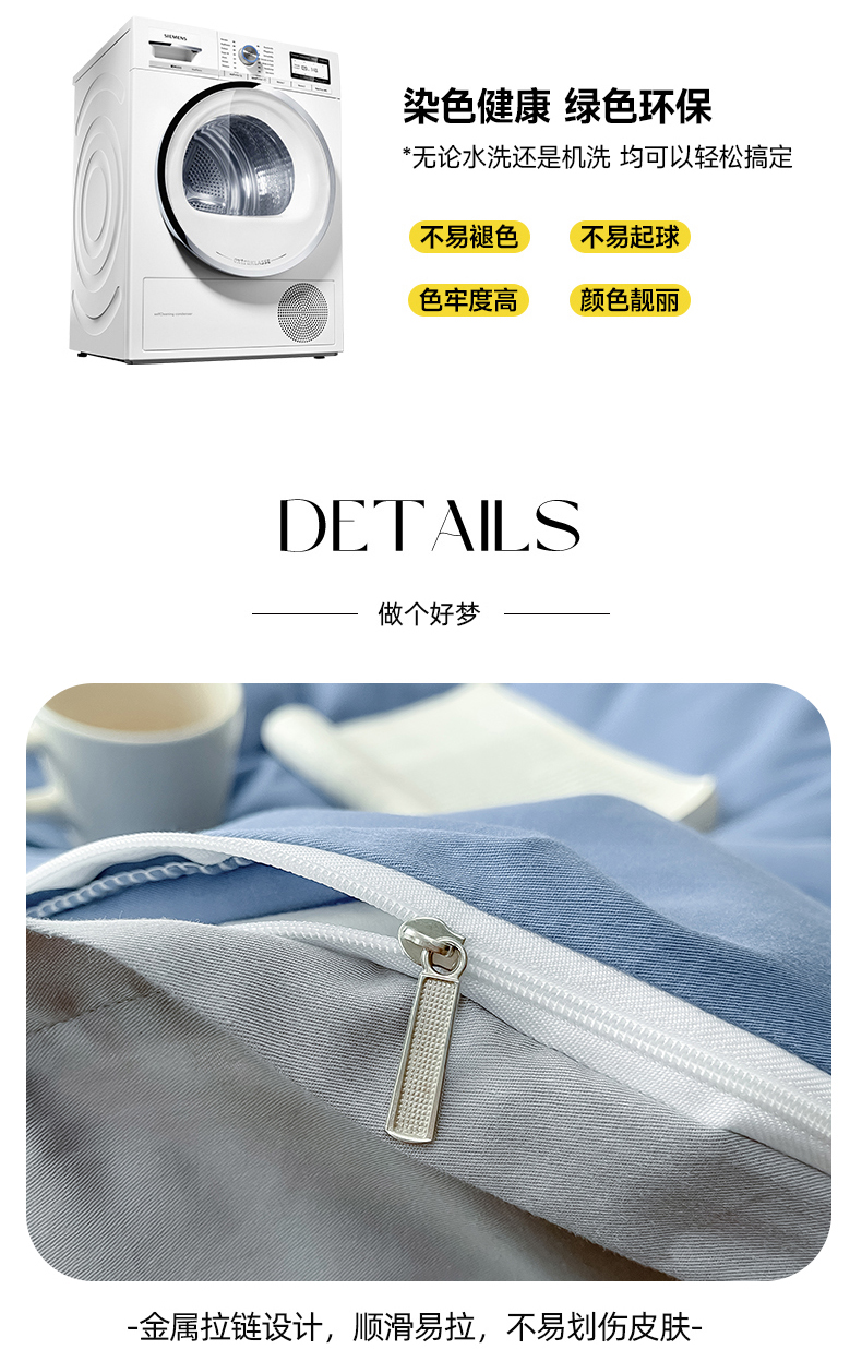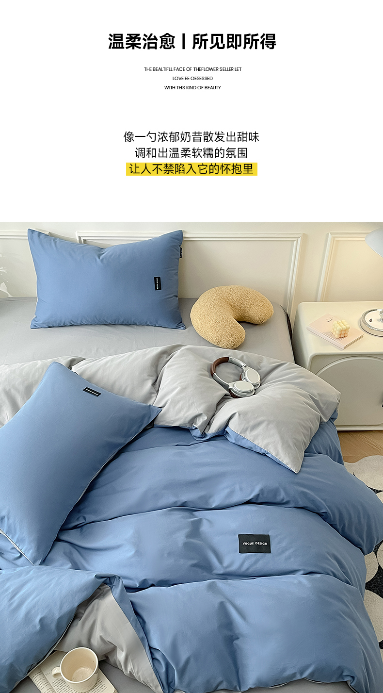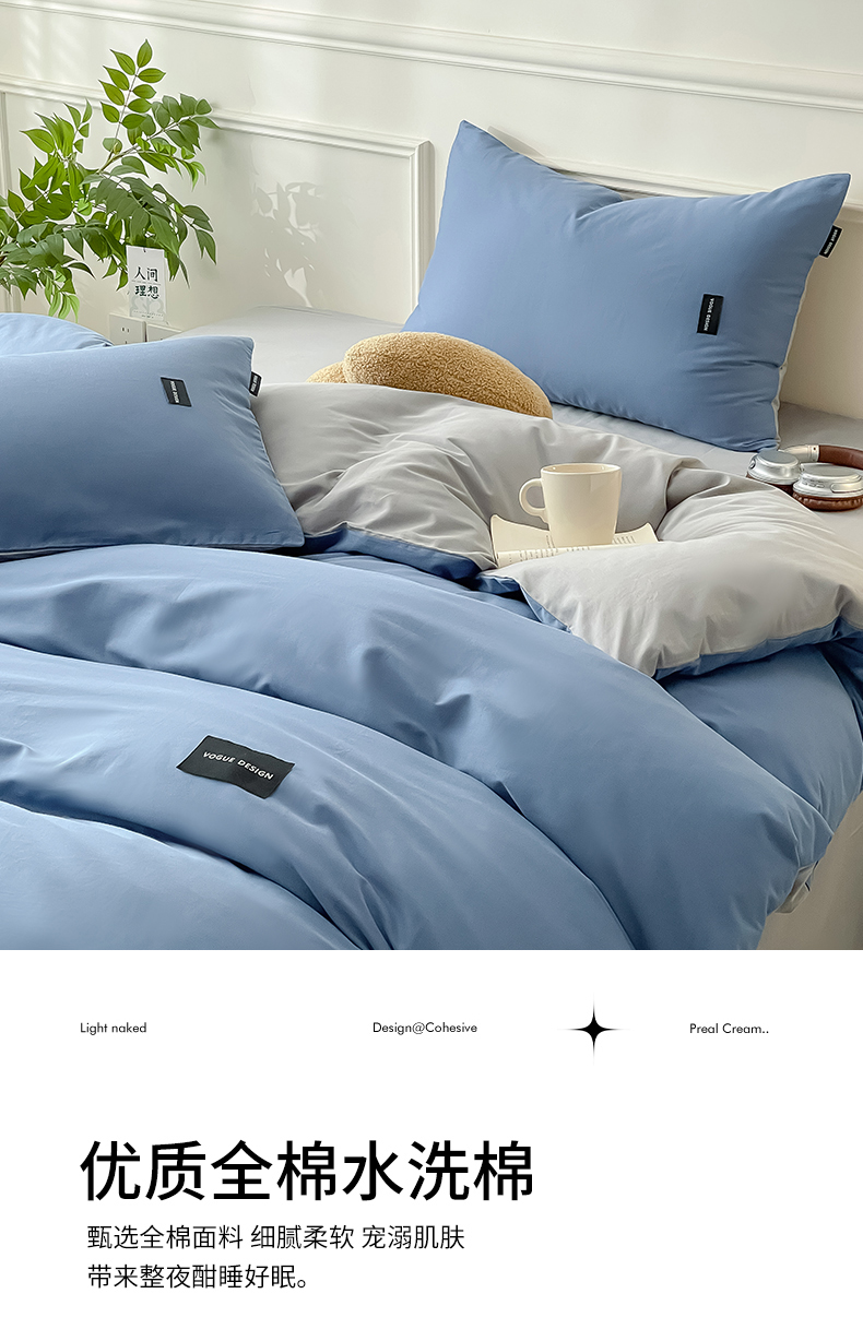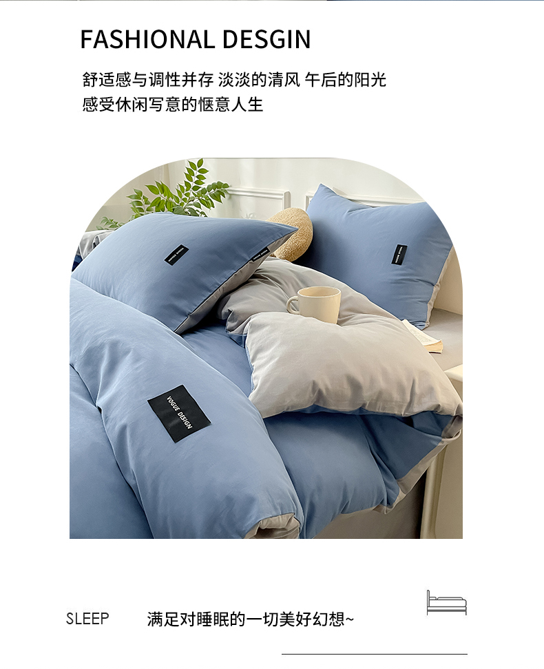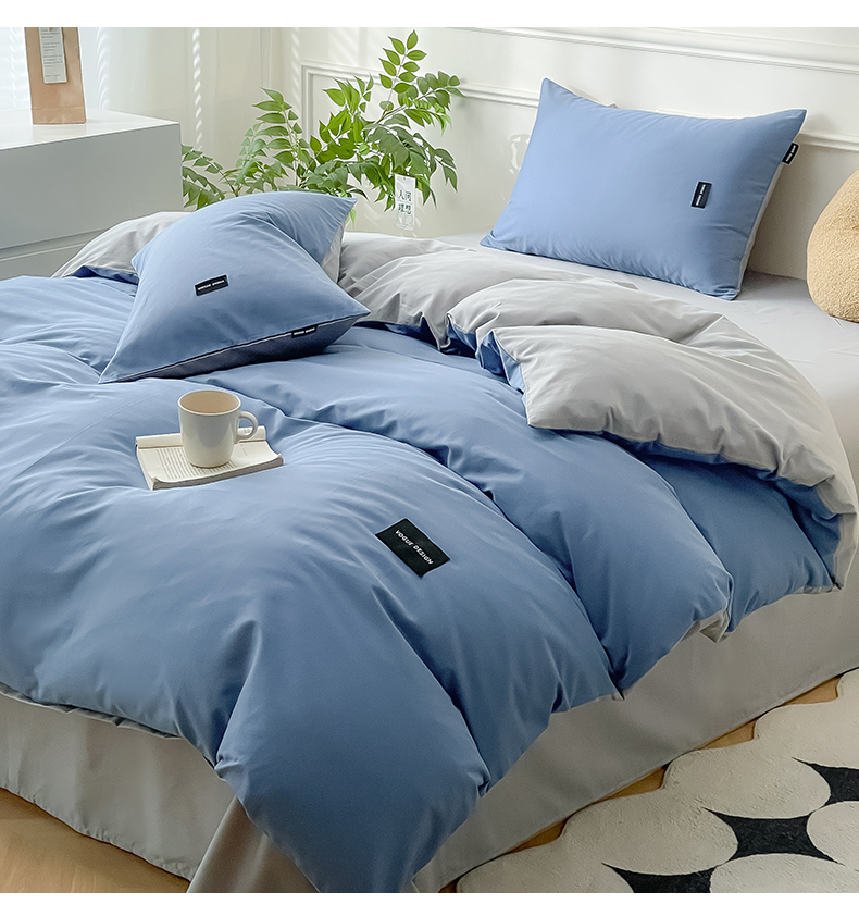 佰亿莱 2024新款全棉无印风水洗棉学生宿舍三件套四件套 图片二 格调蓝+摩卡灰