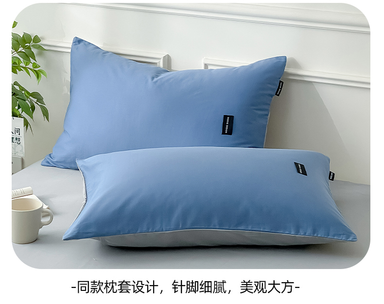 商品名称:佰亿莱 2024新款全棉无印风水洗棉学生宿舍三件套四件套 图片二 格调蓝+摩卡灰