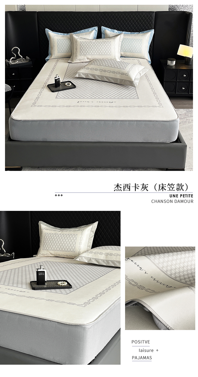 商品名称:三味舒屋 2025新款凉感抗菌防螨印花冰丝养生席手绘系列床笠款【简欧】 杰西卡灰