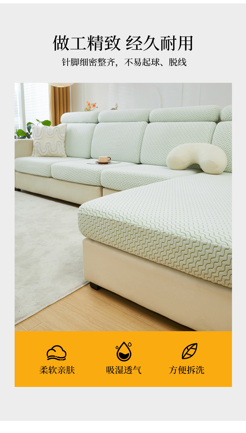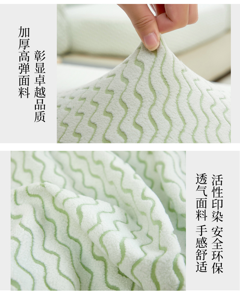 当前位置: 91家纺网 > 商品网购 > 居家布艺 > 坐垫/椅垫/沙发垫 > 沙发垫 > 千彤 2024新款常规款-阳离子拉花绒水波纹系列沙发笠沙发套罩弹力全包 浅绿