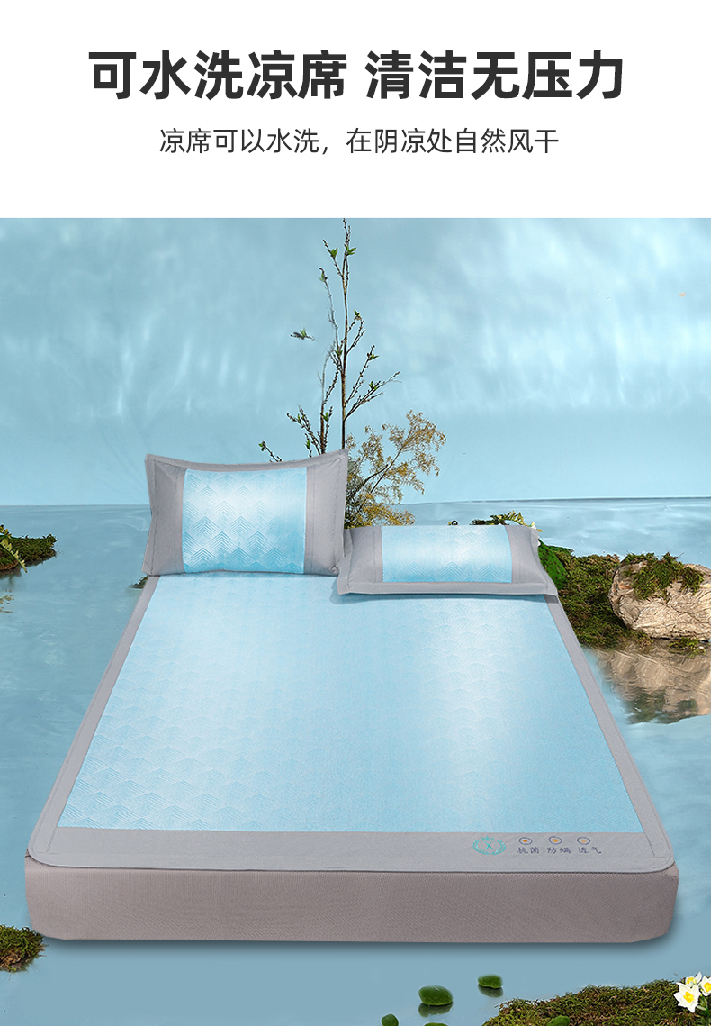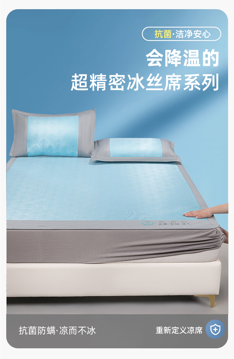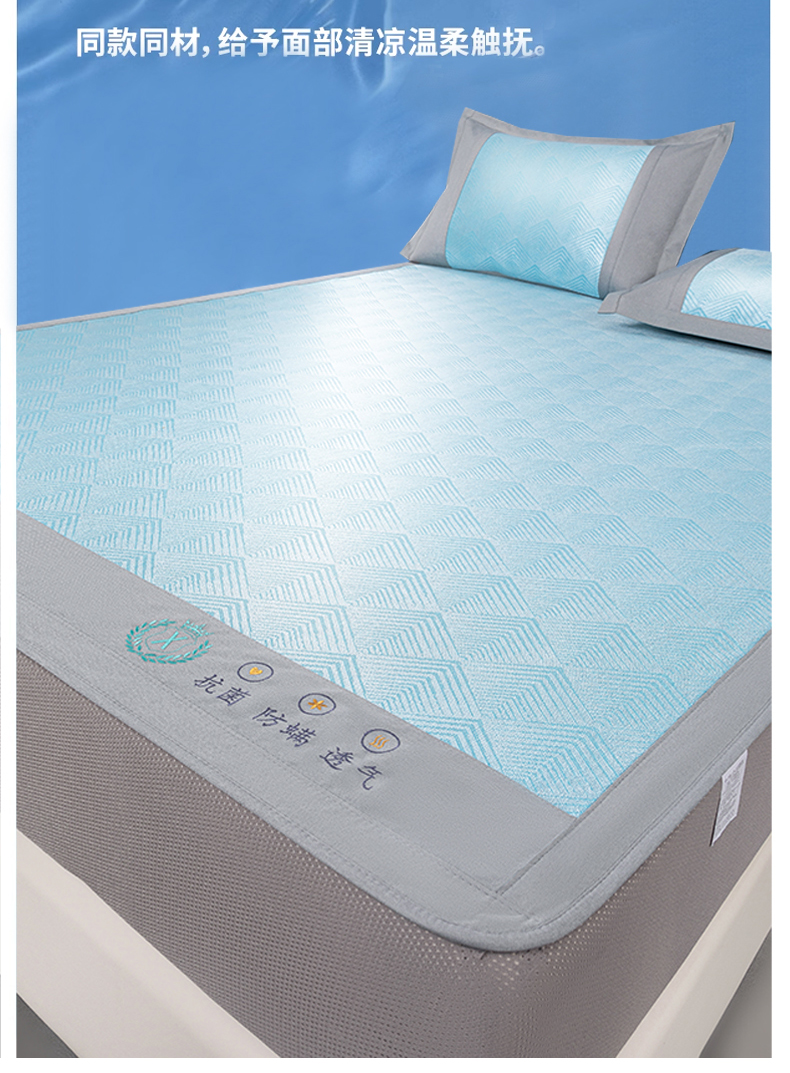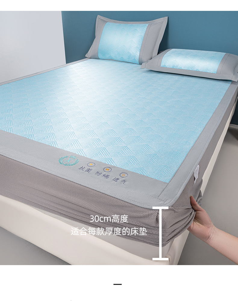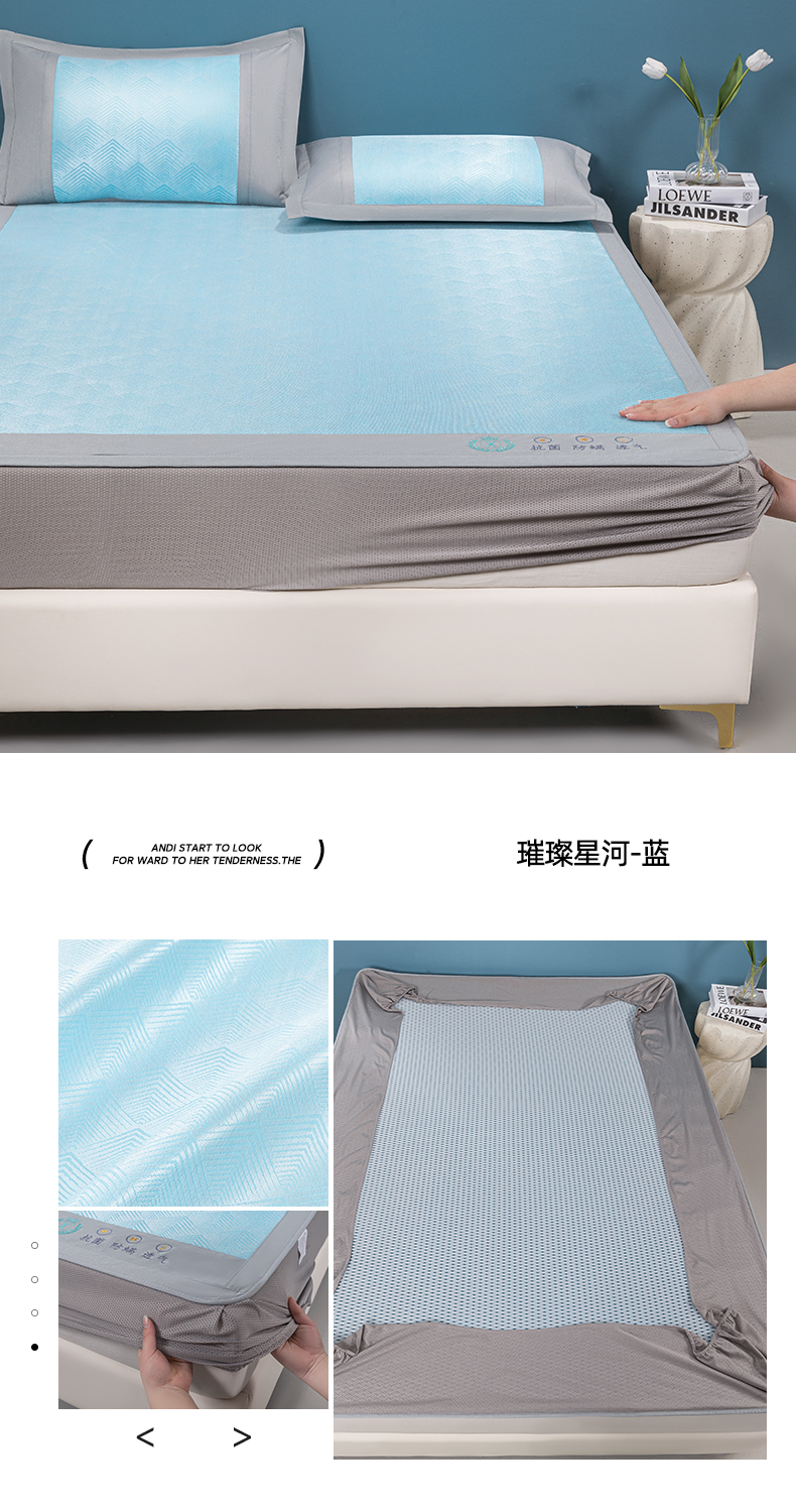 2025新款超精密抗菌冰丝席肌理纹三件套系列--崔璨星河 璀璨星河蓝床笠款