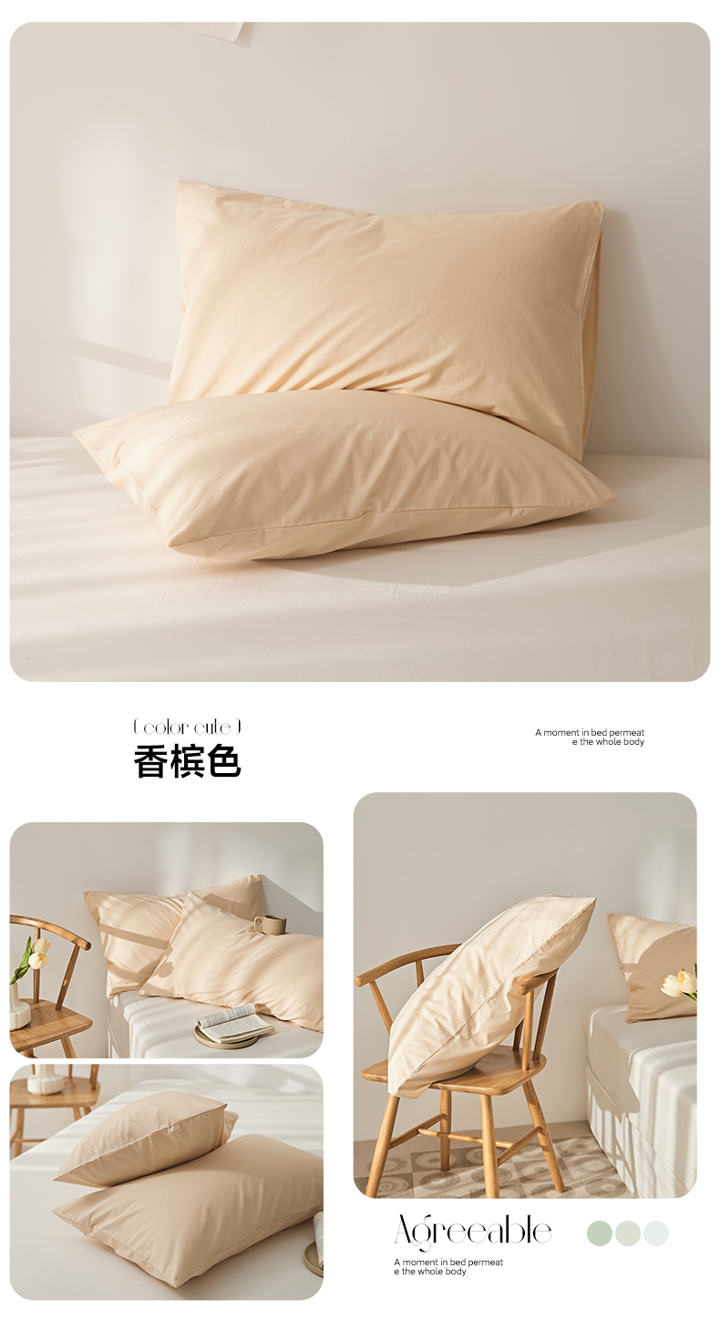 新款40支全棉水洗棉纯色单品系列-单枕套 香槟色