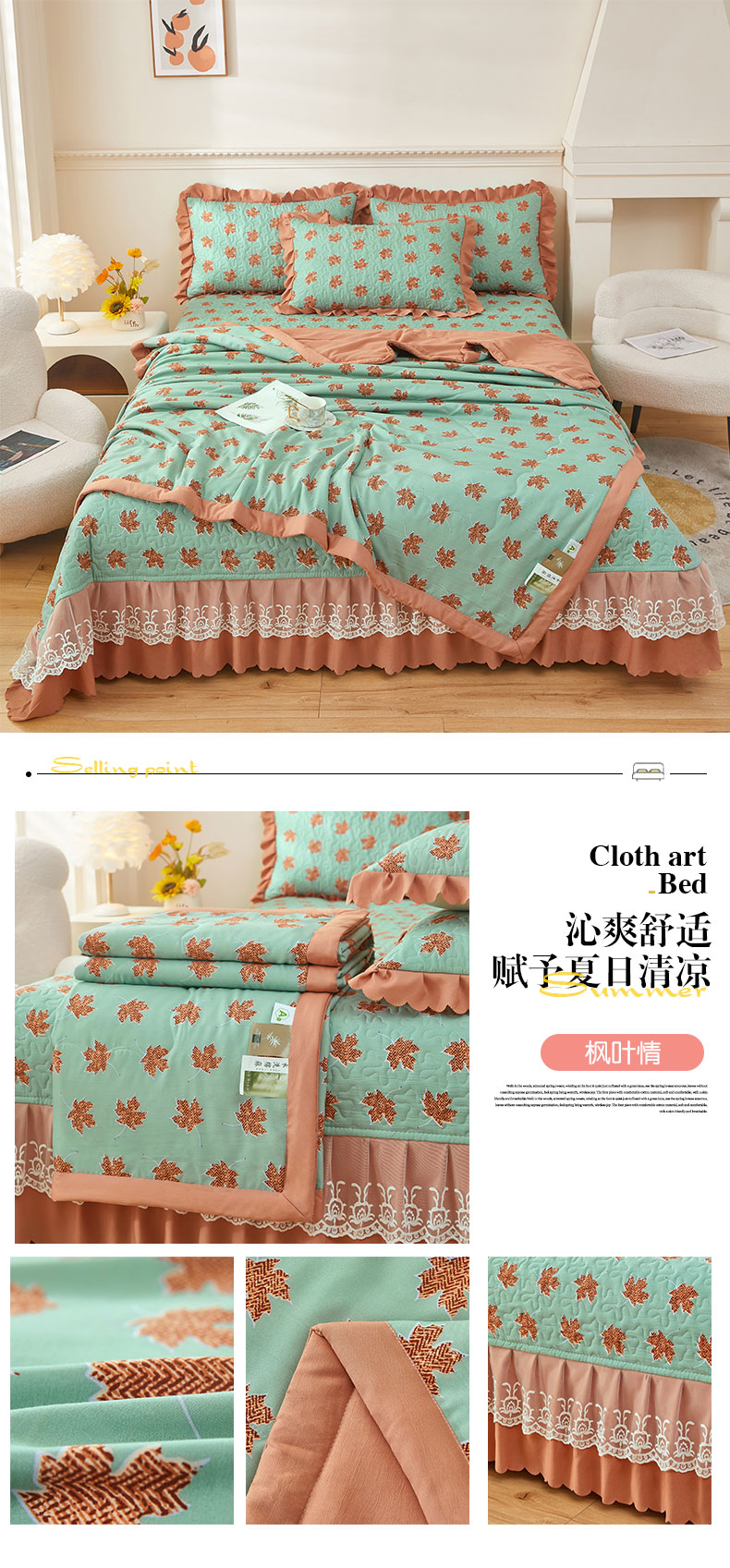 商品名称:美之润家纺 2026新款床盖款夏被四件套枫叶情