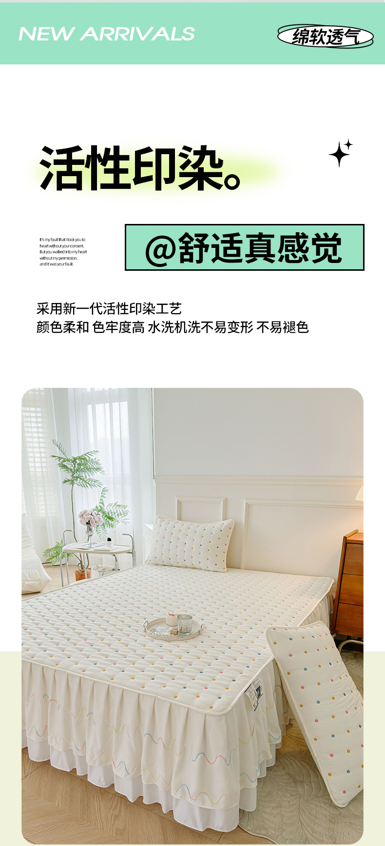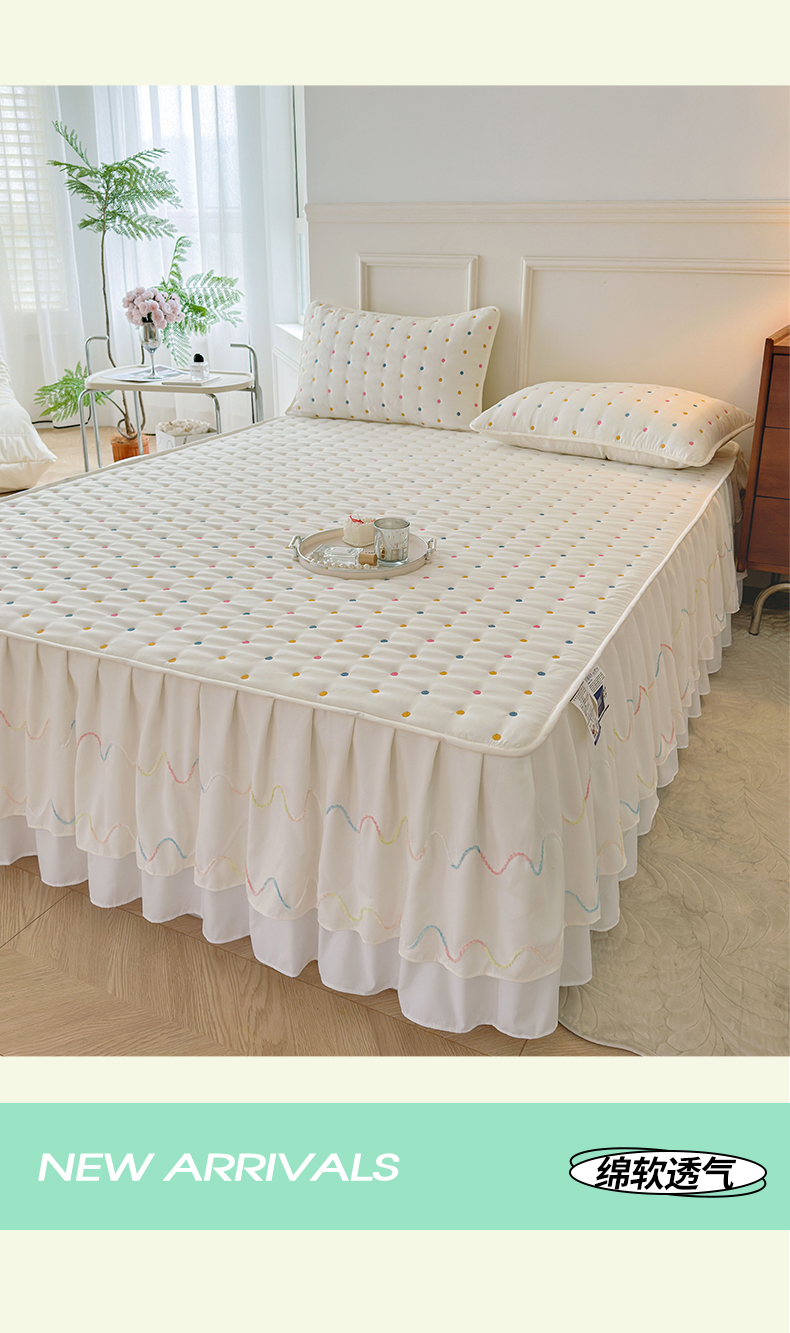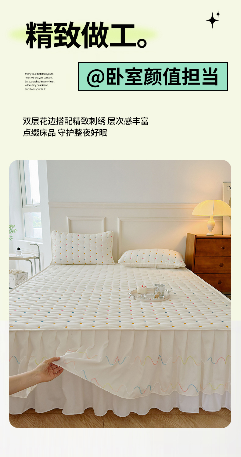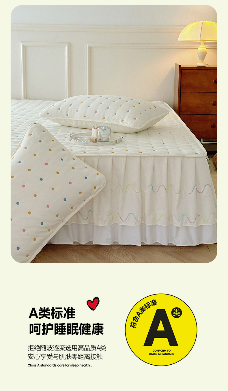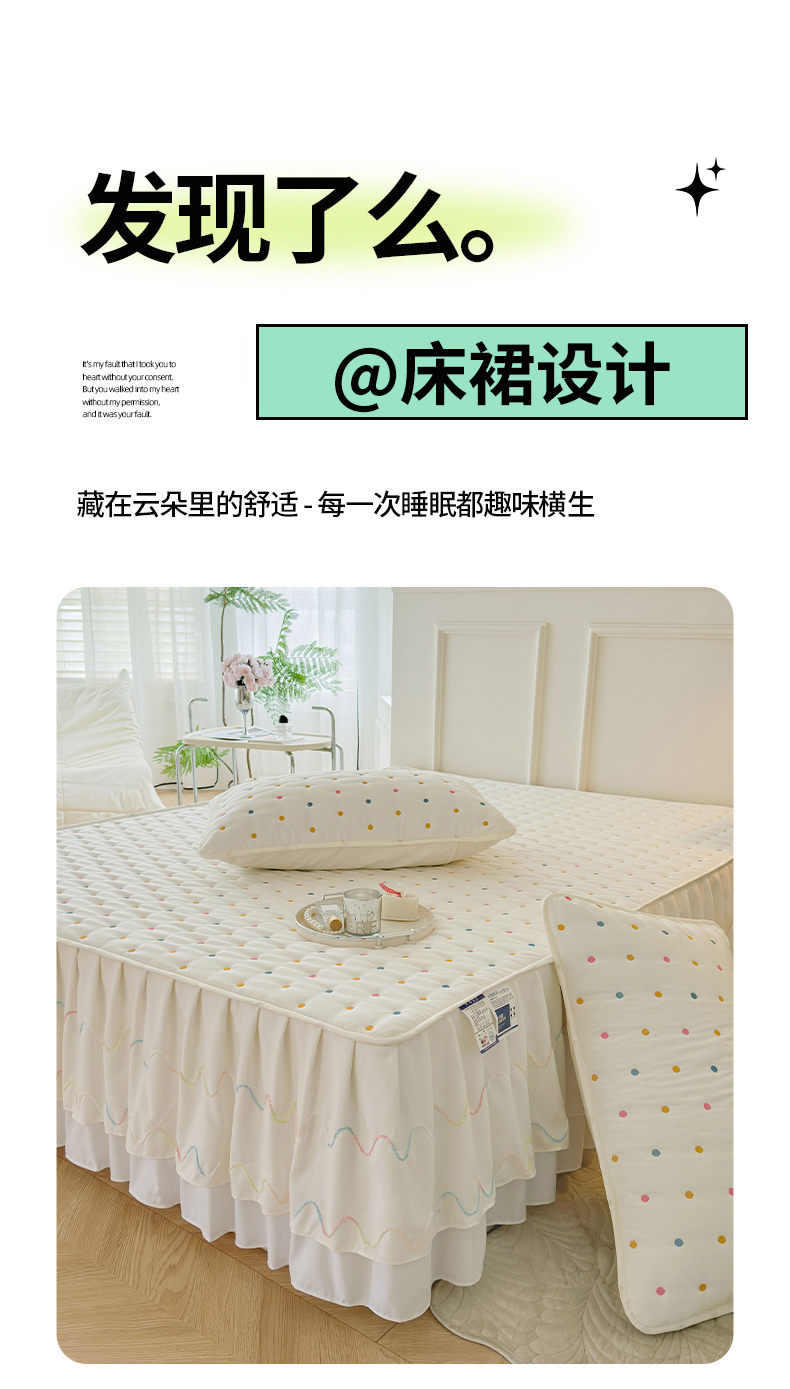 尊康家纺(原磊科) 2024新款亲肤奶昔棉夹棉床裙星空点点系列 星空点点-米白