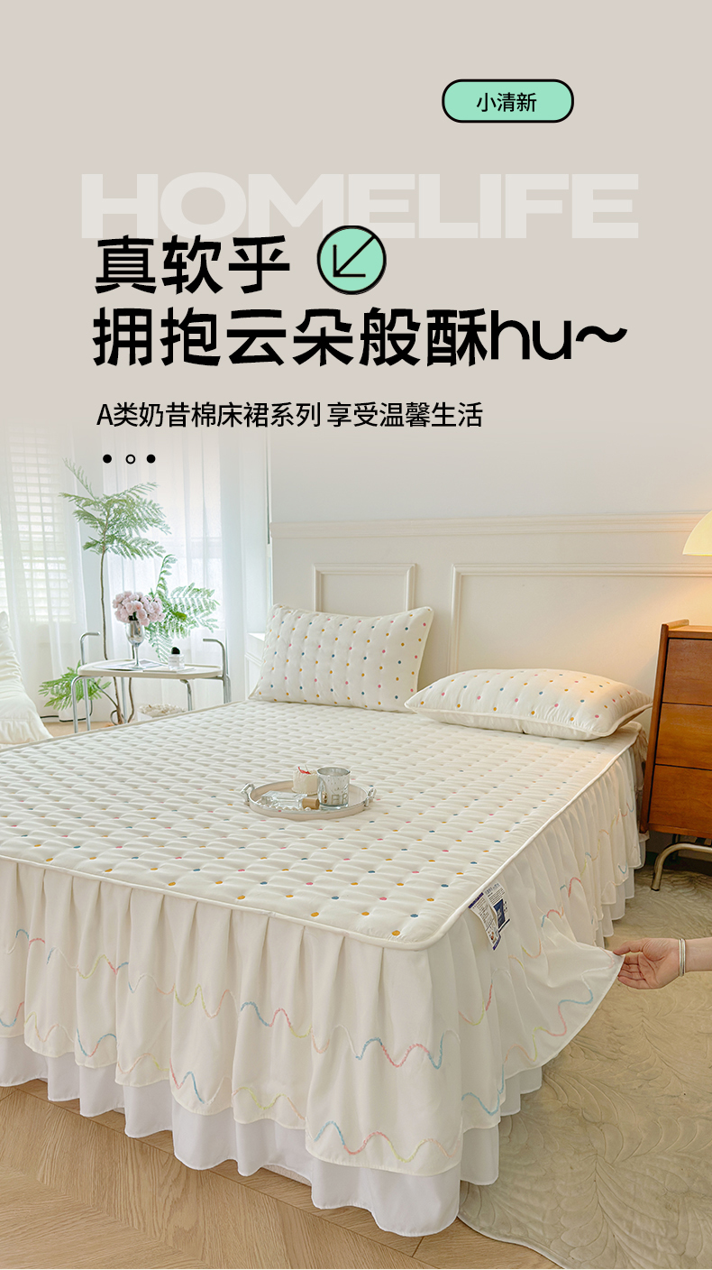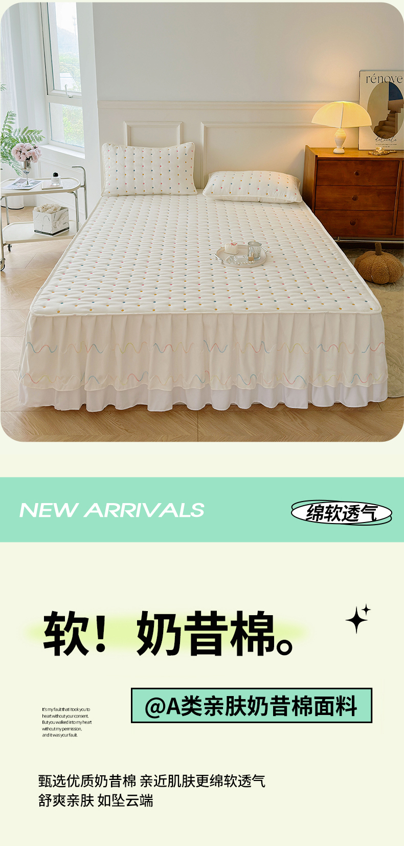 • 91家纺网 家纺一手货源 找家纺 尊康家纺(原磊科) 2024新款亲肤奶昔棉夹棉床裙星空点点系列 星空点点-米白