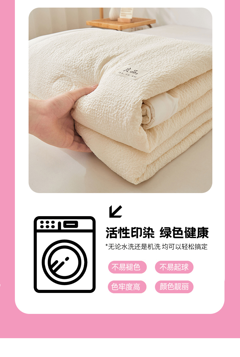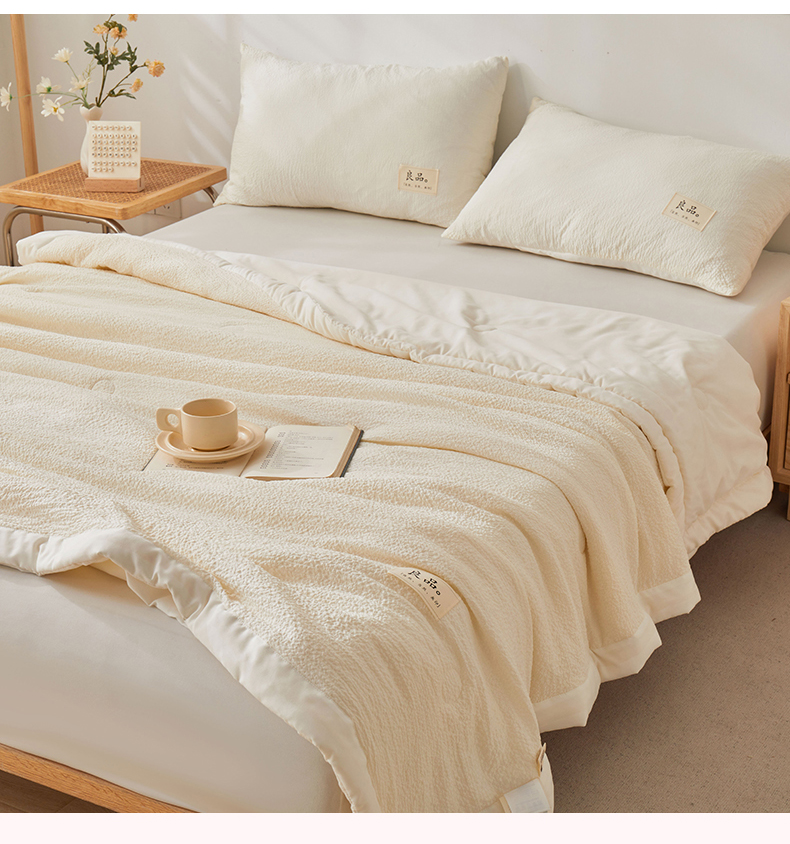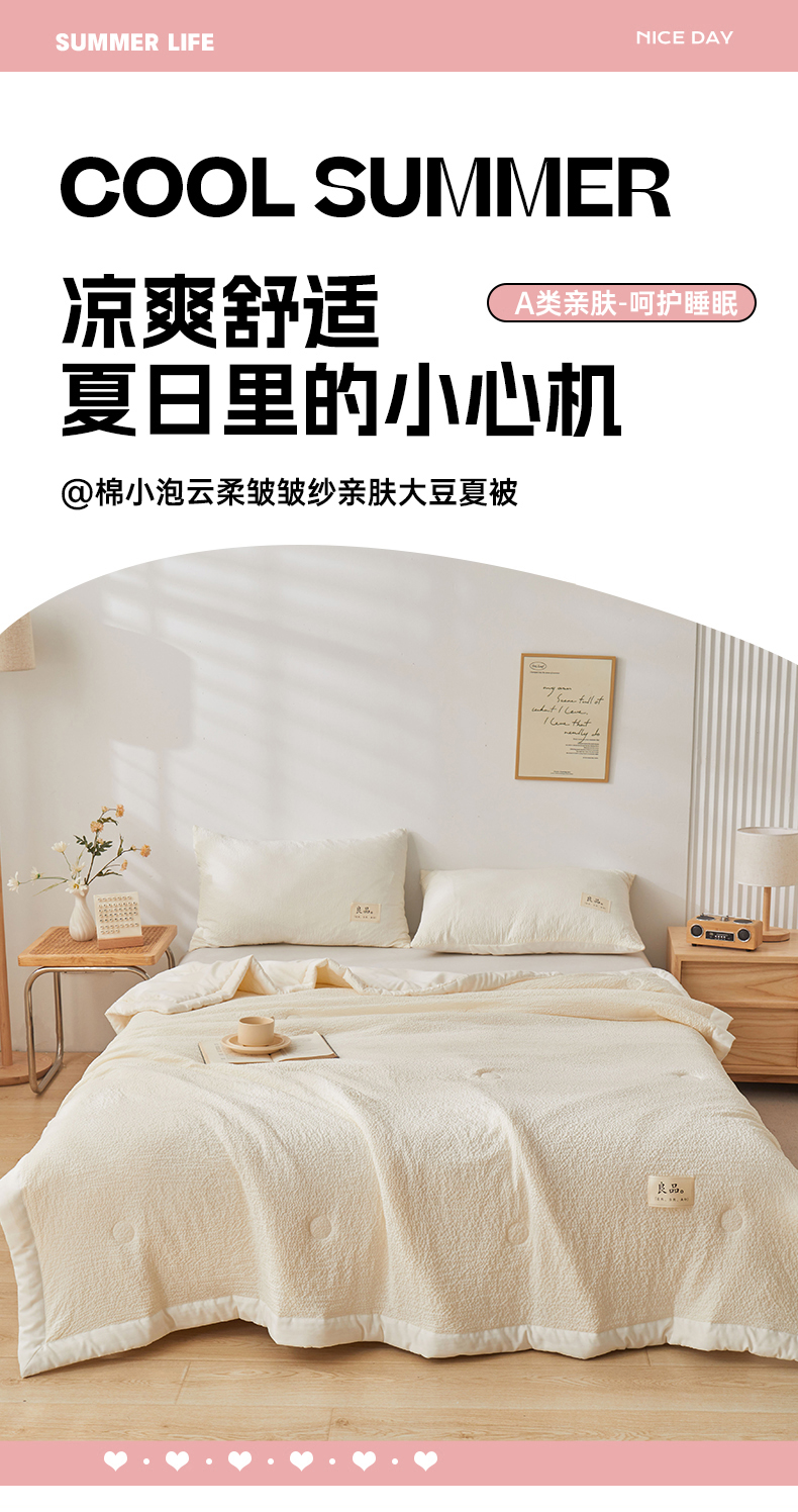 (总)典冠(有质检)2024爆款7D云柔皱皱纱A类棉小泡良品大豆夏被,奶昔白,樱花粉,绅士蓝,薄荷绿,高级灰