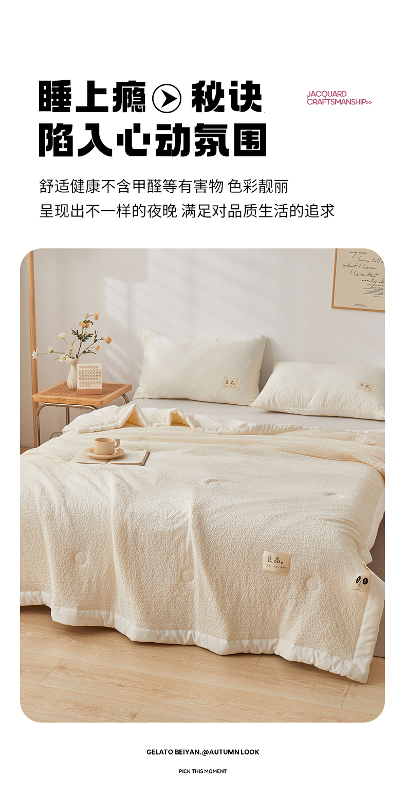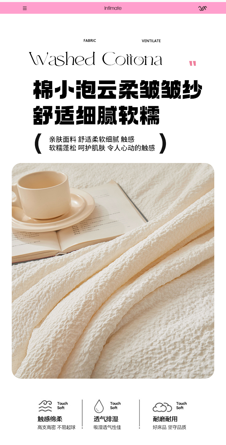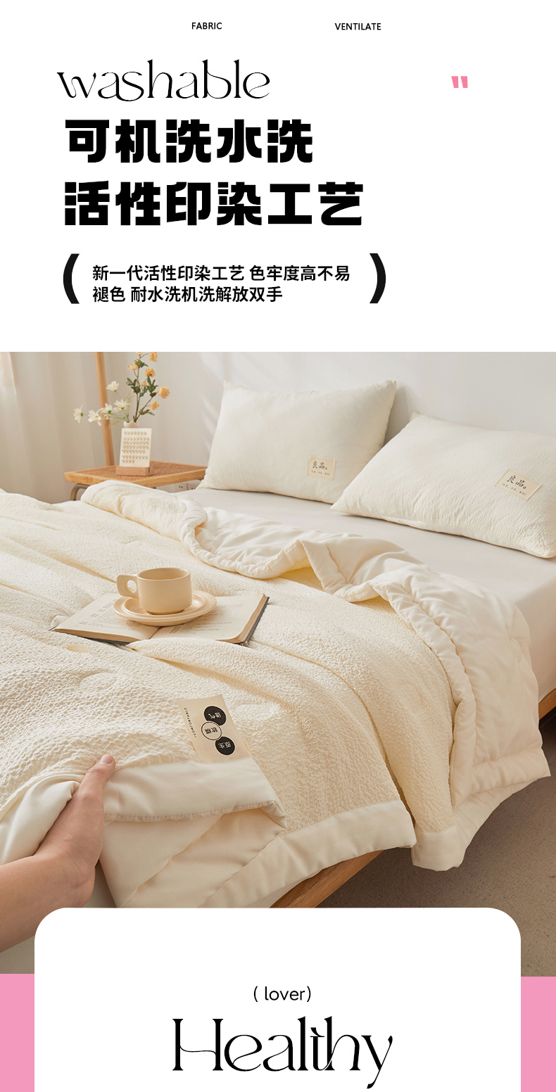 (总)典冠(有质检)2024爆款7D云柔皱皱纱A类棉小泡良品大豆夏被,奶昔白,樱花粉,绅士蓝,薄荷绿,高级灰
