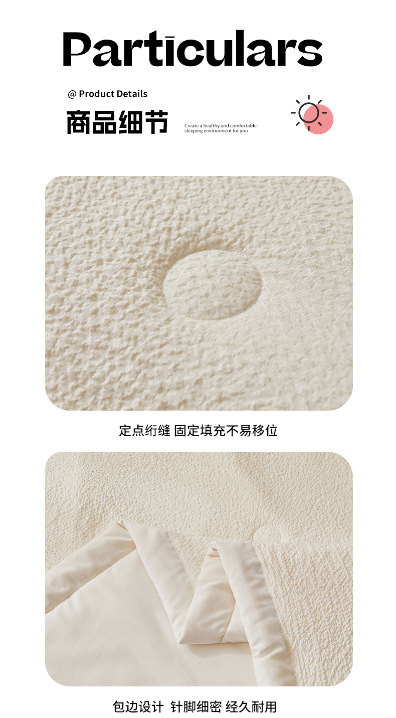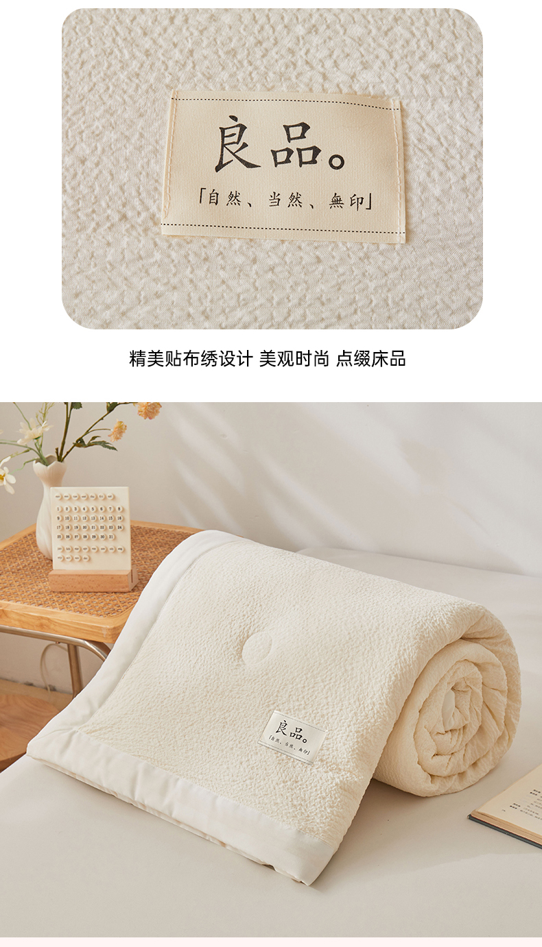 典冠(有质检)2024爆款7D云柔皱皱纱A类棉小泡良品大豆夏被 奶昔白