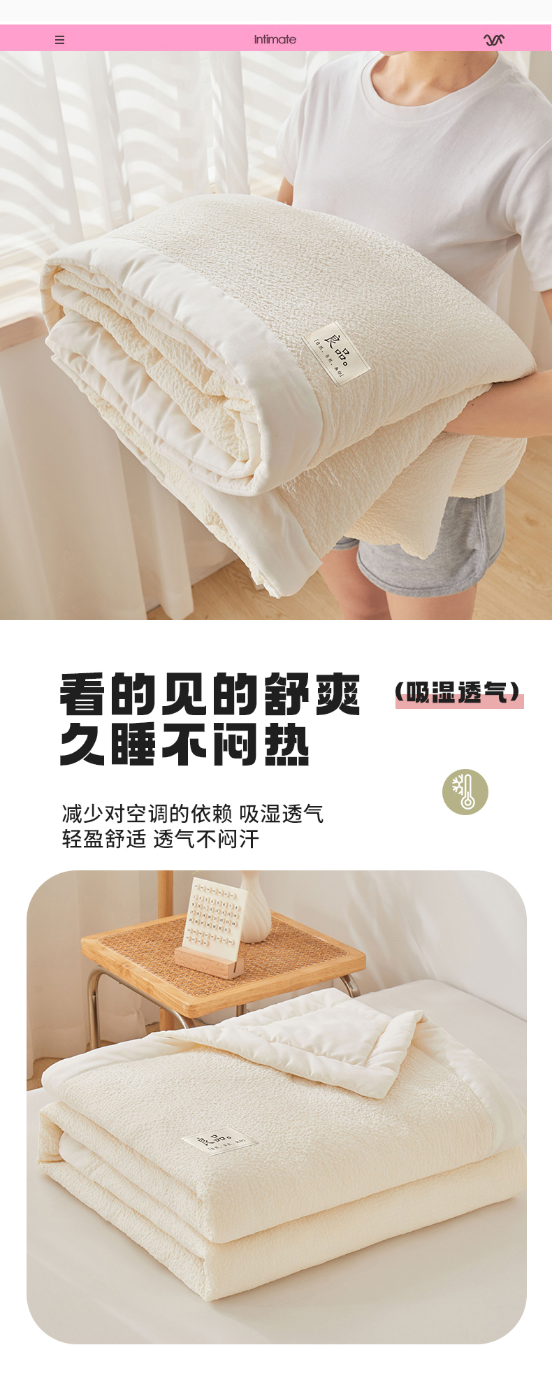 商品名称:典冠(有质检)2024爆款7D云柔皱皱纱A类棉小泡良品大豆夏被 奶昔白