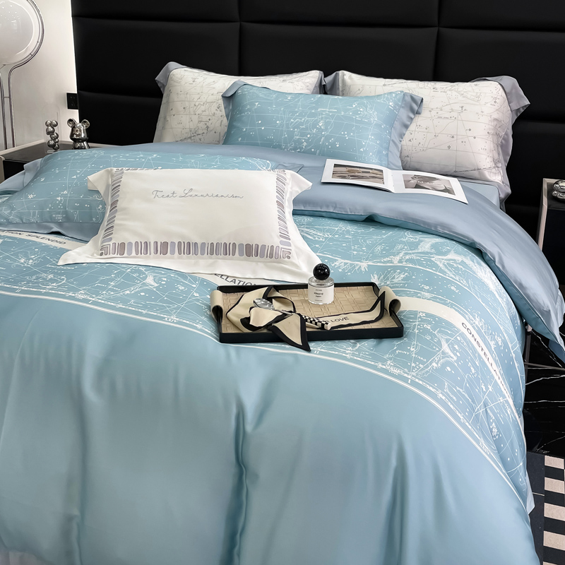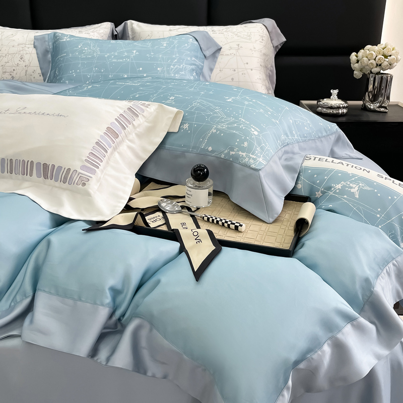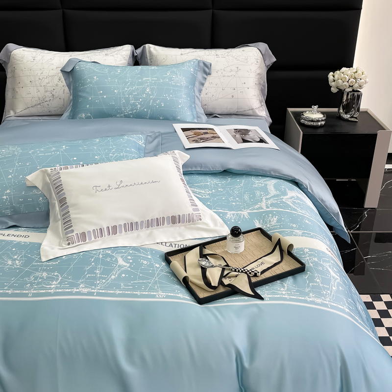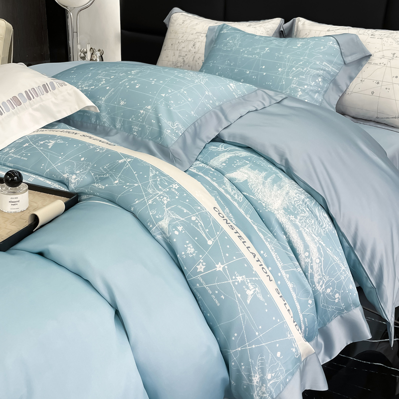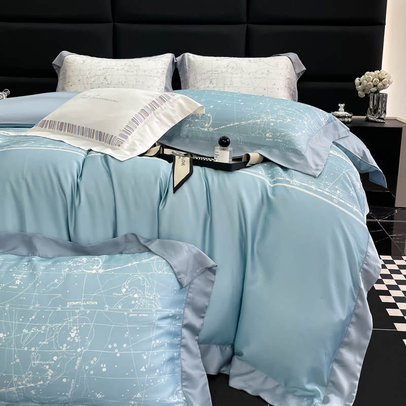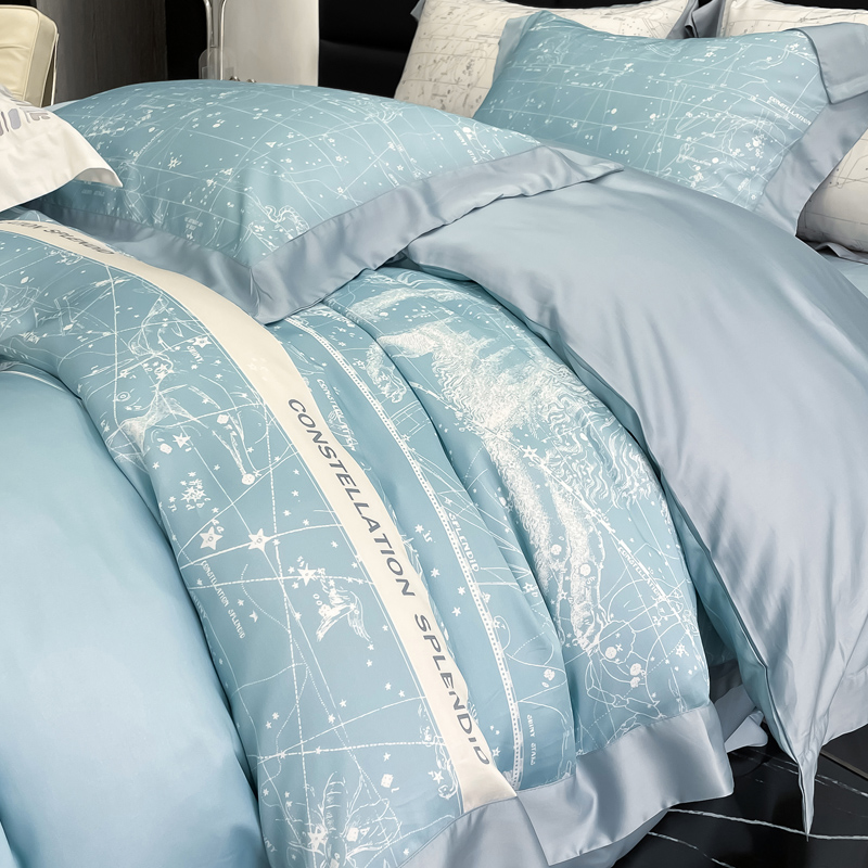 若未家居2025新款50支兰精天丝轻奢风数码印花套件 狮子座 狮子座 浅蓝