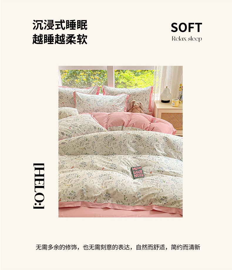 (总)捌月 2025新款舒适全棉印花四件套,薄荷,丹妮,芬妮,蝴蝶梦,花束熊,灵动,米菲兔,那年花开,千野,薇子,云瑶