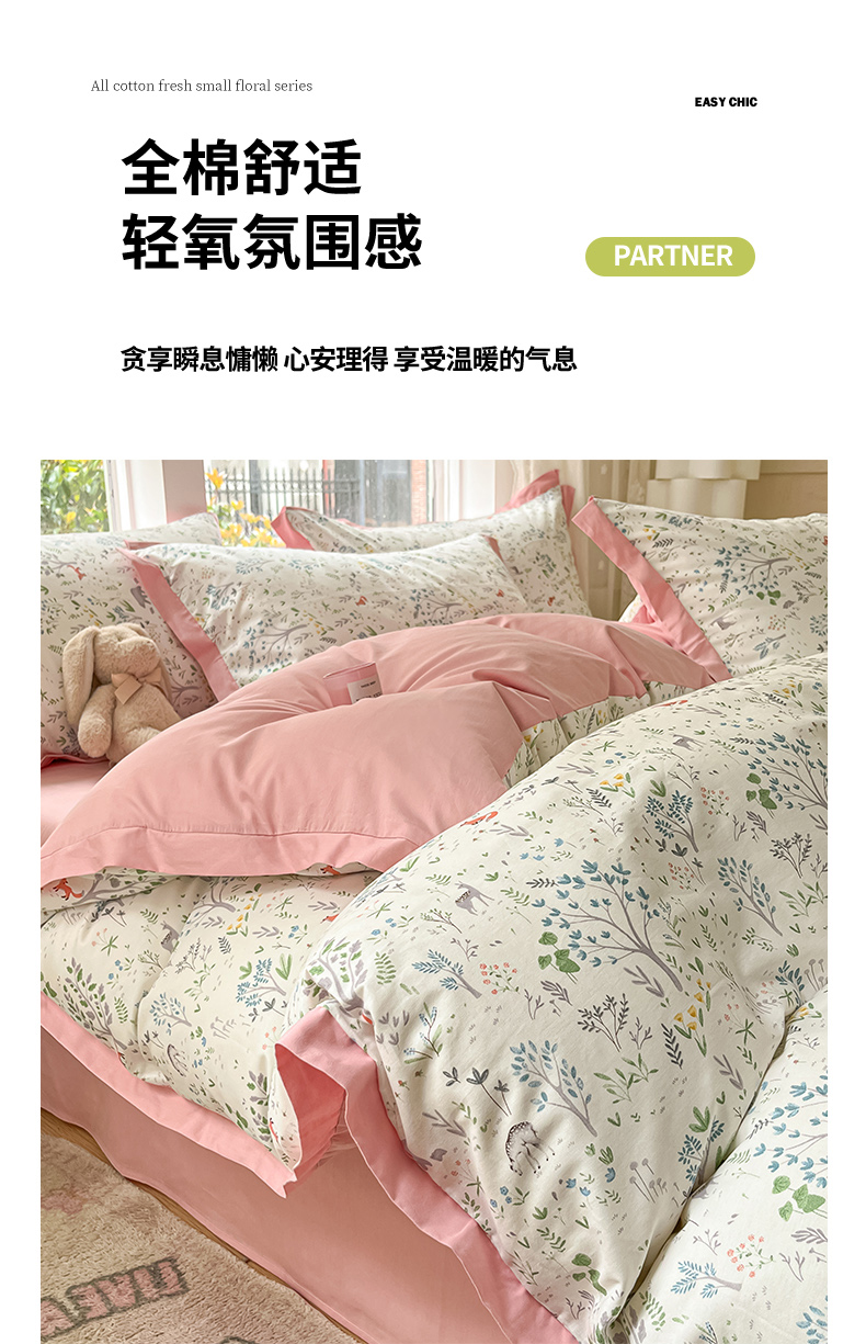 (总)捌月 2025新款13372全棉四件套花园里系列小清新全棉四件套热卖新品,艾美,蓝风铃,蓝汐,流年,魅影,木兰,年华,浅浅,青花瓷,青木,轻颜,韶华,思绪,汐月