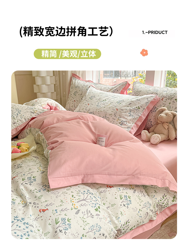 商品名称:捌月2024新款全棉印花拼角工艺款四件套 秘境