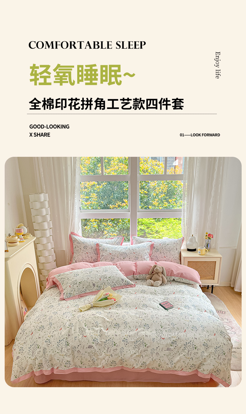 捌月2024新款全棉印花拼角工艺款四件套 秘境