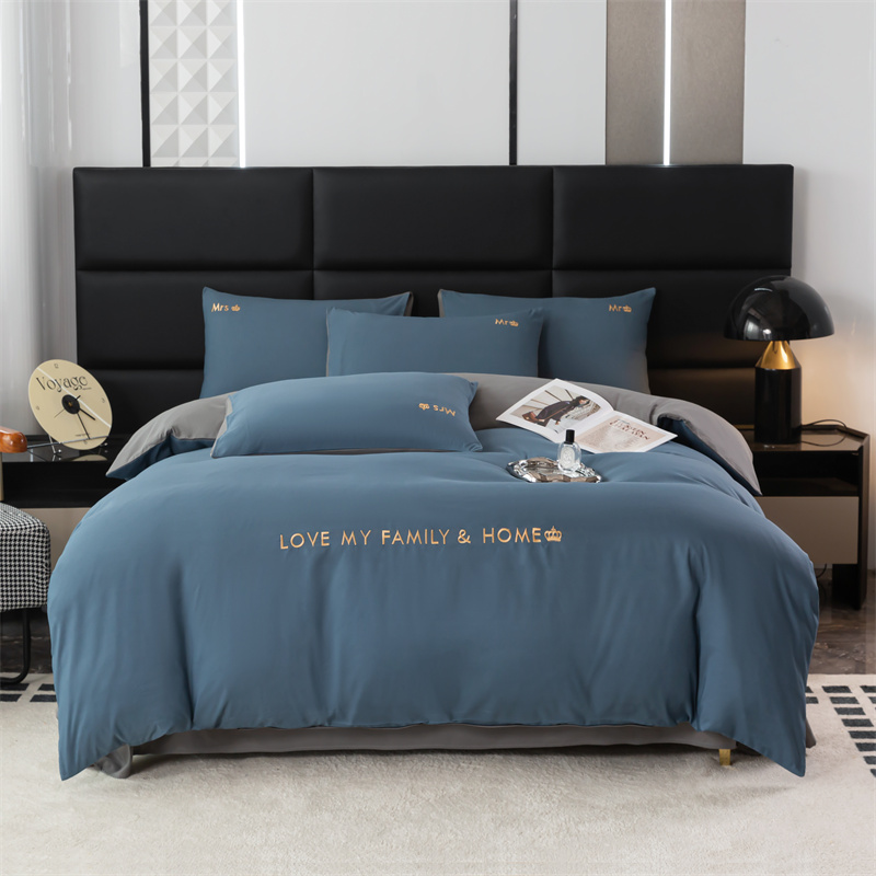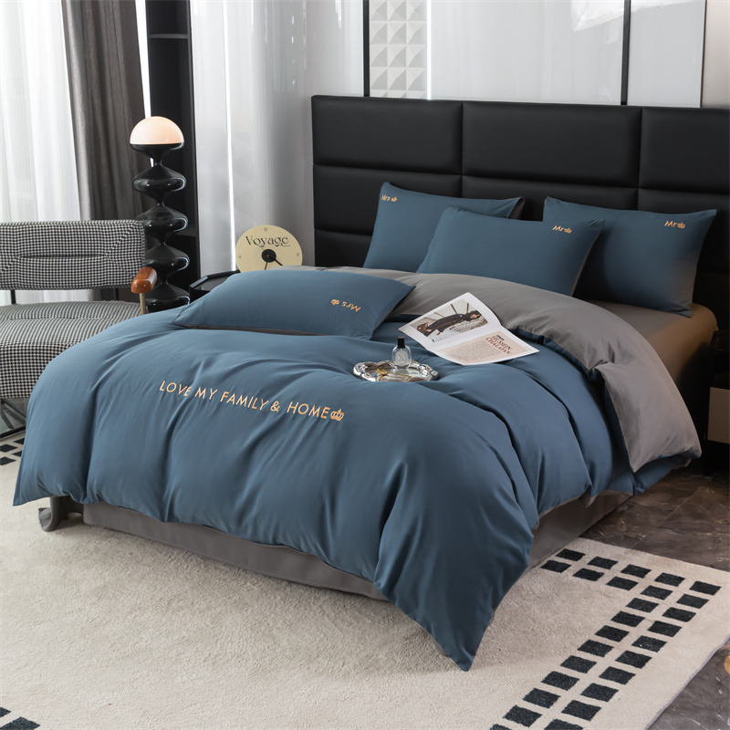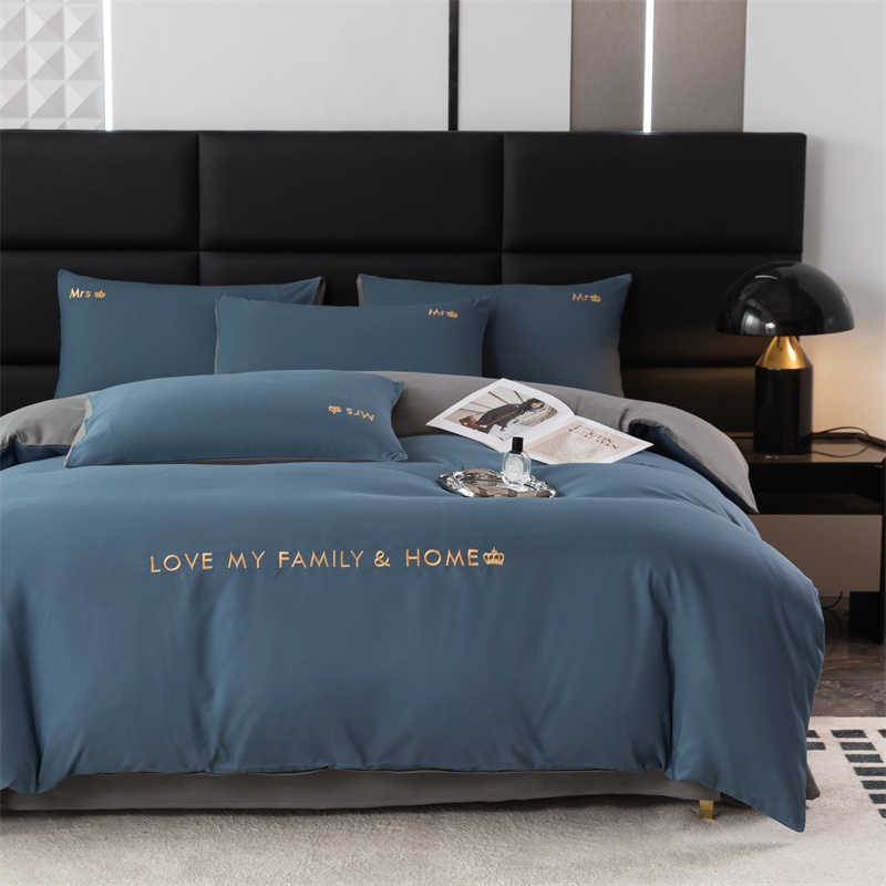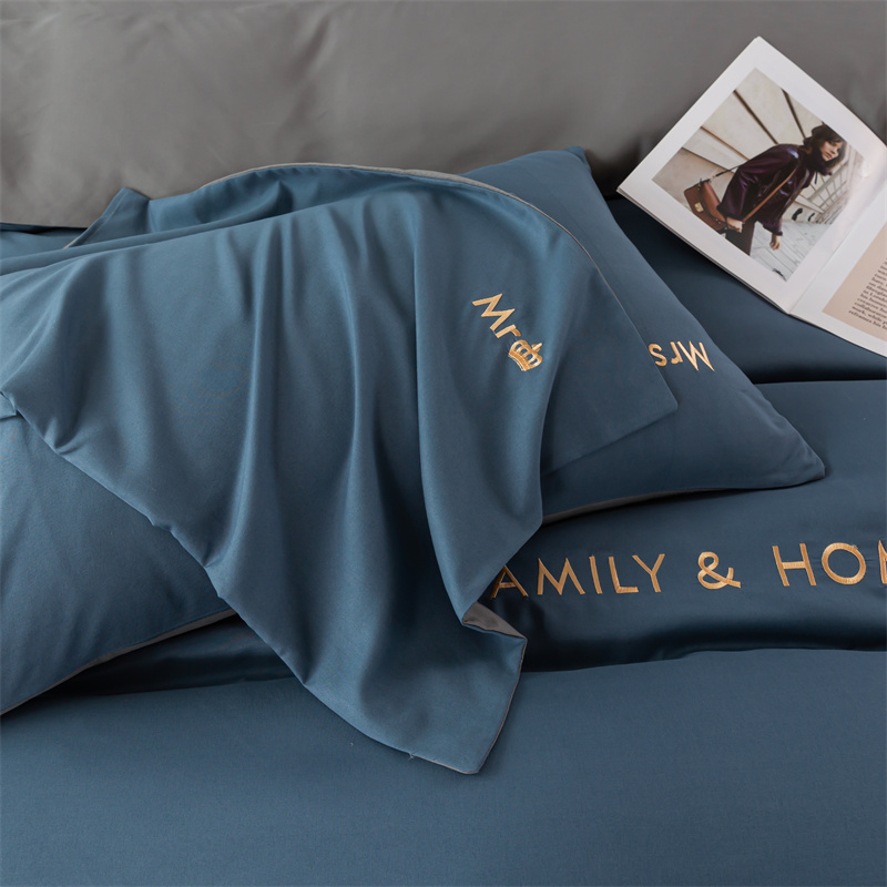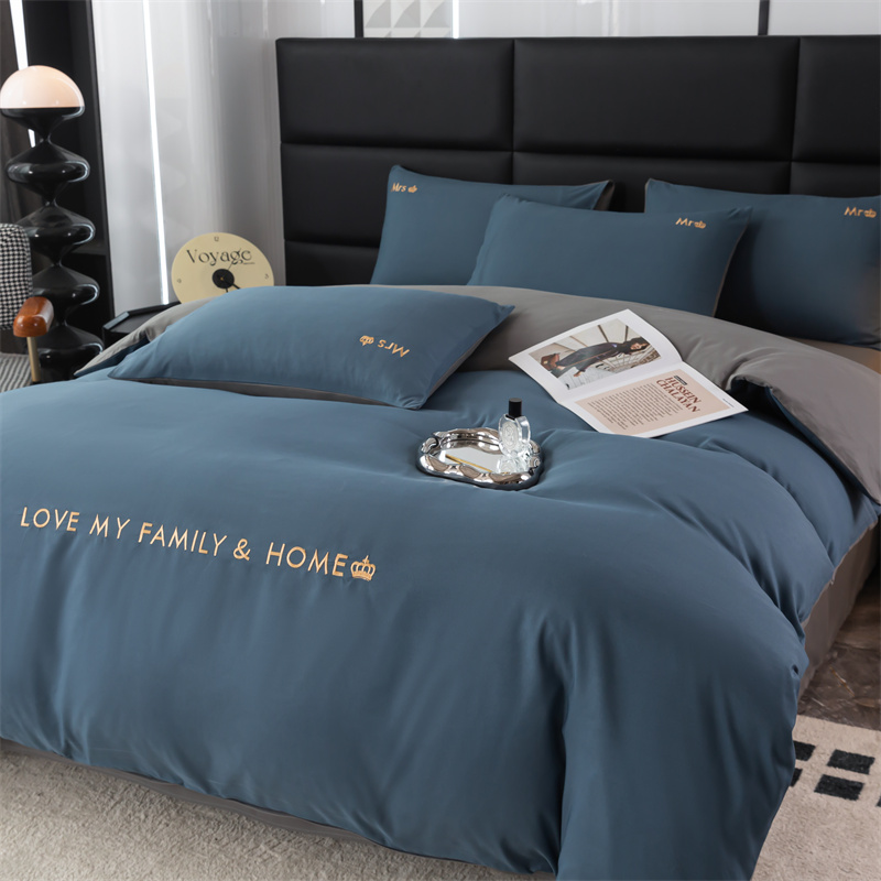 梦莱家纺 2024新款磨毛刺绣四件套 宝石蓝
