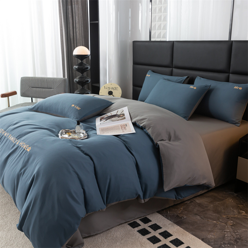 (总)梦莱家纺 2025新款亲肤磨毛纯色拼色轻奢系列四件套,橄榄绿,果绿,卡其,米黄,深红,深灰,深蓝,天蓝,粉+深灰,卡其+米黄,青蓝+天蓝,深蓝+深灰